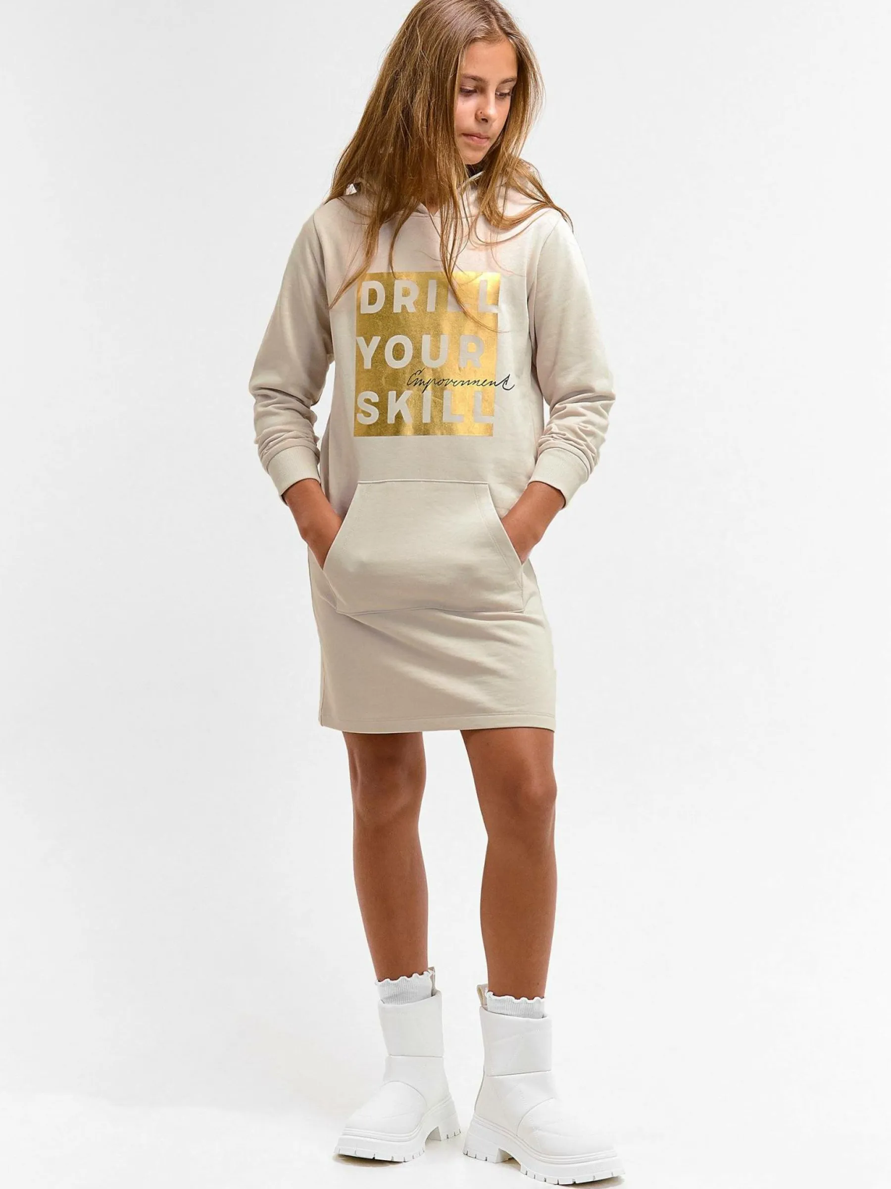 Kolor: beżowyKrój: regularTyp: bluzaRekaw: długi rękawDługość: dlugiePattern style: z nadrukiemDetal: bluza z kap…