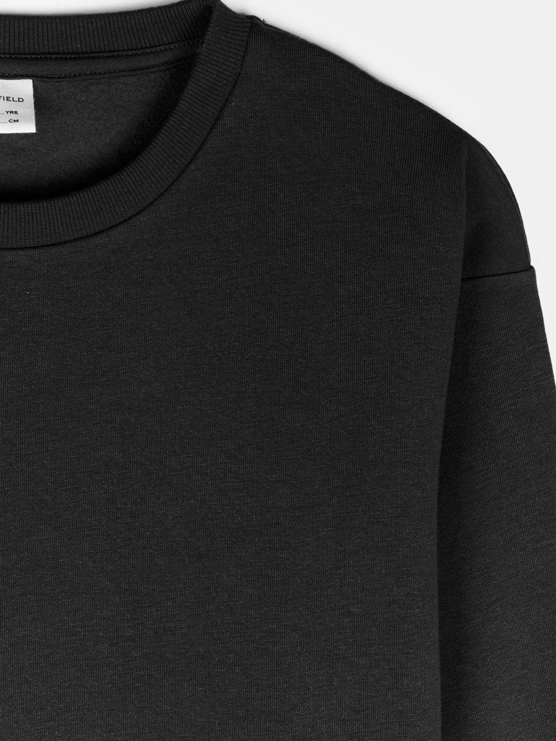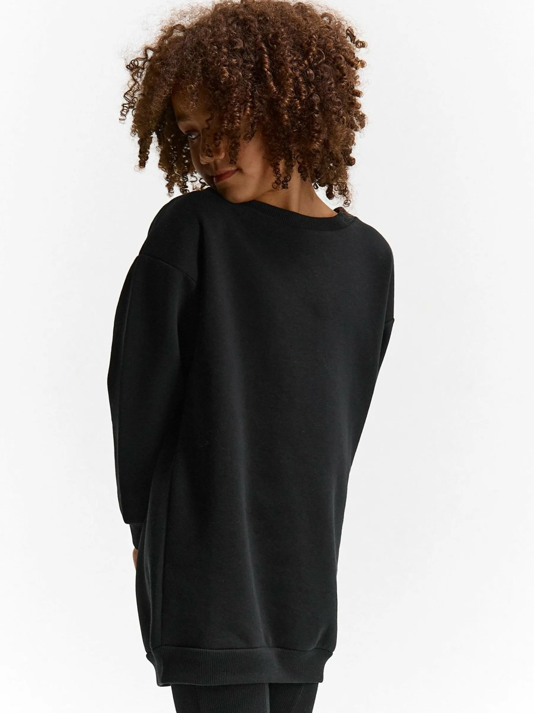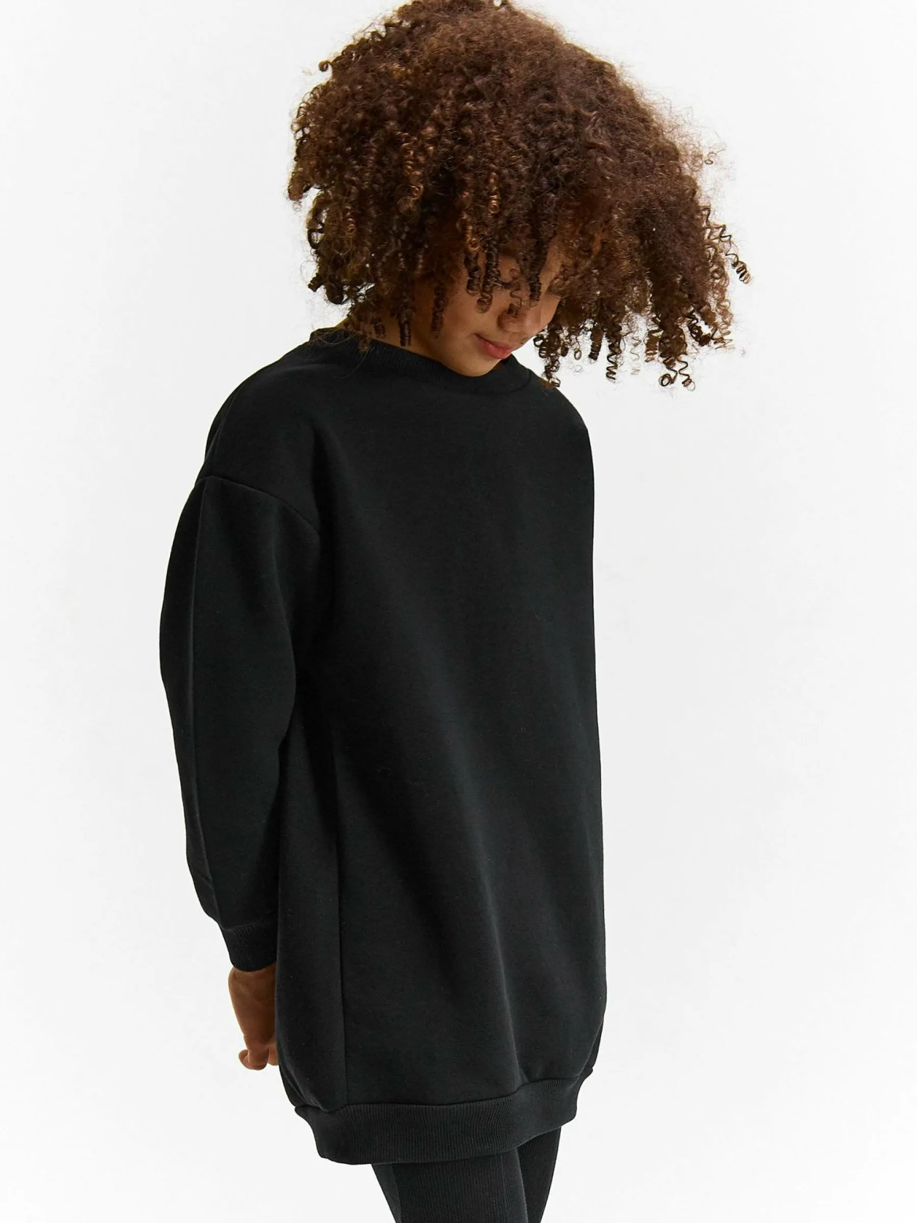 Kolor: czarnyKrój: regularTyp: bluzaRekaw: długi rękawDługość: dlugiePattern style: pojedynczy kolorDetal: nad gł…
