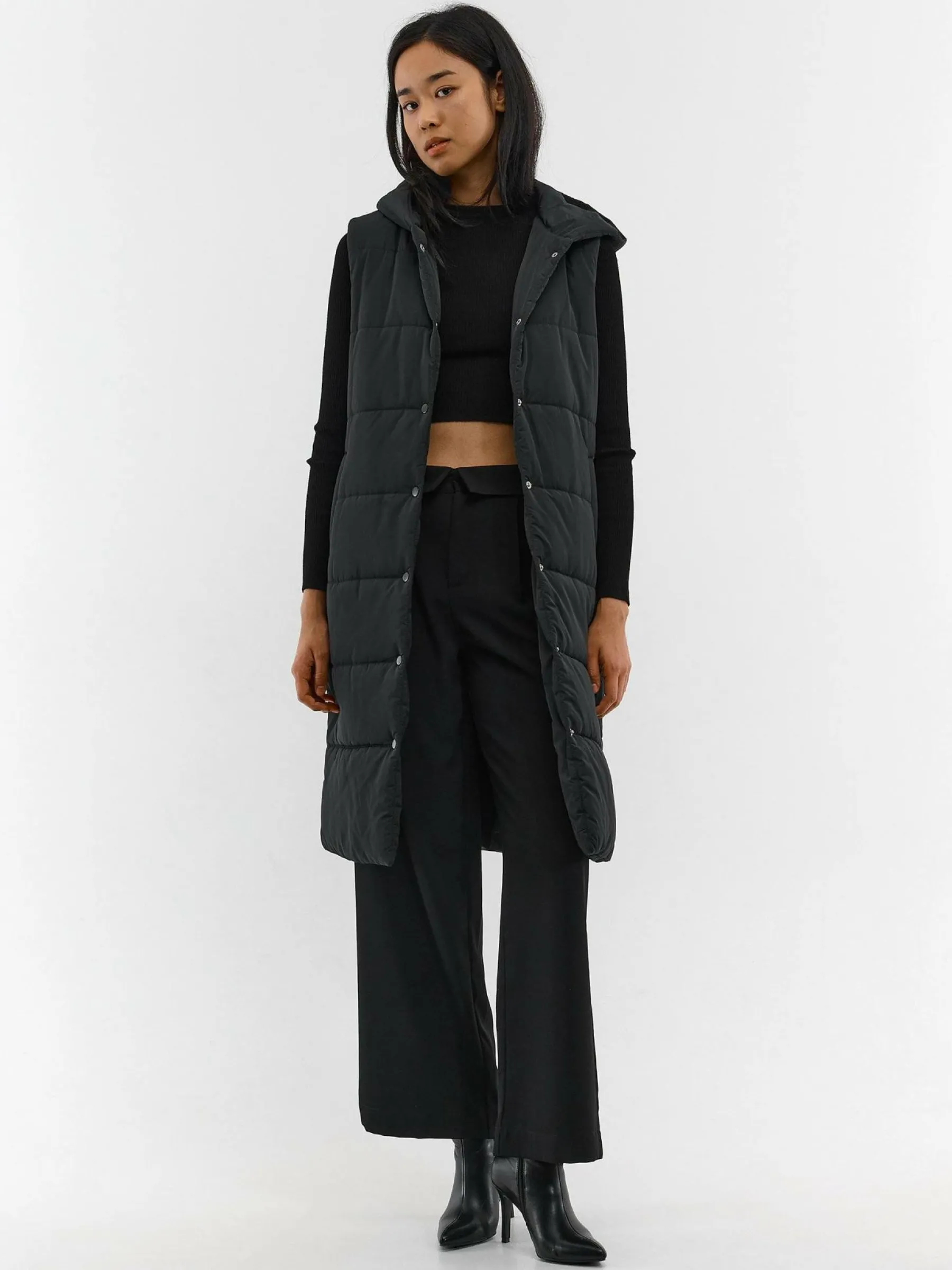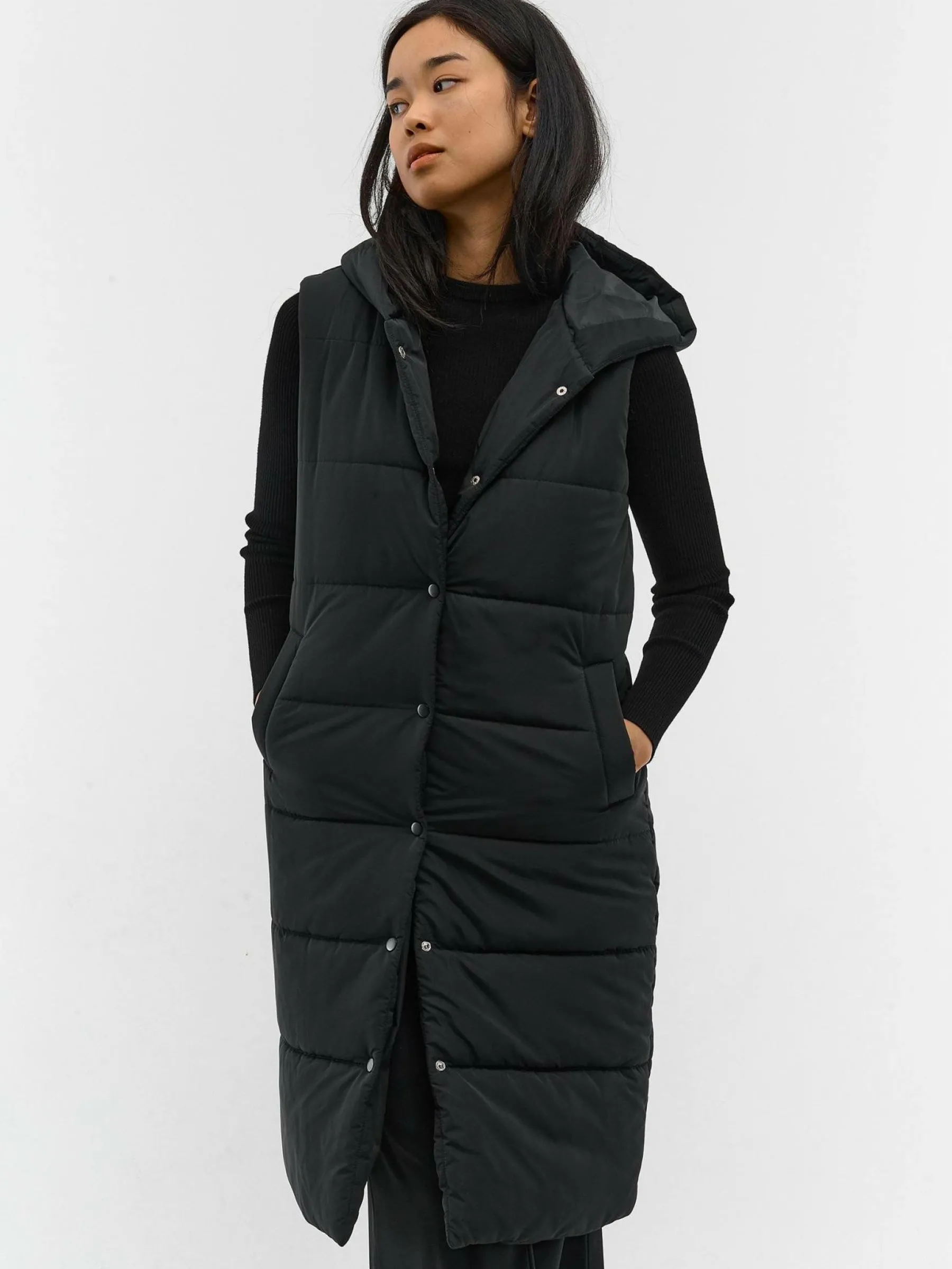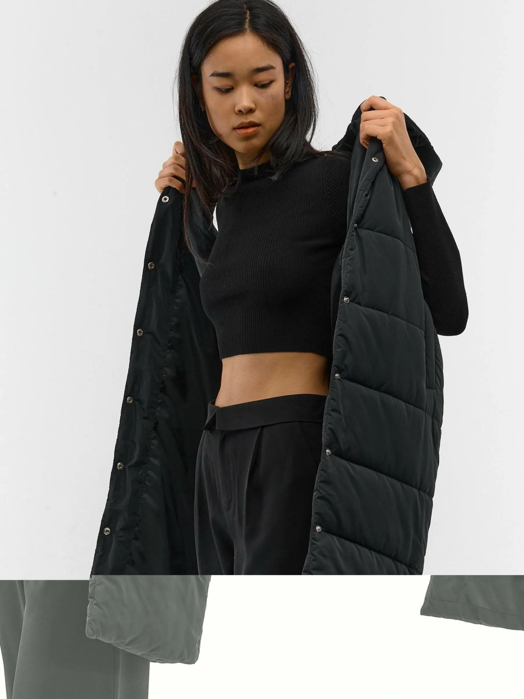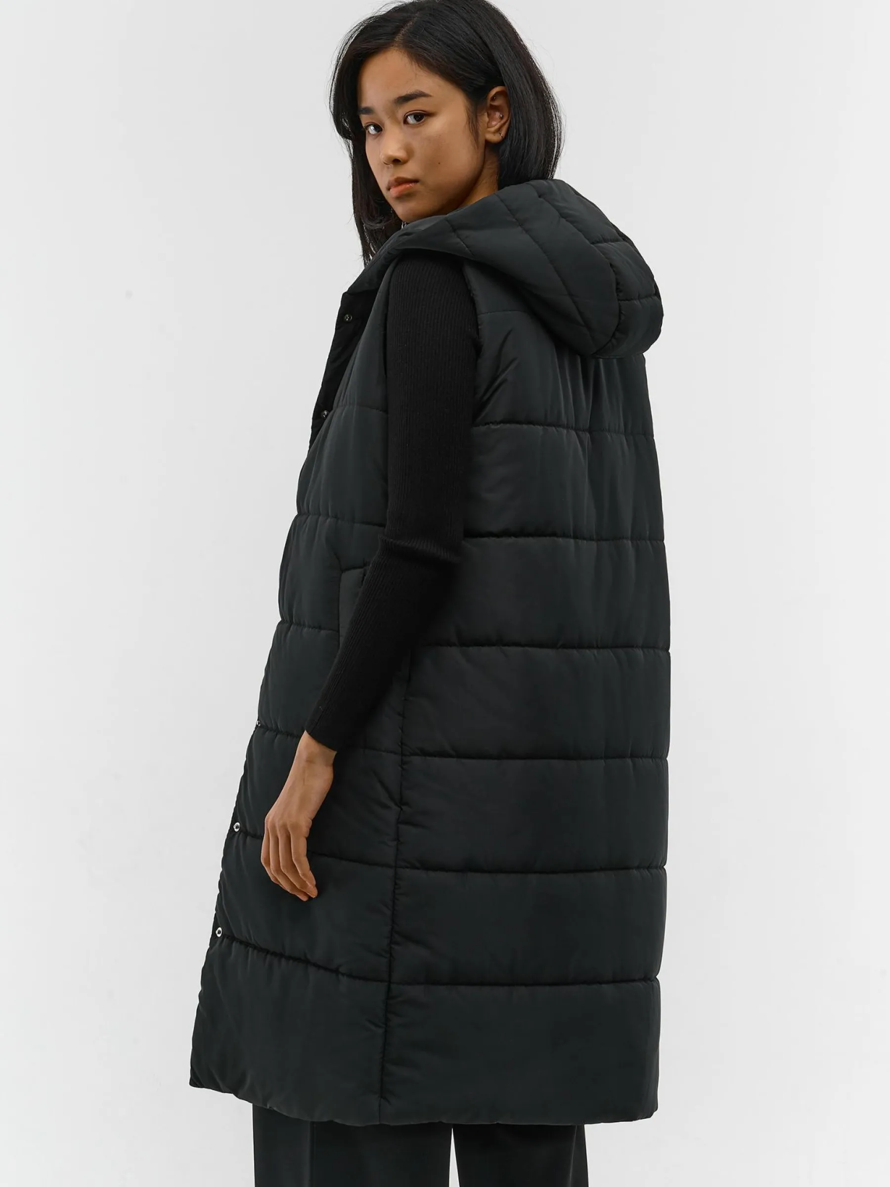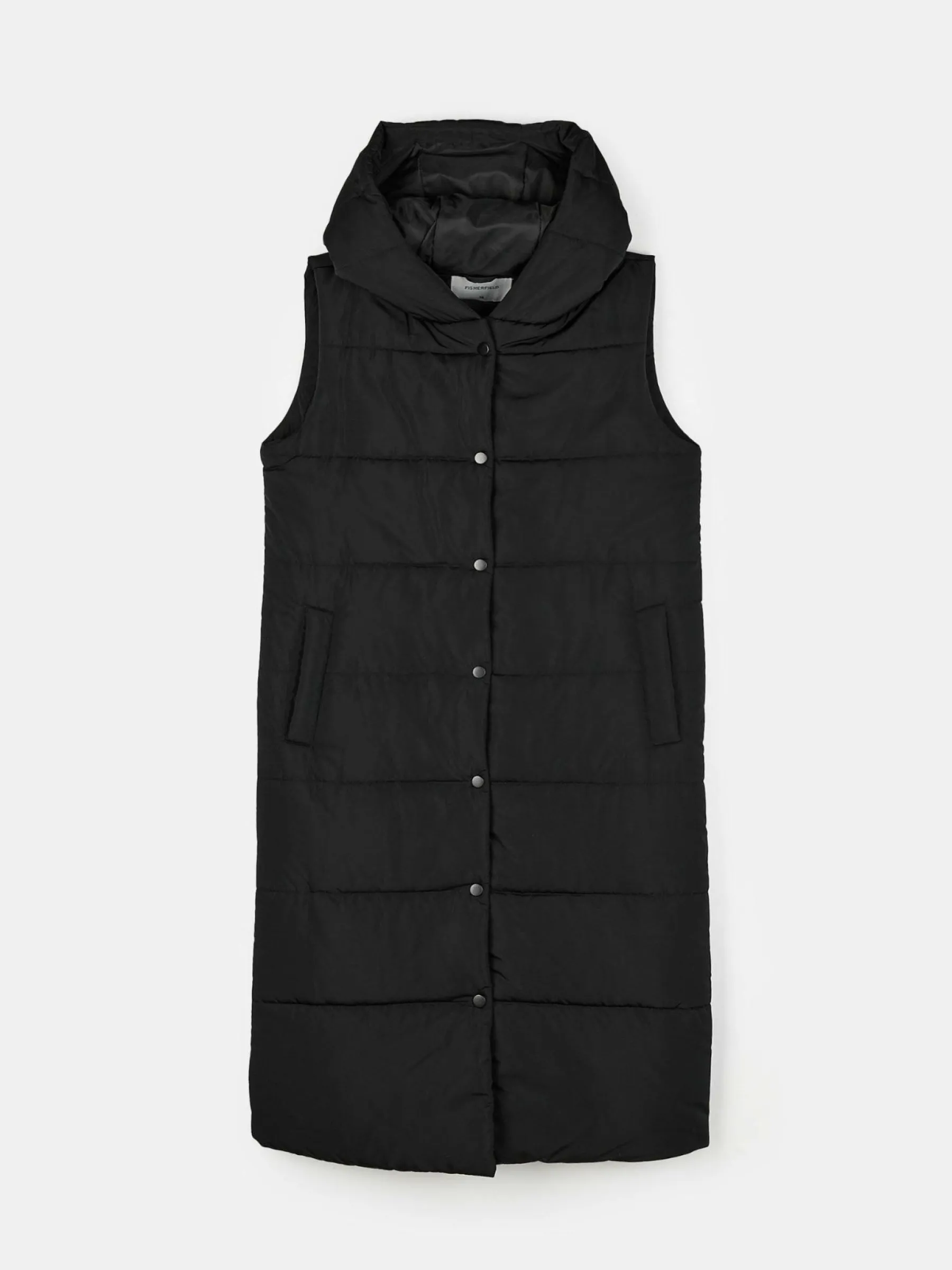 Kolor: czarnyKrój: pikowaneTyp: zimowa/przejściowa kamizelkaRekaw: bez rękawówDługość: dlugiePattern style: pojed…