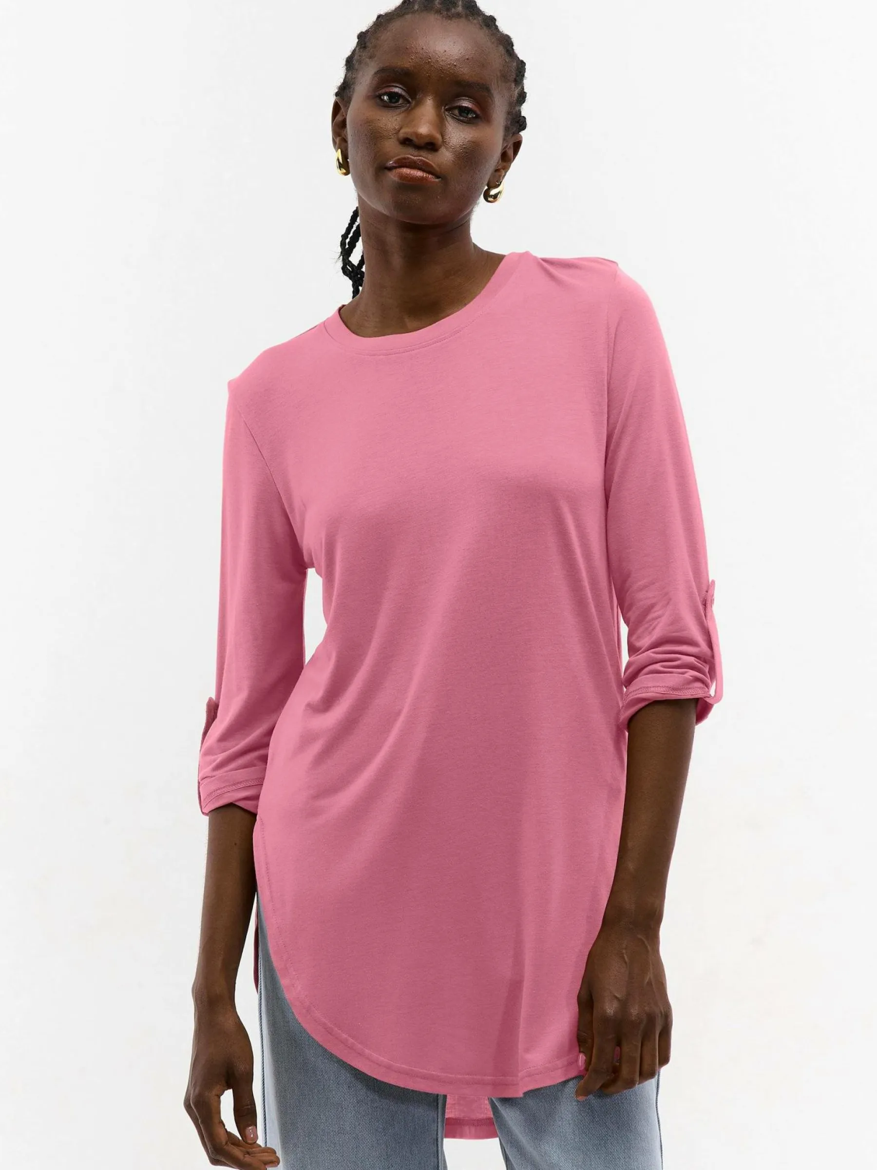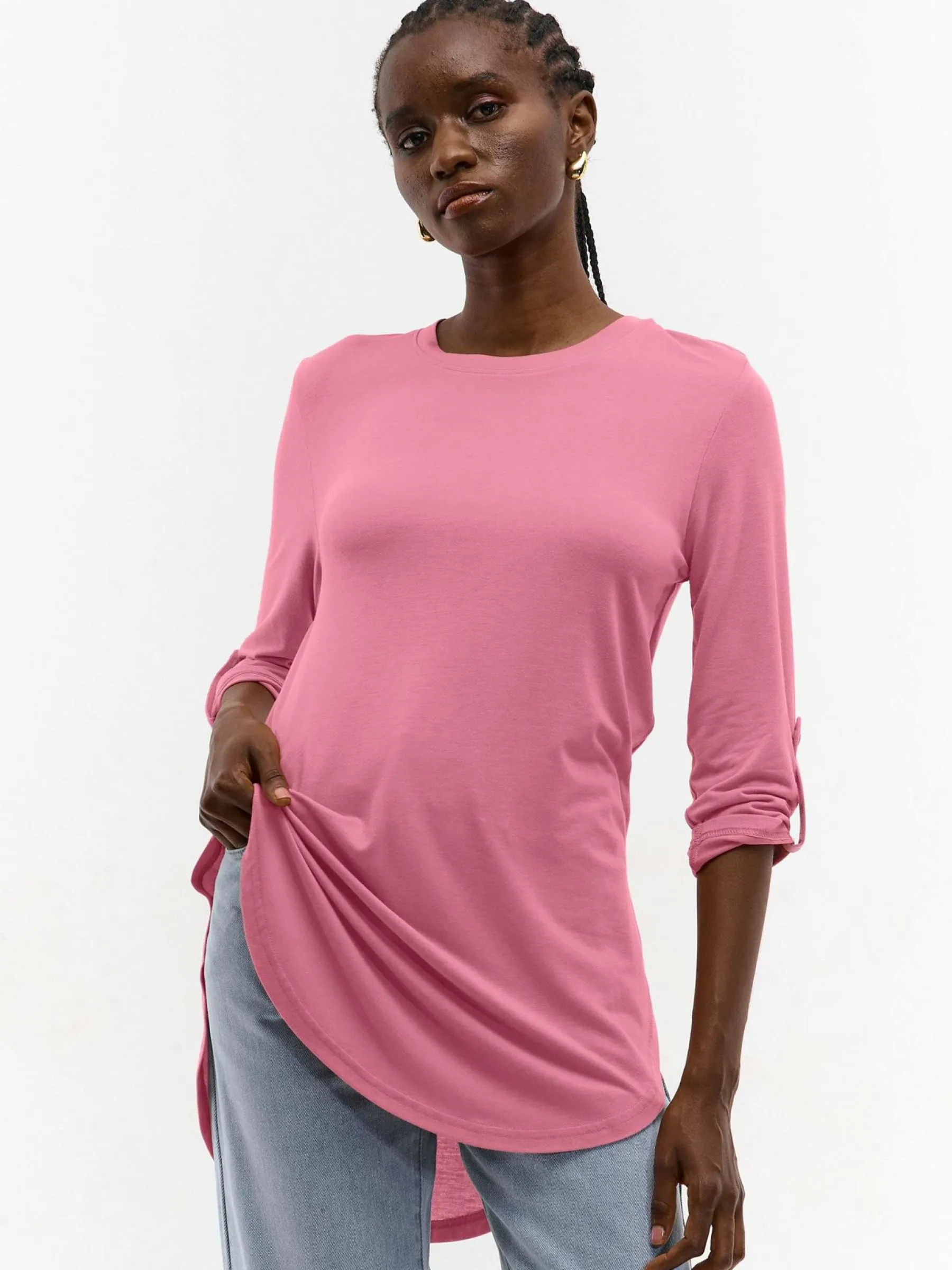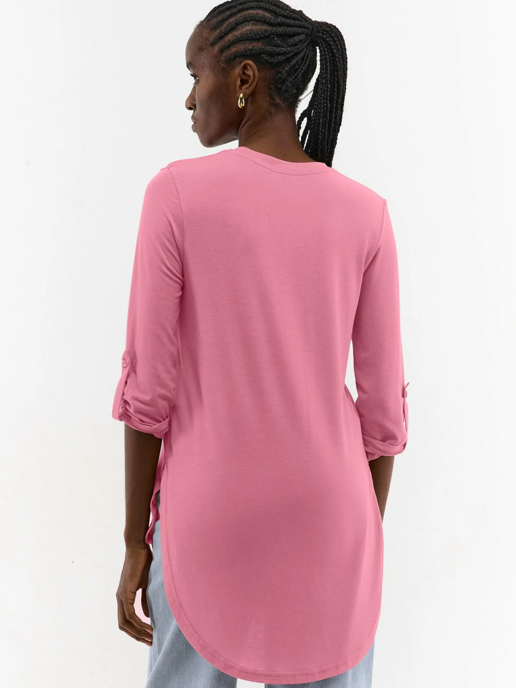 Kolor: różowyKrój: asymetryczneTyp: koszulkaRekaw: rękaw 3/4Długość: dlugiePattern style: pojedynczy kolorDetal: …