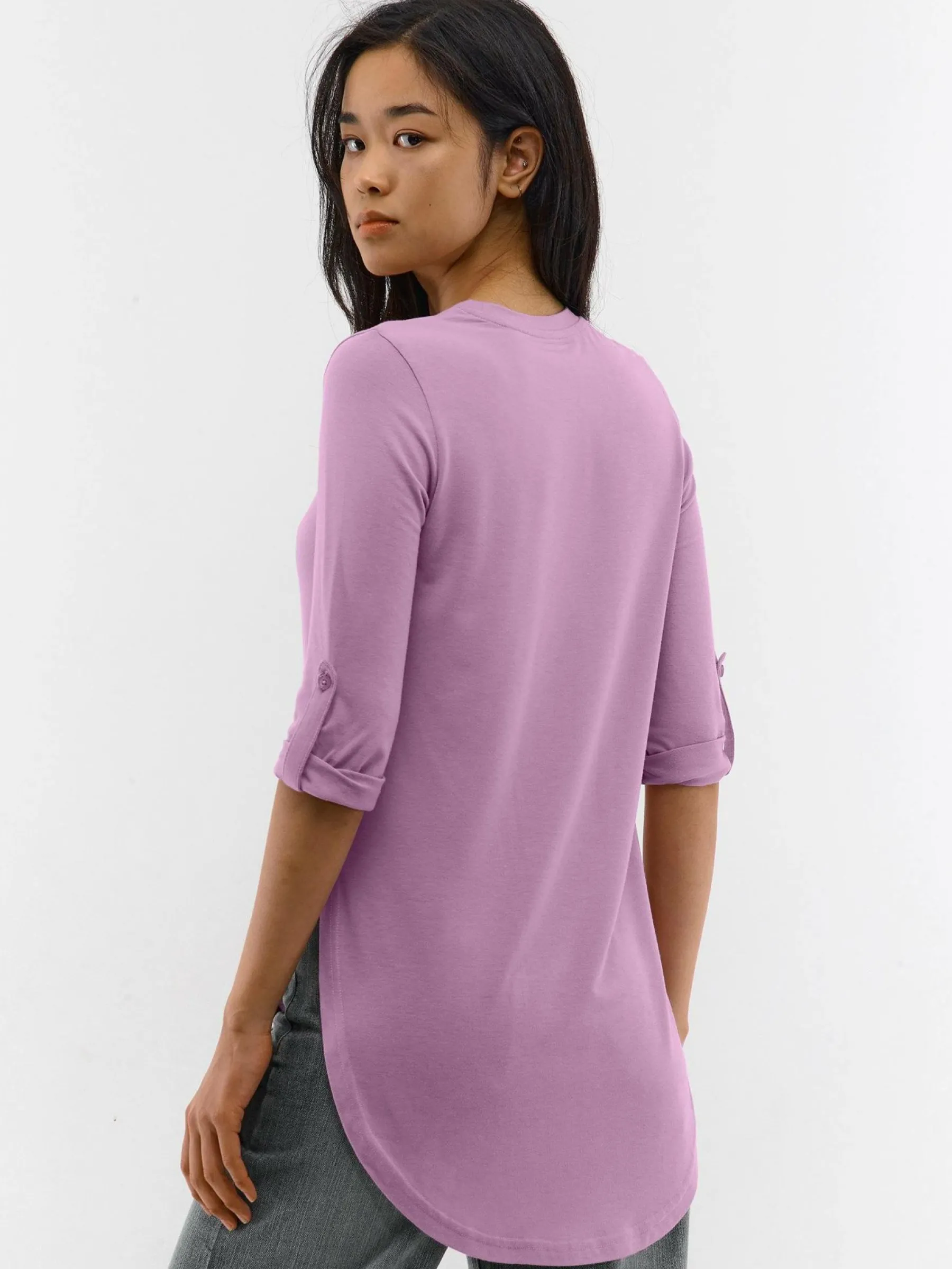 Zdjęcia z modelką mogą nie odpowiadać rzeczywistemu kolorowi produktu.Kolor: purpurowyKrój: asymetryczneTyp: koszul…
