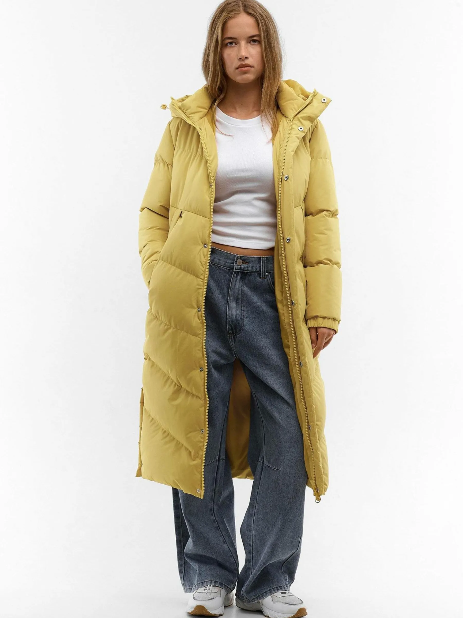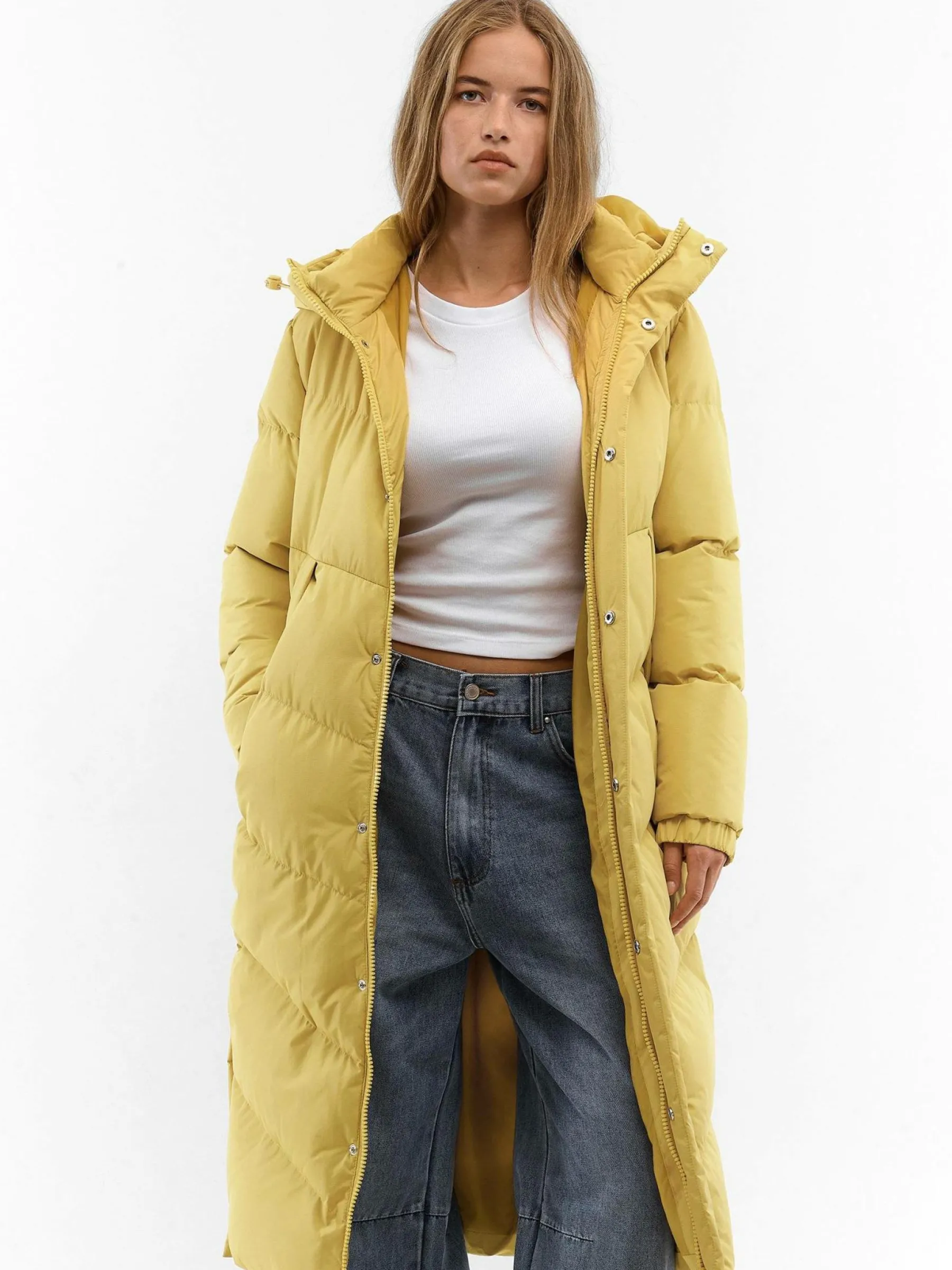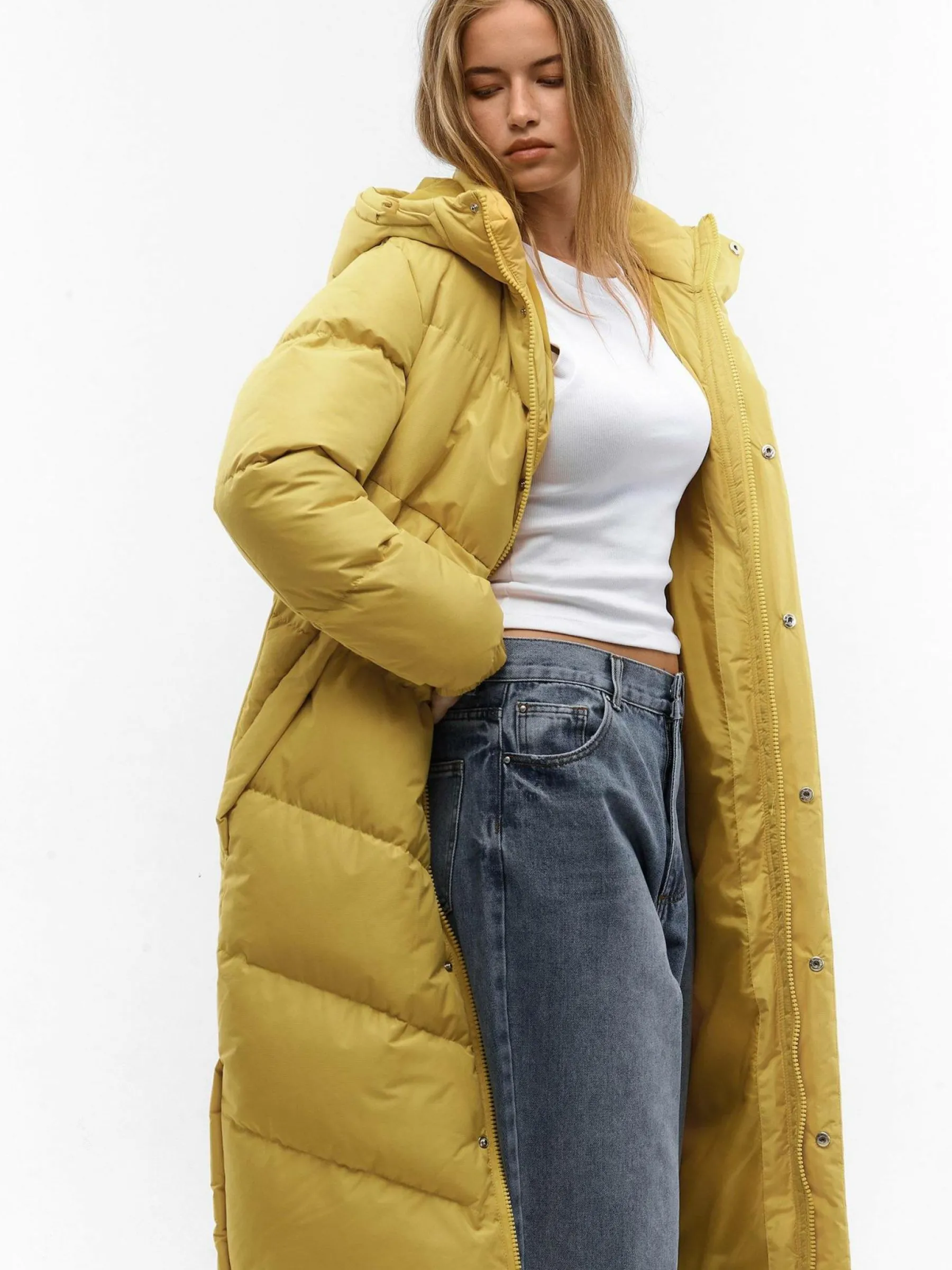 Kolor: żółtyKrój: pikowaneTyp: kurtka zimowaRekaw: długi rękawDługość: dlugiePattern style: pojedynczy kolorDet…