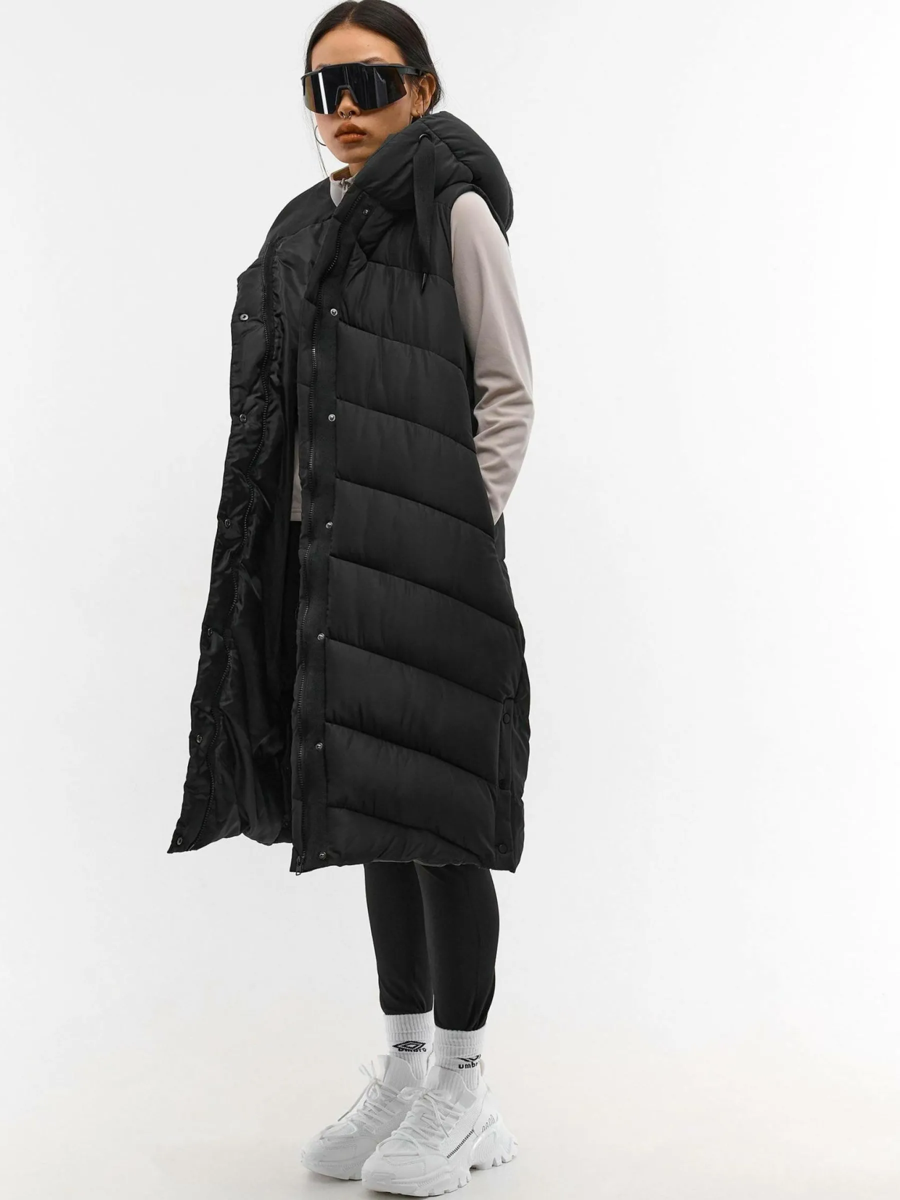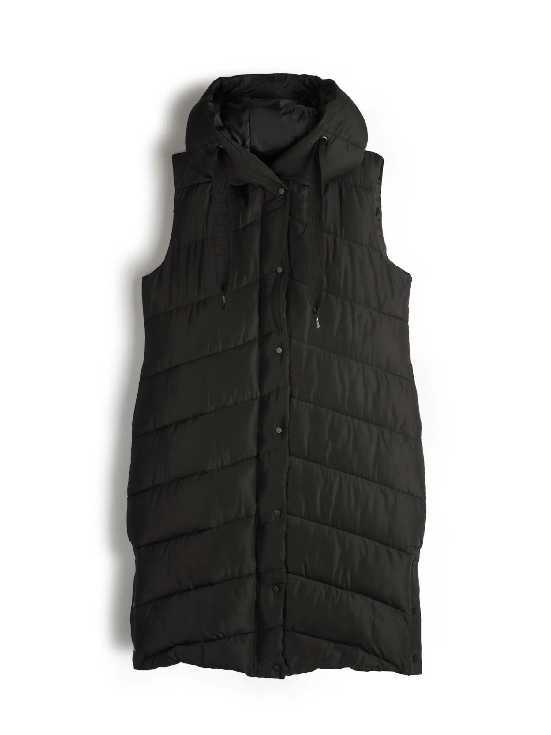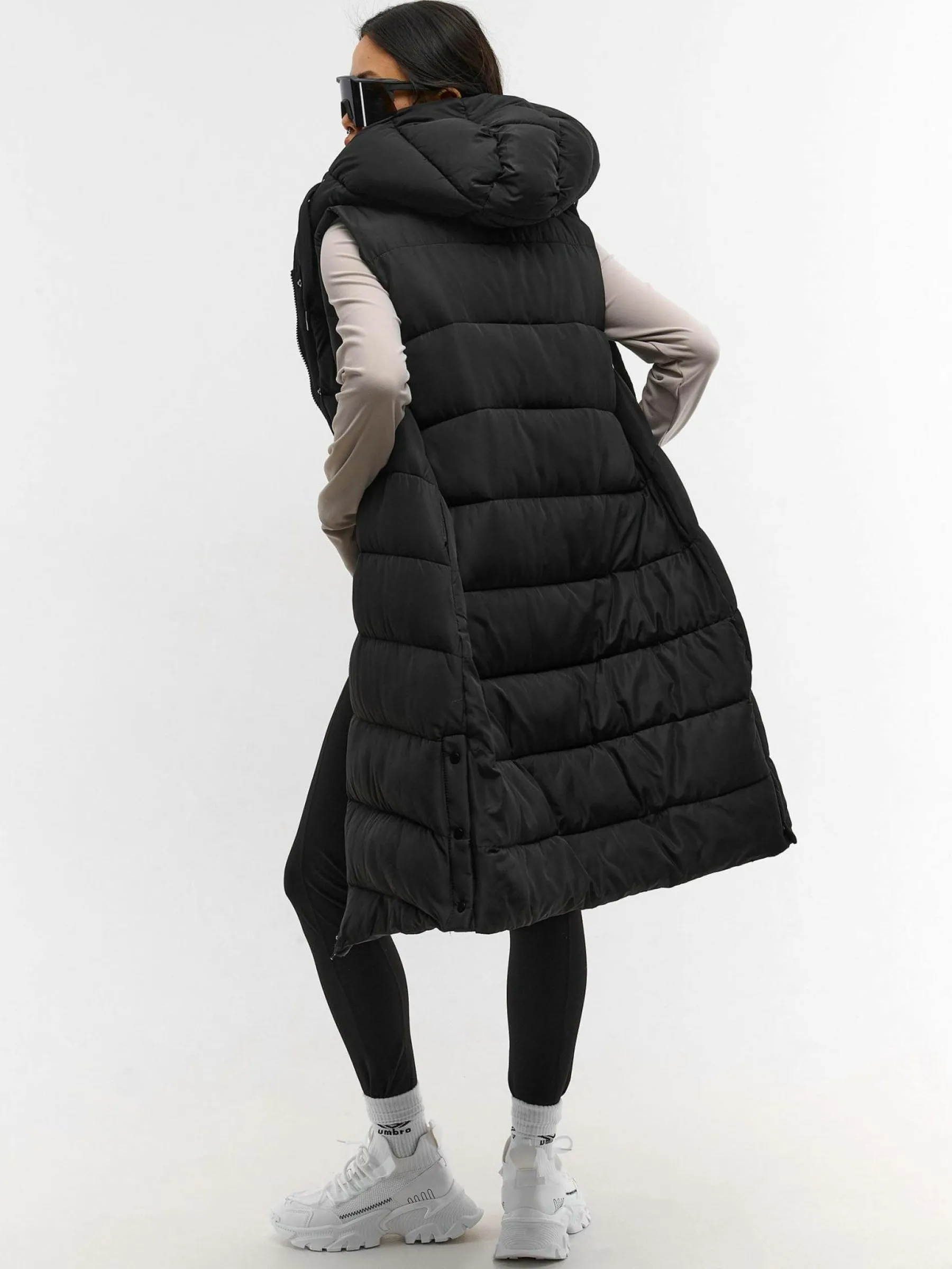 Kolor: czarnyKrój: pikowaneTyp: zimowa/przejściowa kamizelkaRekaw: bez rękawówDługość: dlugiePattern style: pojed…