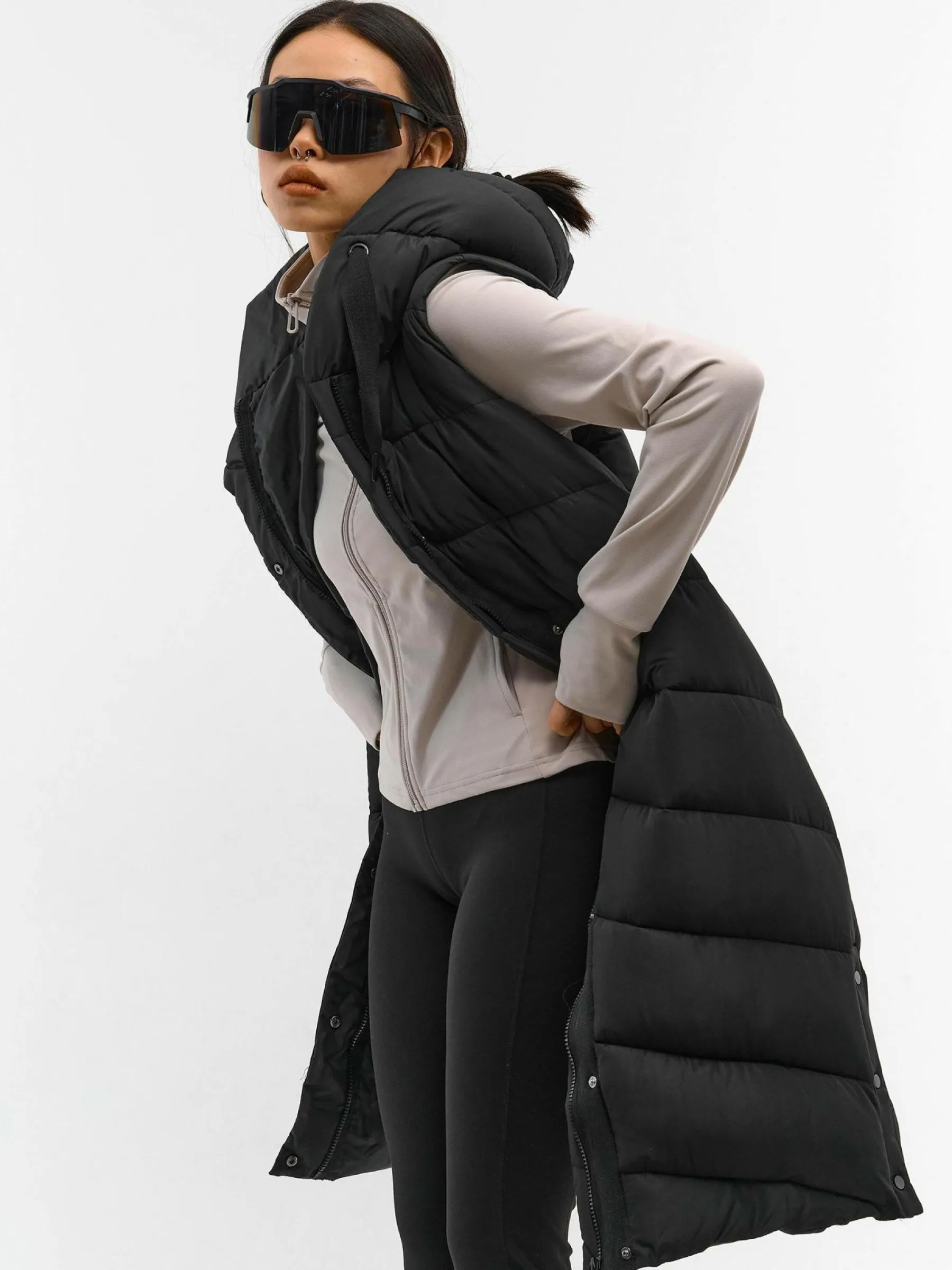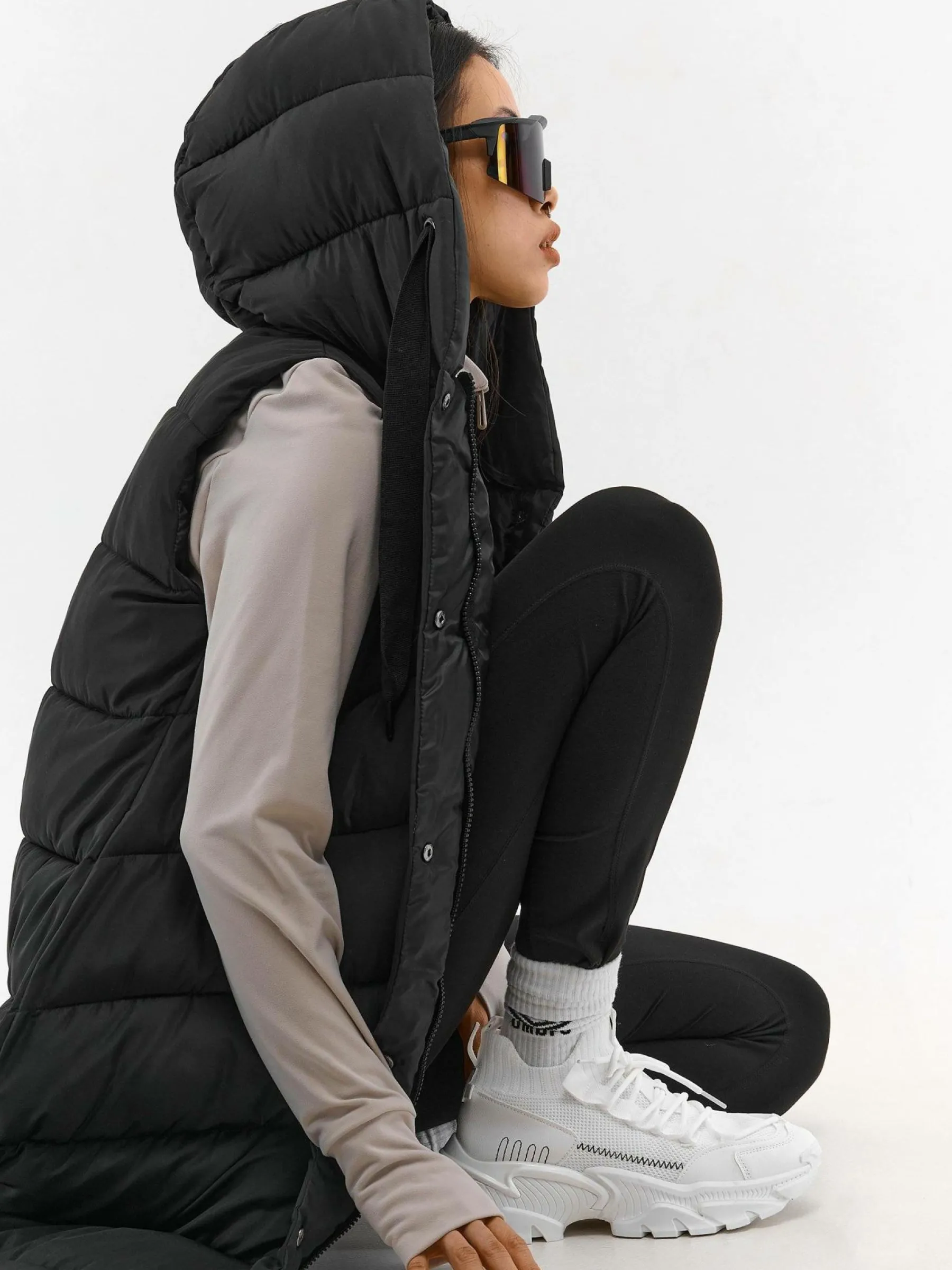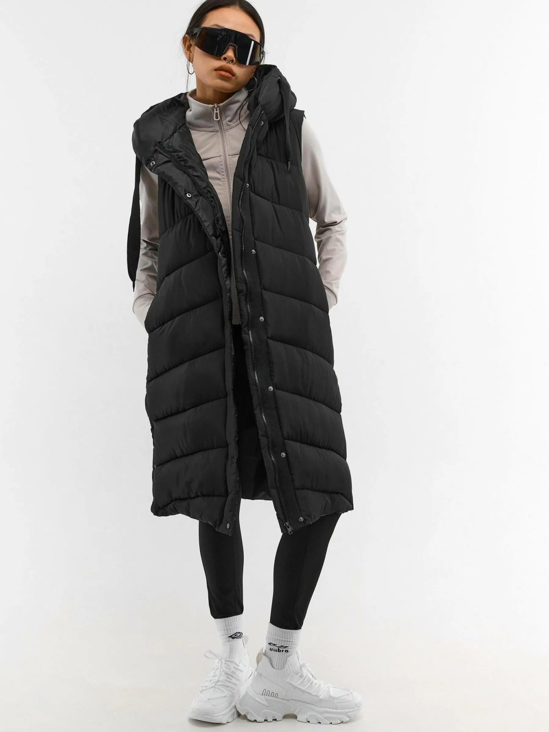 Kolor: czarnyKrój: pikowaneTyp: zimowa/przejściowa kamizelkaRekaw: bez rękawówDługość: dlugiePattern style: pojed…