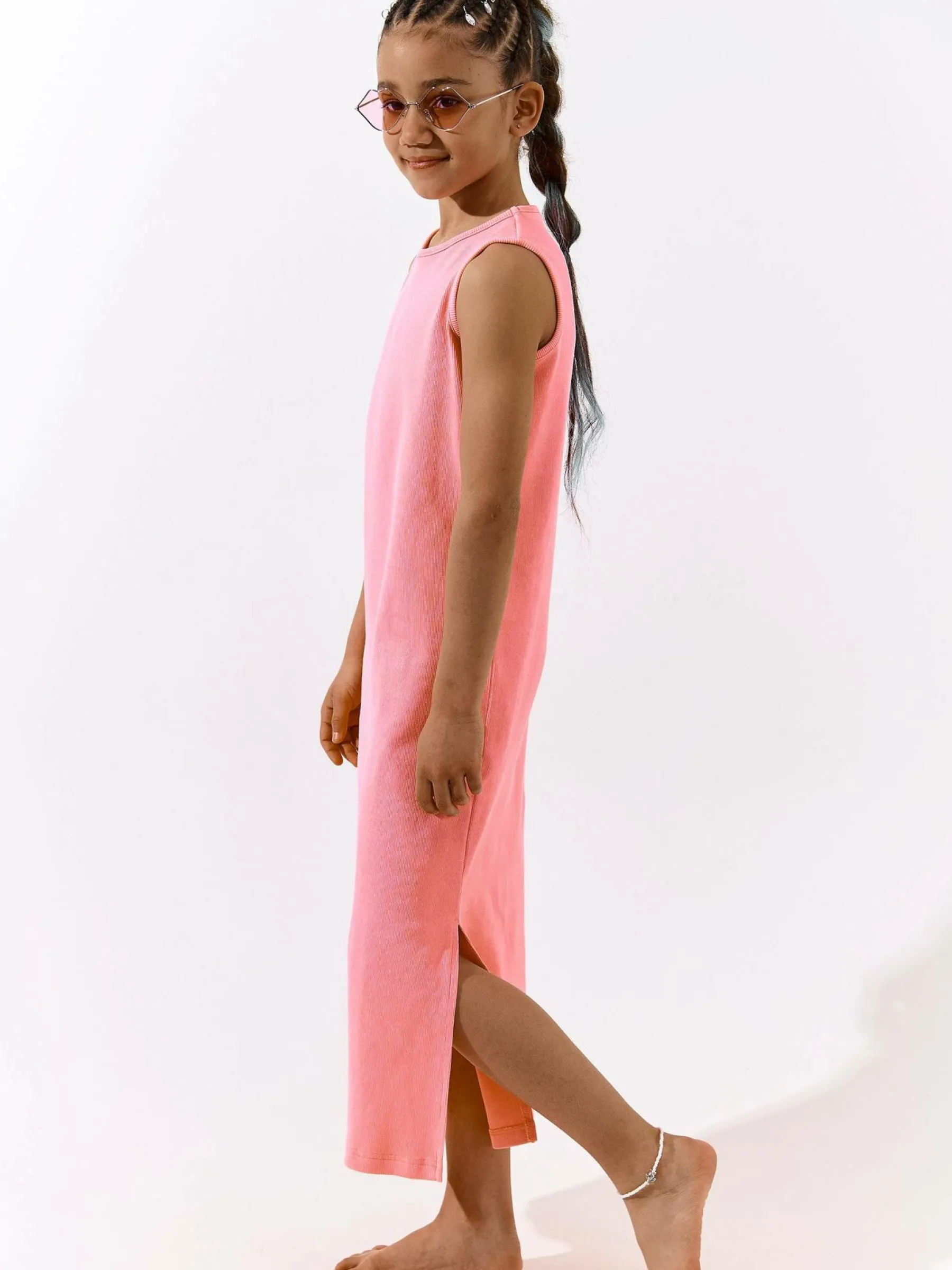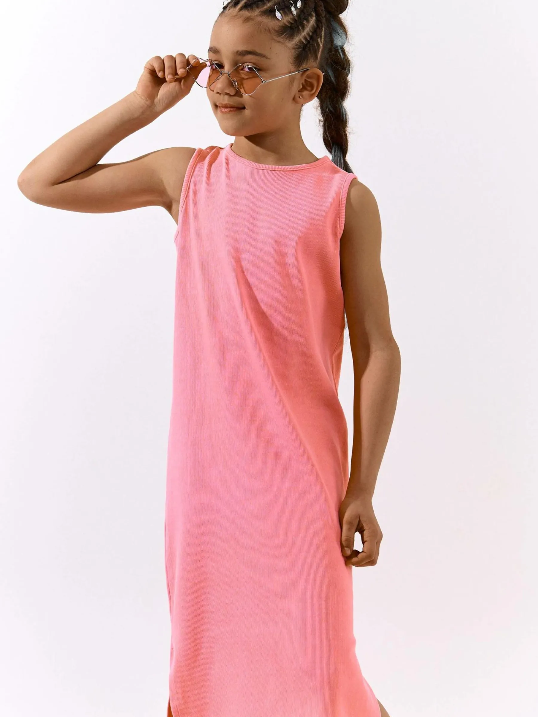 Kolor: różowyKrój: regularTyp: sukienkaRekaw: bez rękawówDługość: maxiPattern style: pojedynczy kolorDetal: nad …