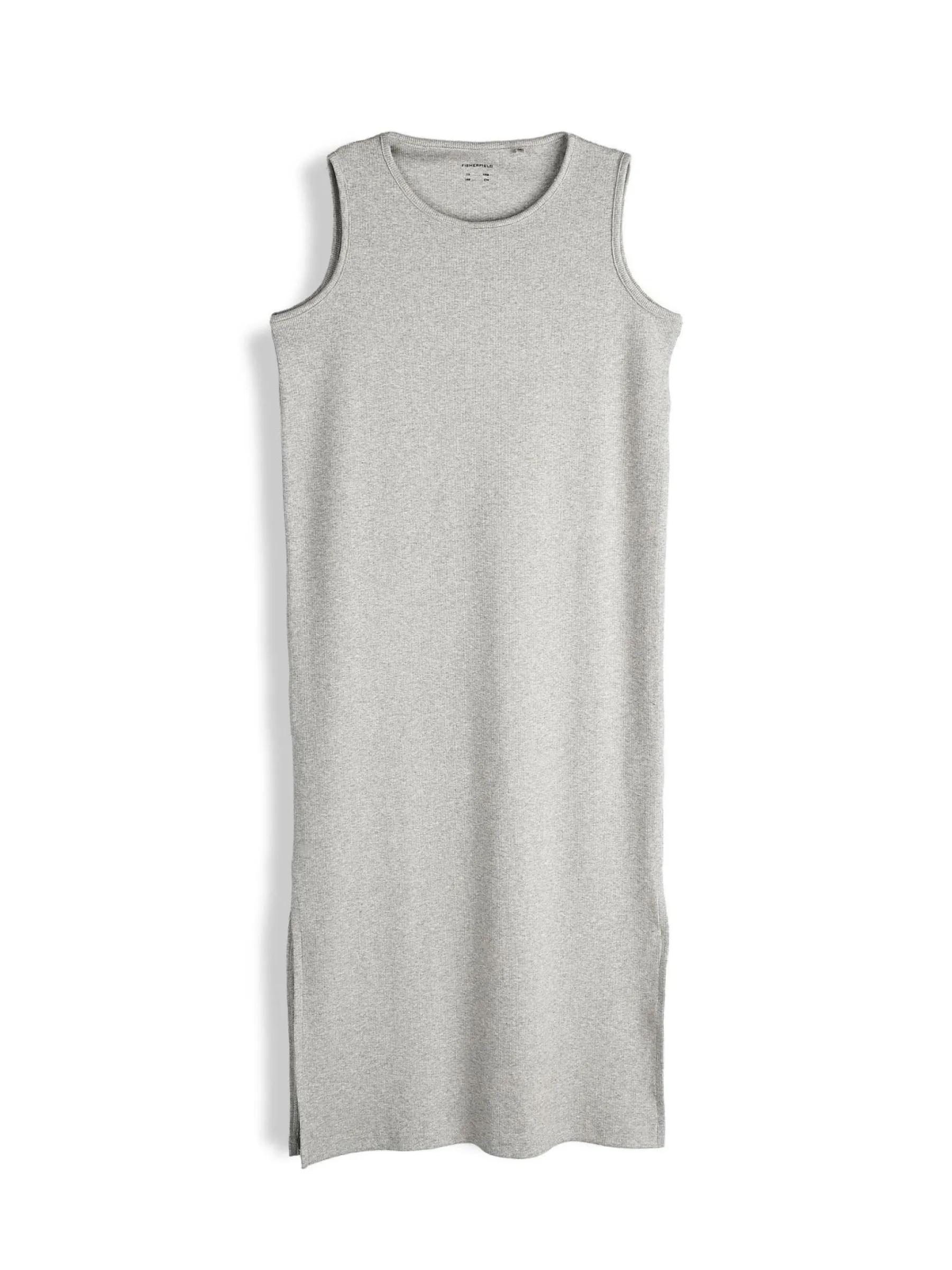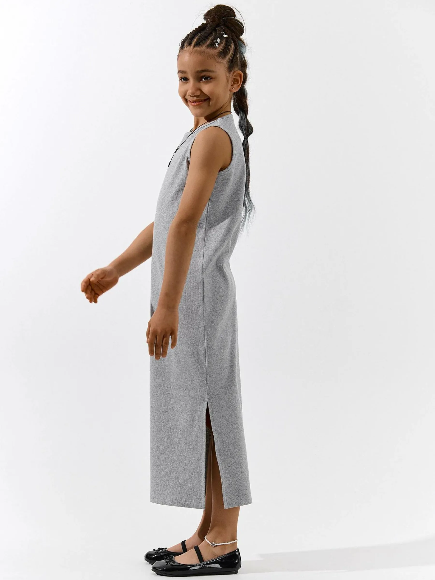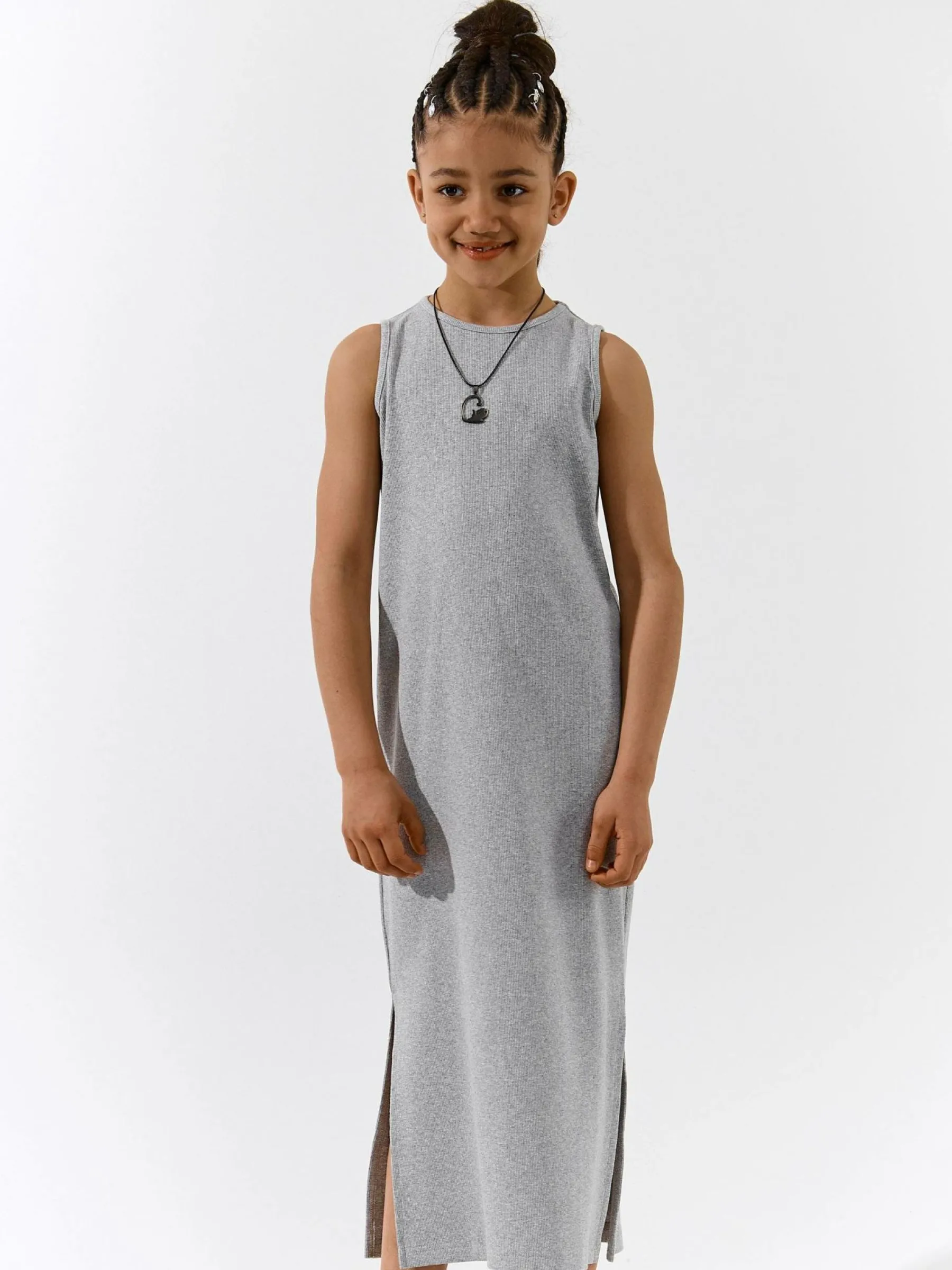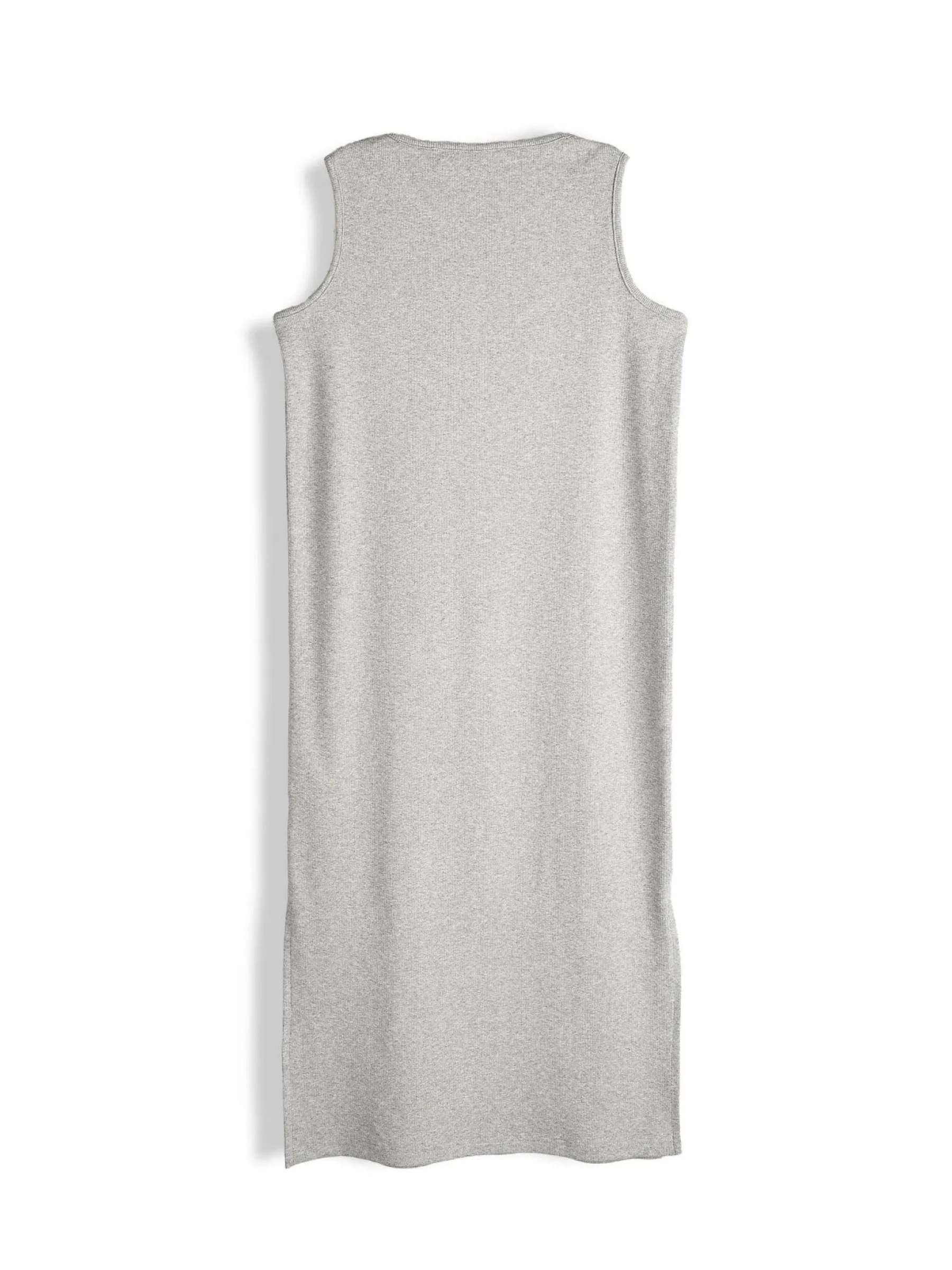 Kolor: szaryKrój: regularTyp: sukienkaRekaw: bez rękawówDługość: maxiPattern style: pojedynczy kolorDetal: nad gł…