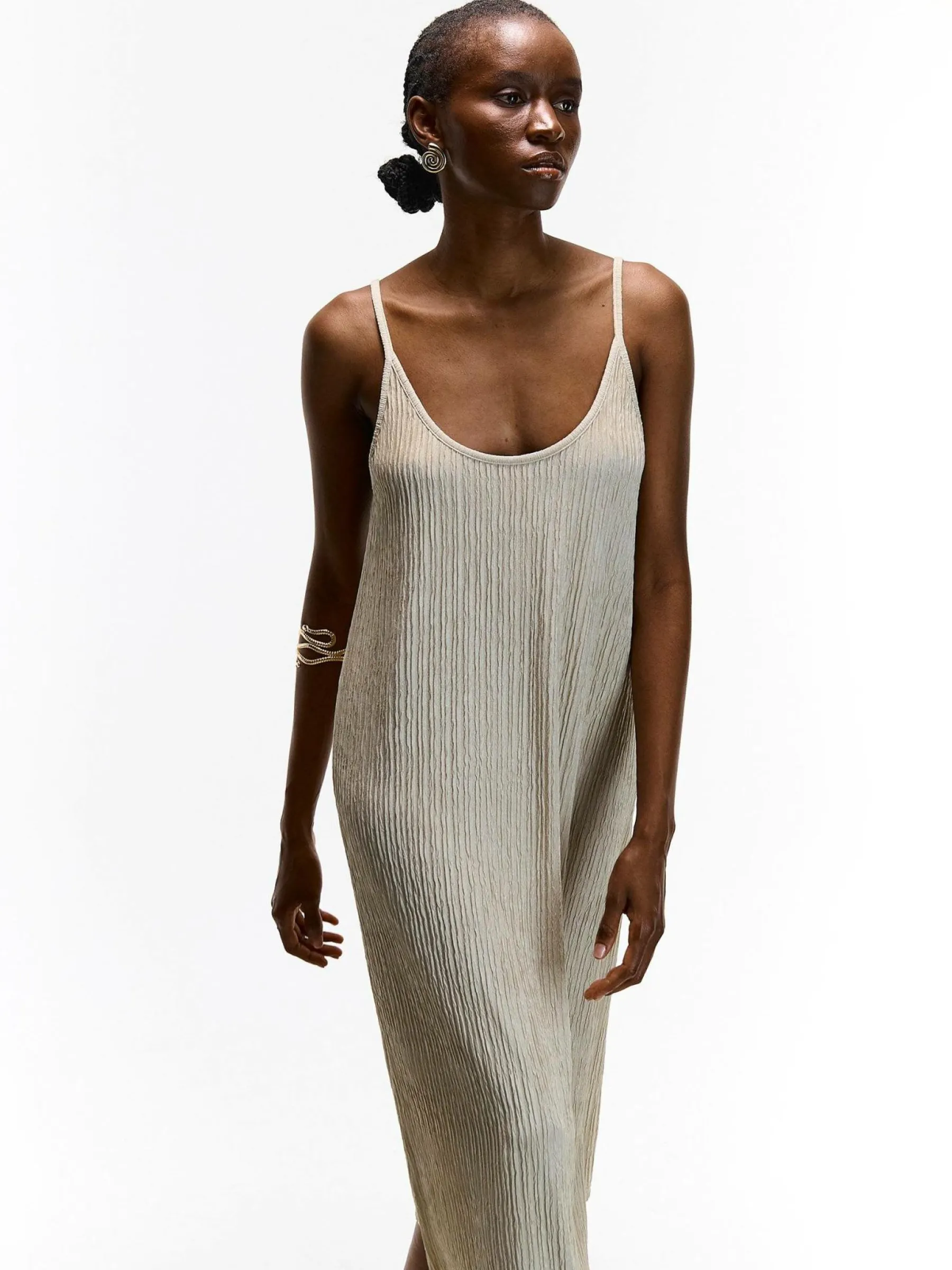 Zdjęcia z modelką mogą nie odpowiadać rzeczywistemu kolorowi produktu.Kolor: beżowyKrój: regularTyp: sukienkaRekaw…