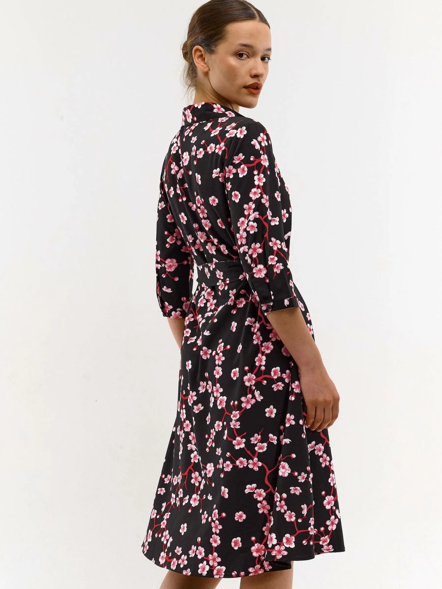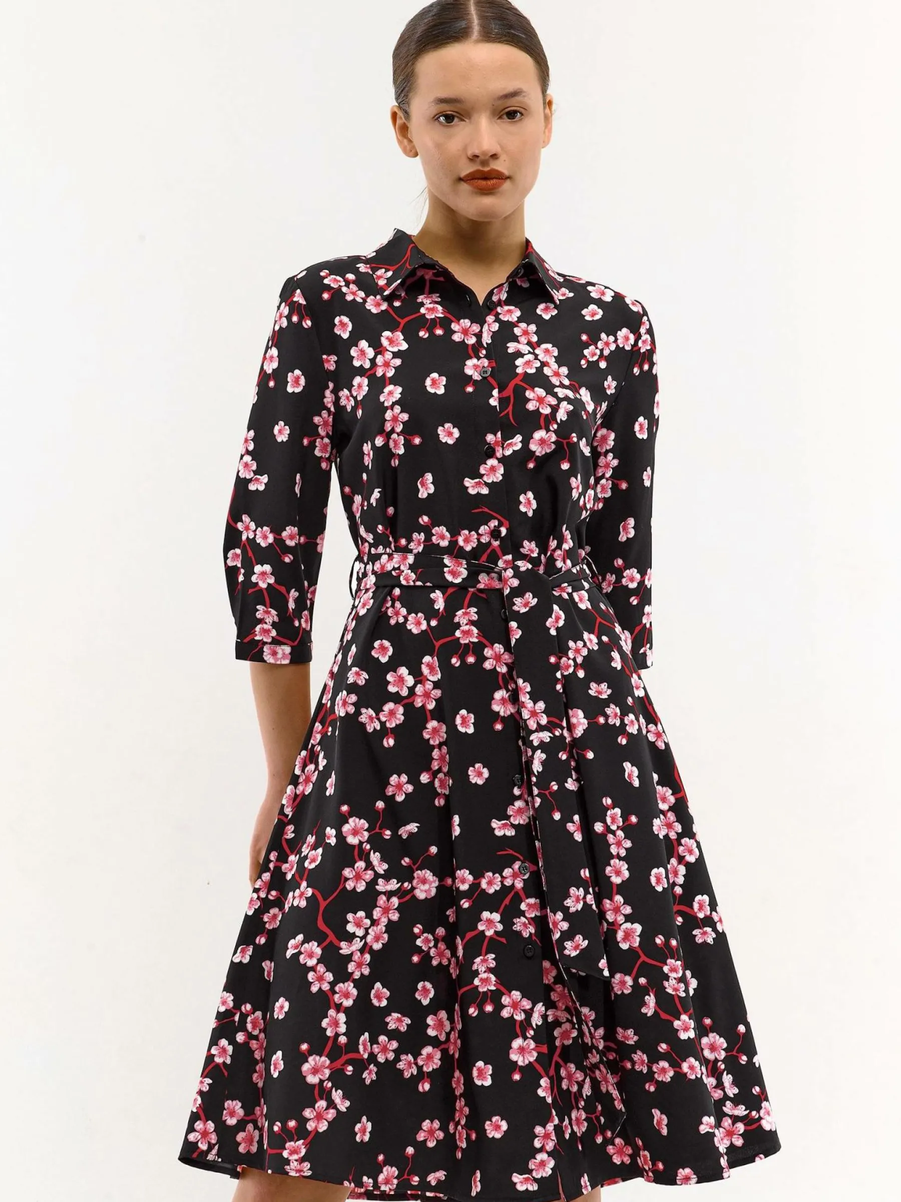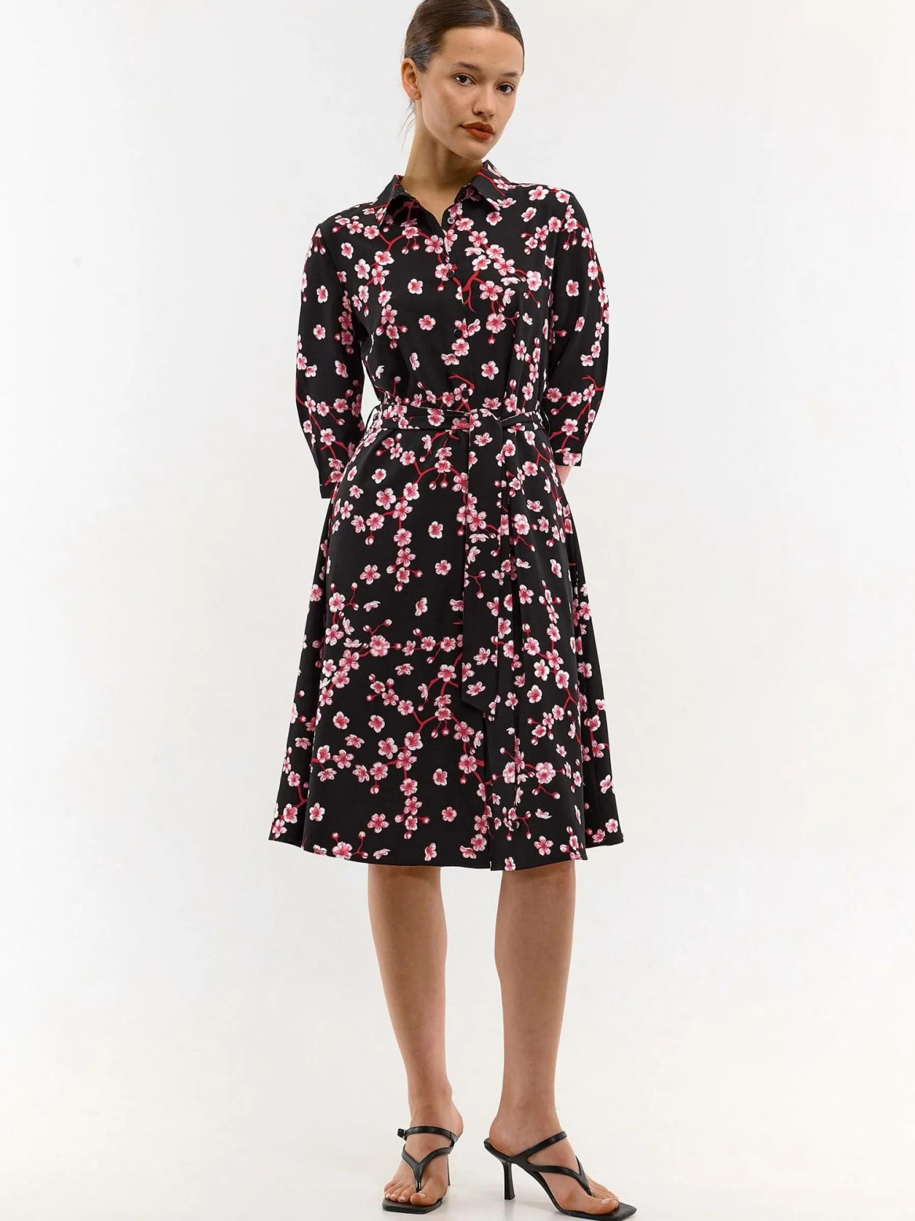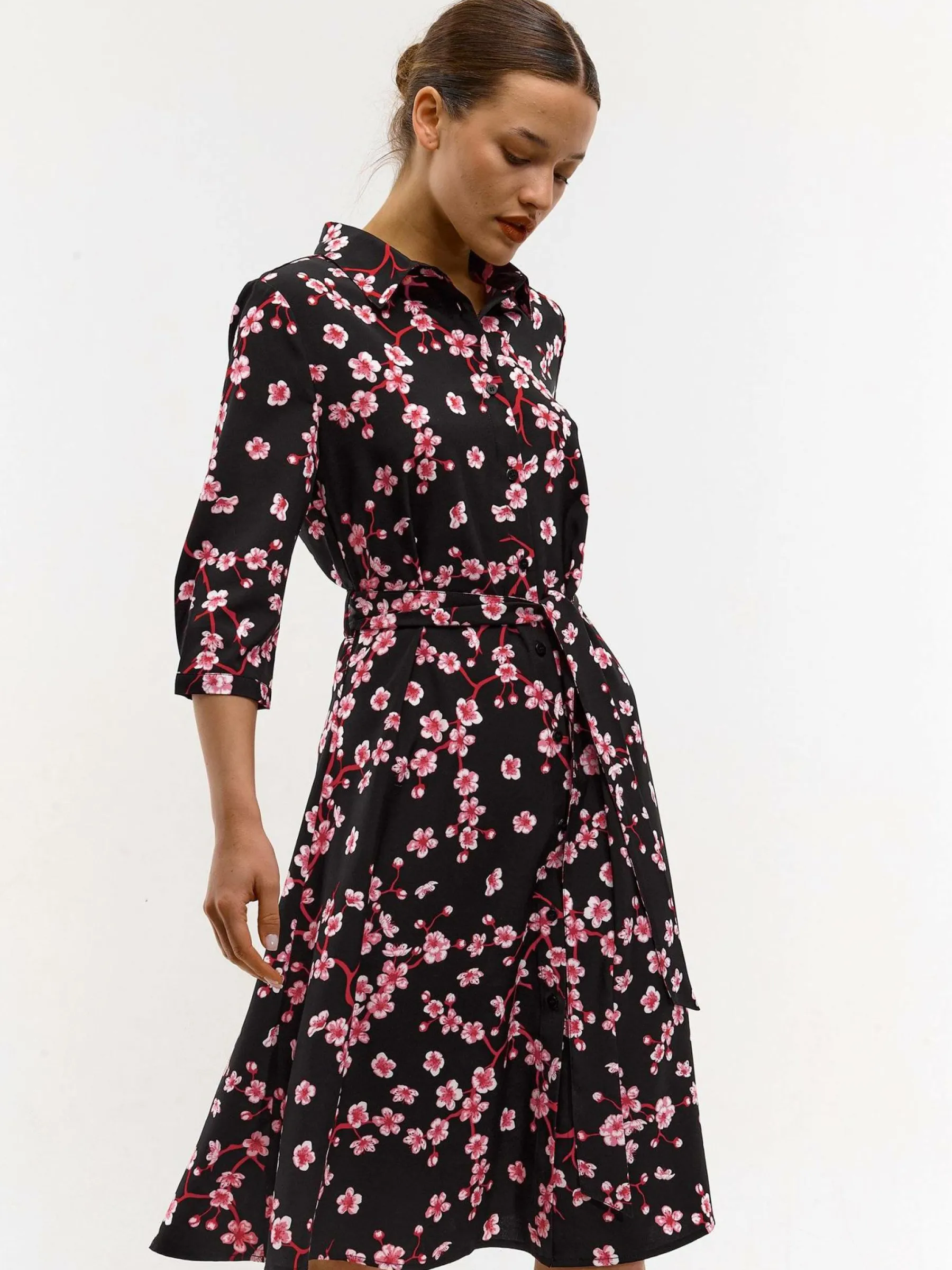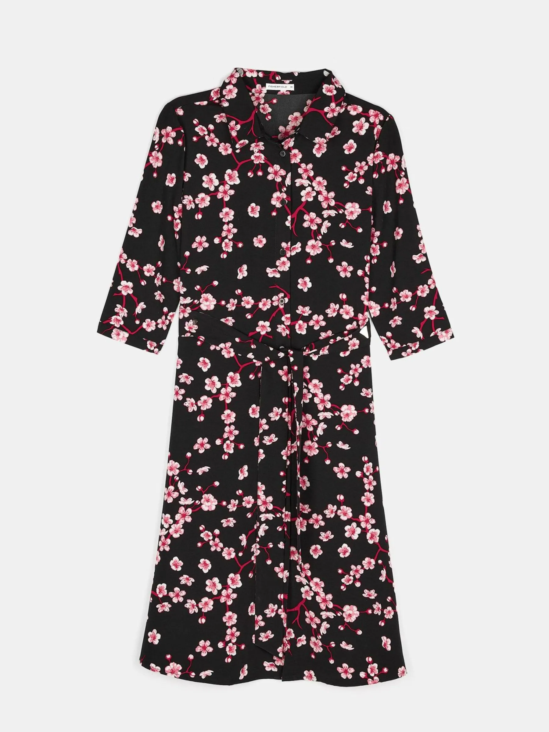 Kolor: czarnyKrój: koszuloweTyp: sukienkaRekaw: rękaw 3/4Długość: midiPattern style: z nadrukiem, kwiatoweDetal: na…