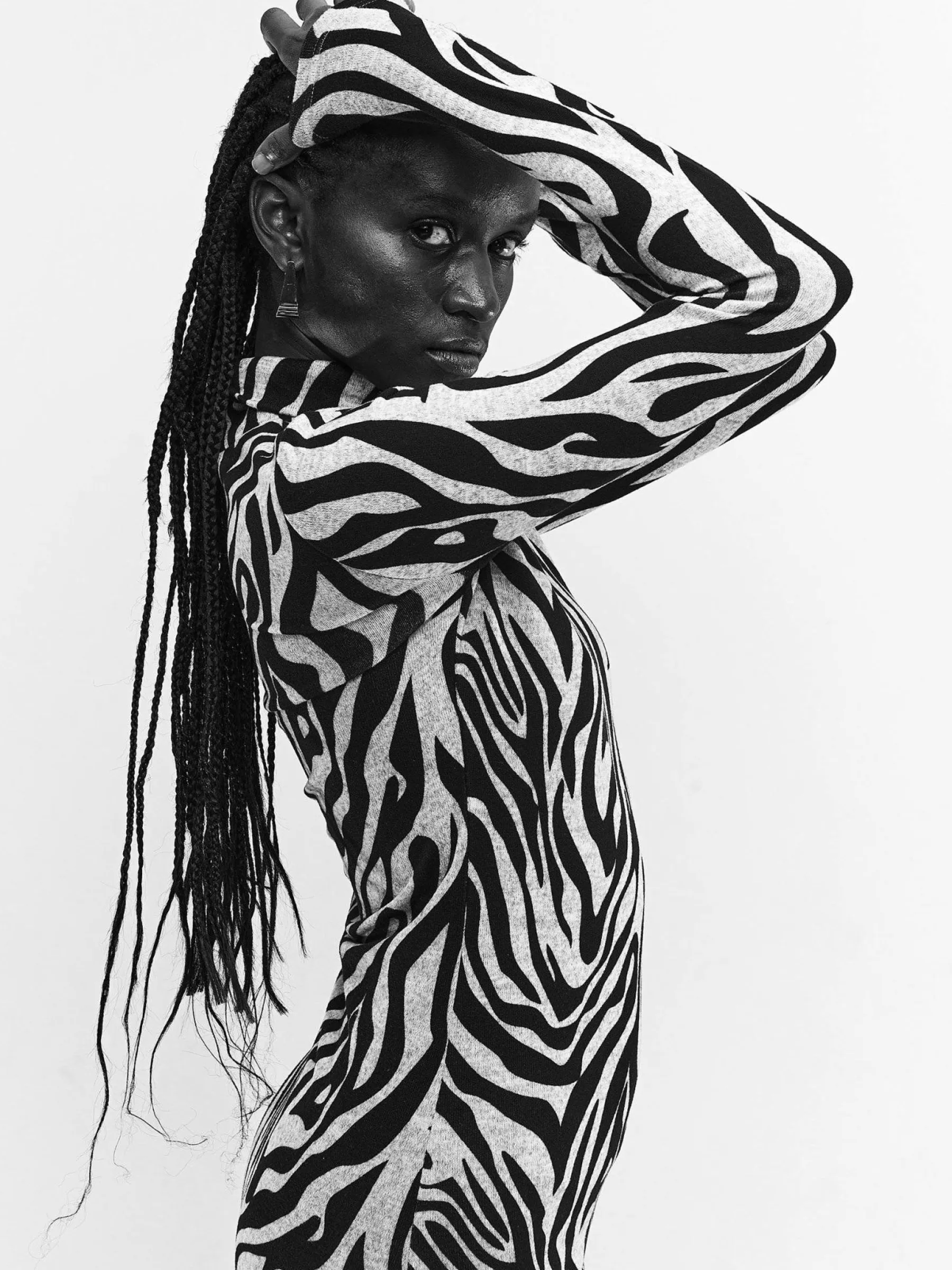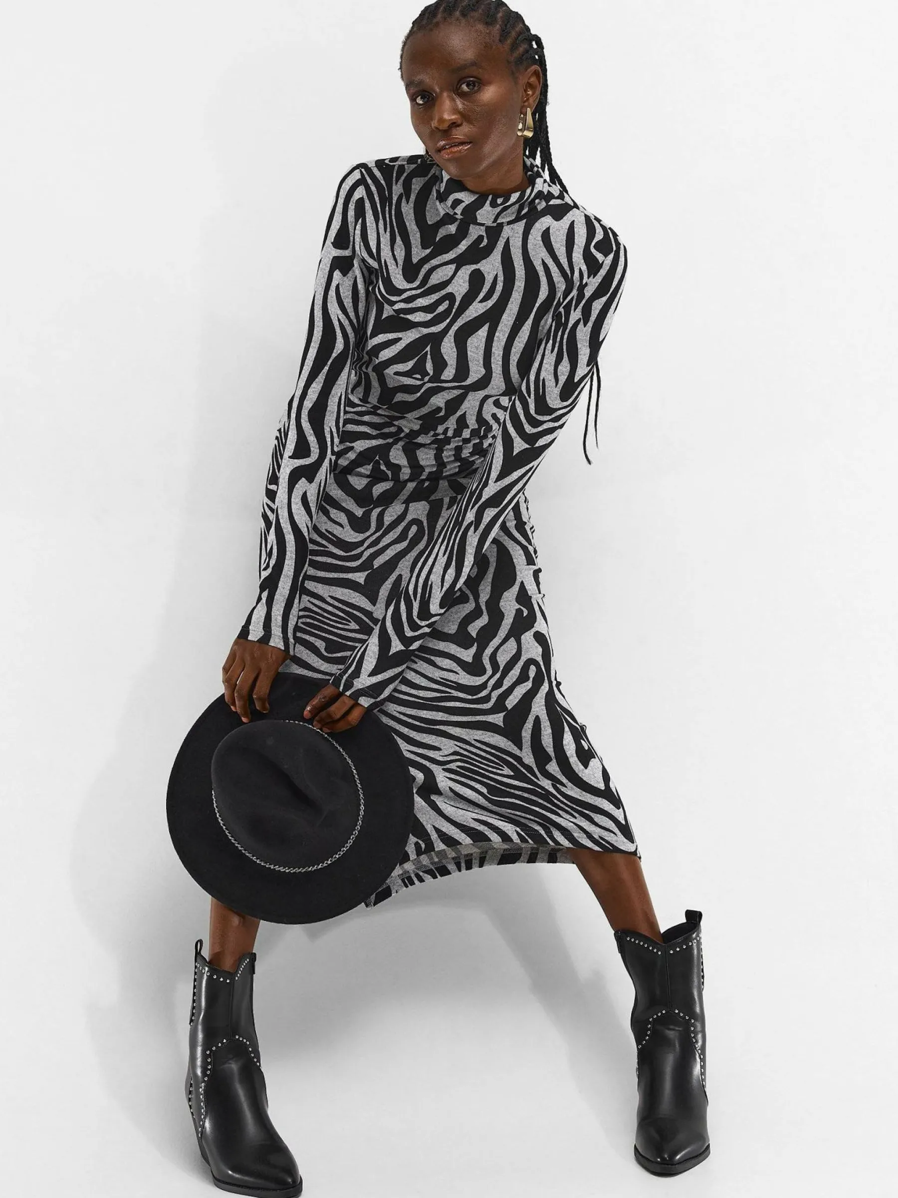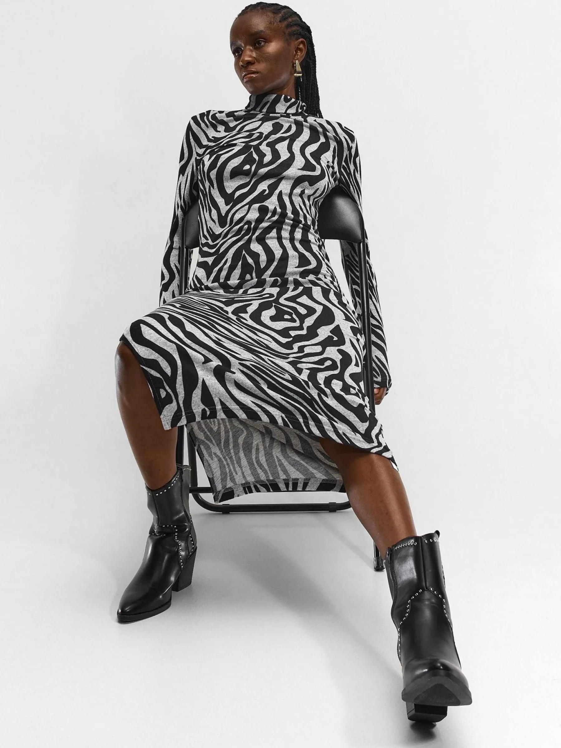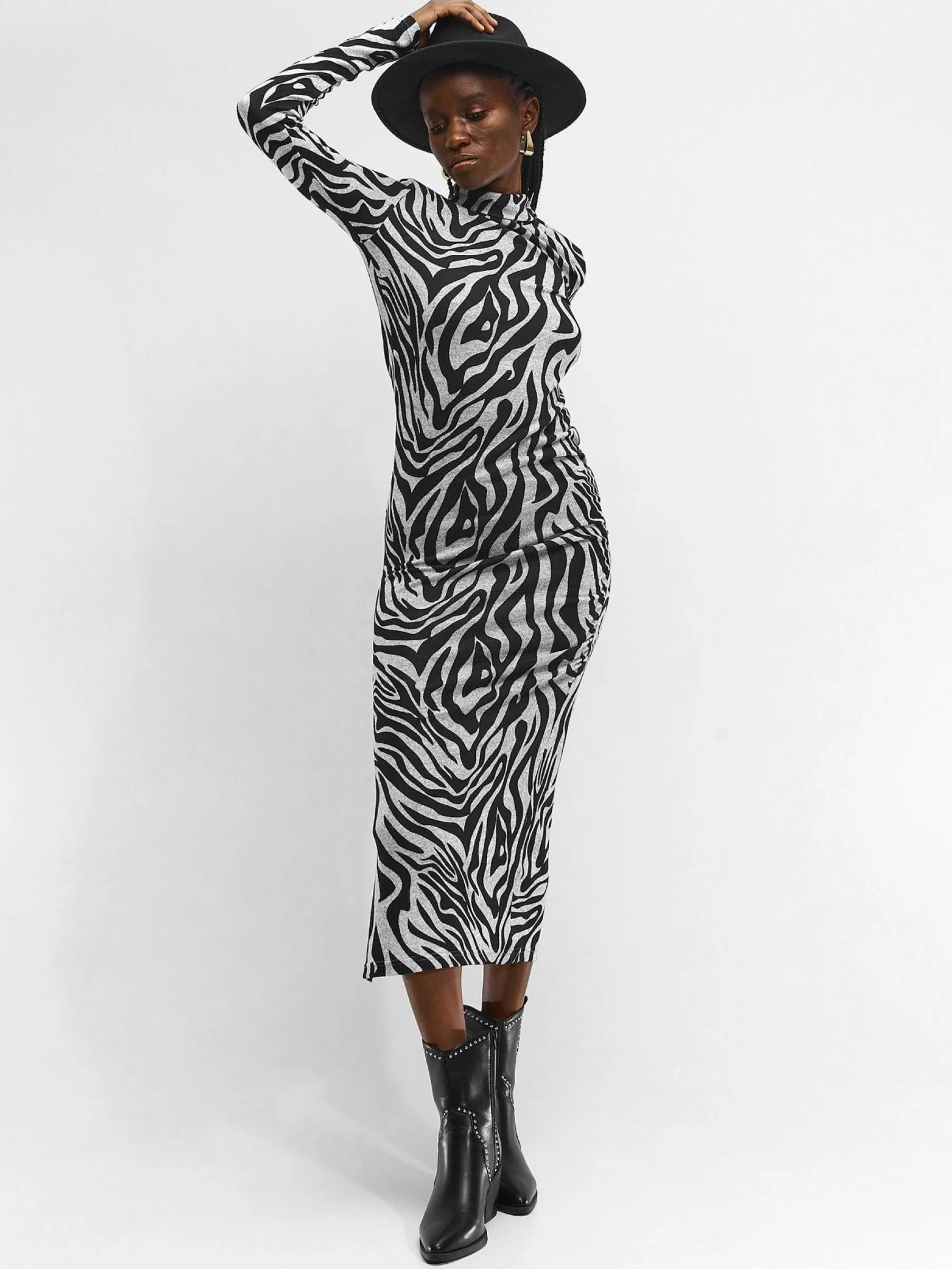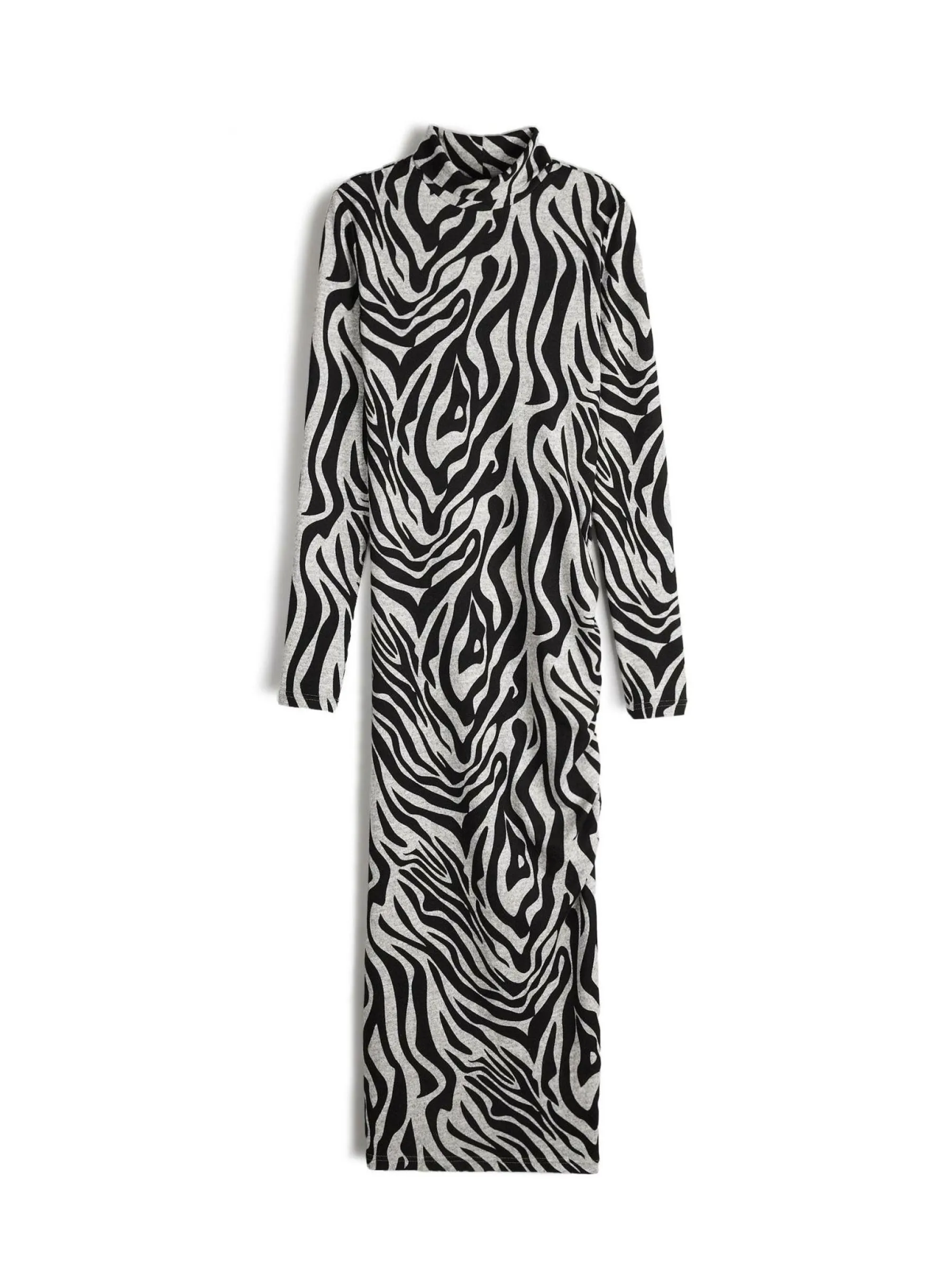 Kolor: czarnyKrój: ołówkoweTyp: sukienkaRekaw: długi rękawDługość: midiPattern style: z nadrukiem, zwierzecyDeta…