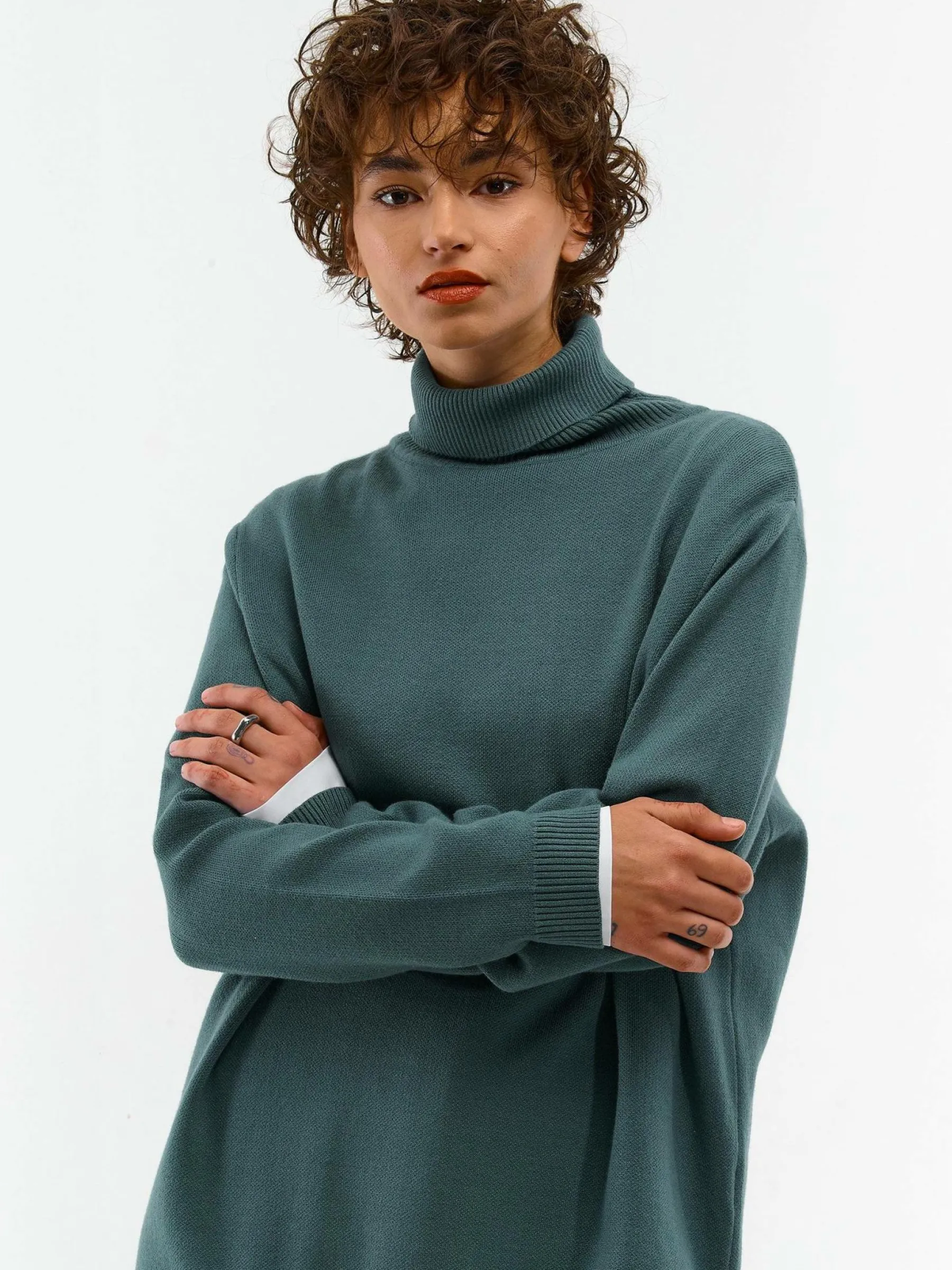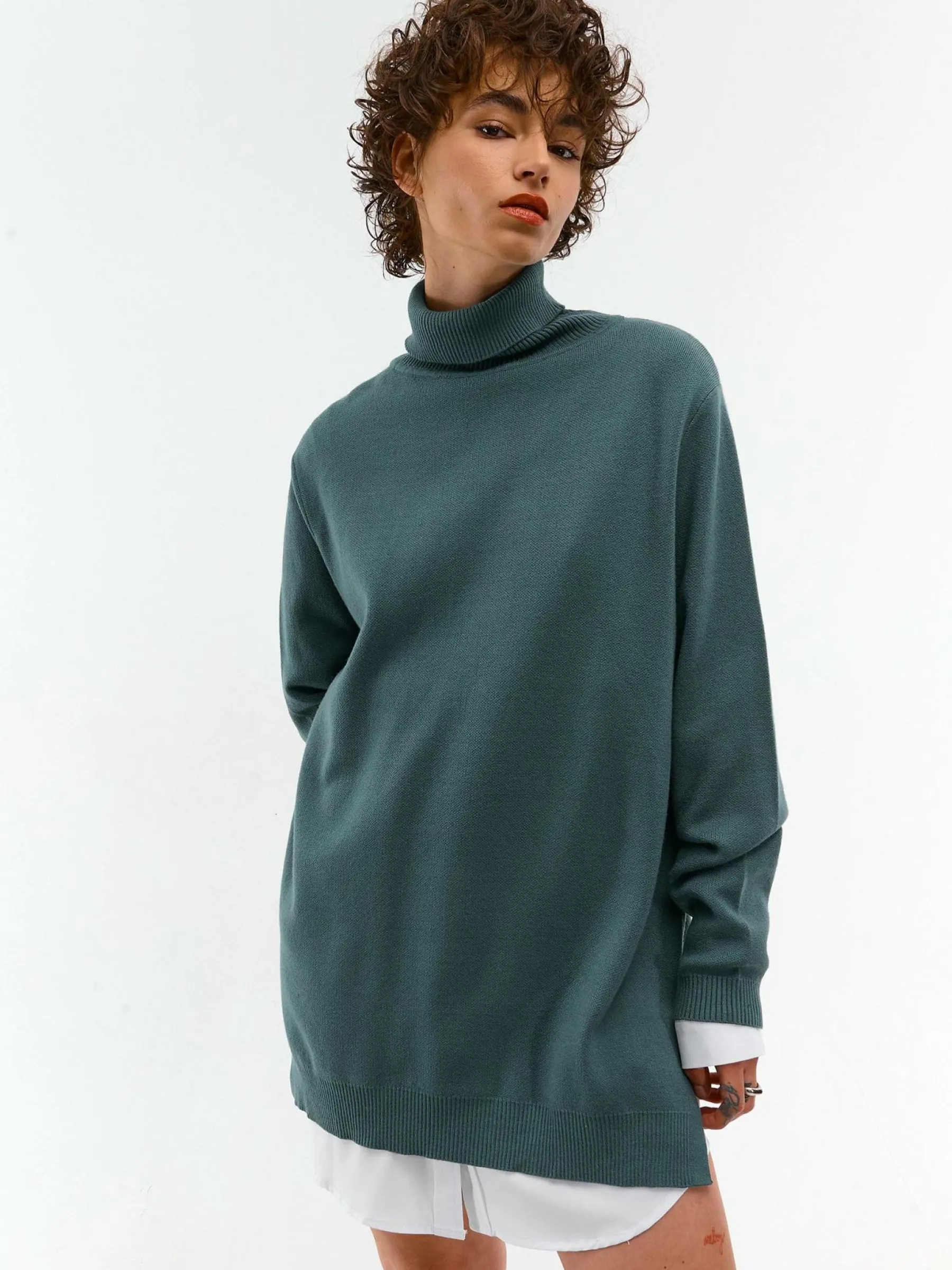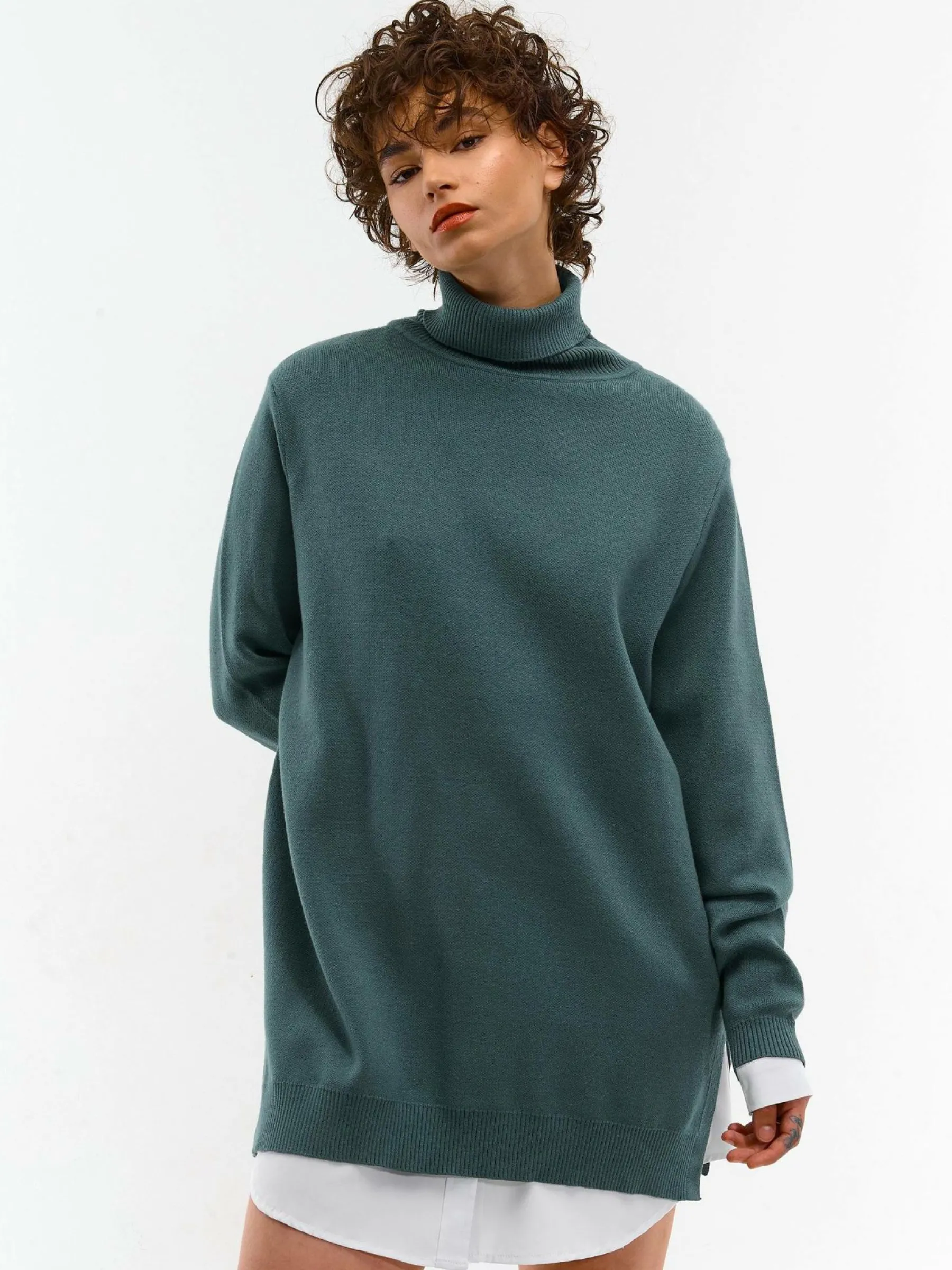 Kolor: zielonyKrój: regularTyp: golfRekaw: długi rękawDługość: dlugiePattern style: pojedynczy kolorDetal: nad gł…