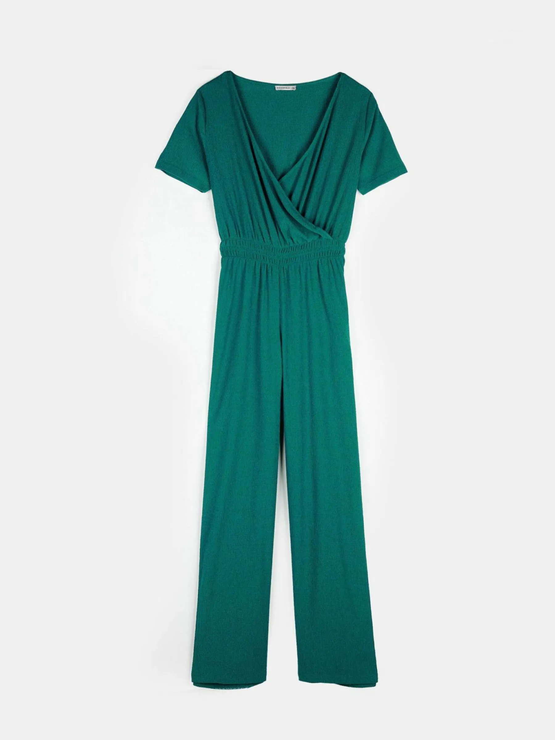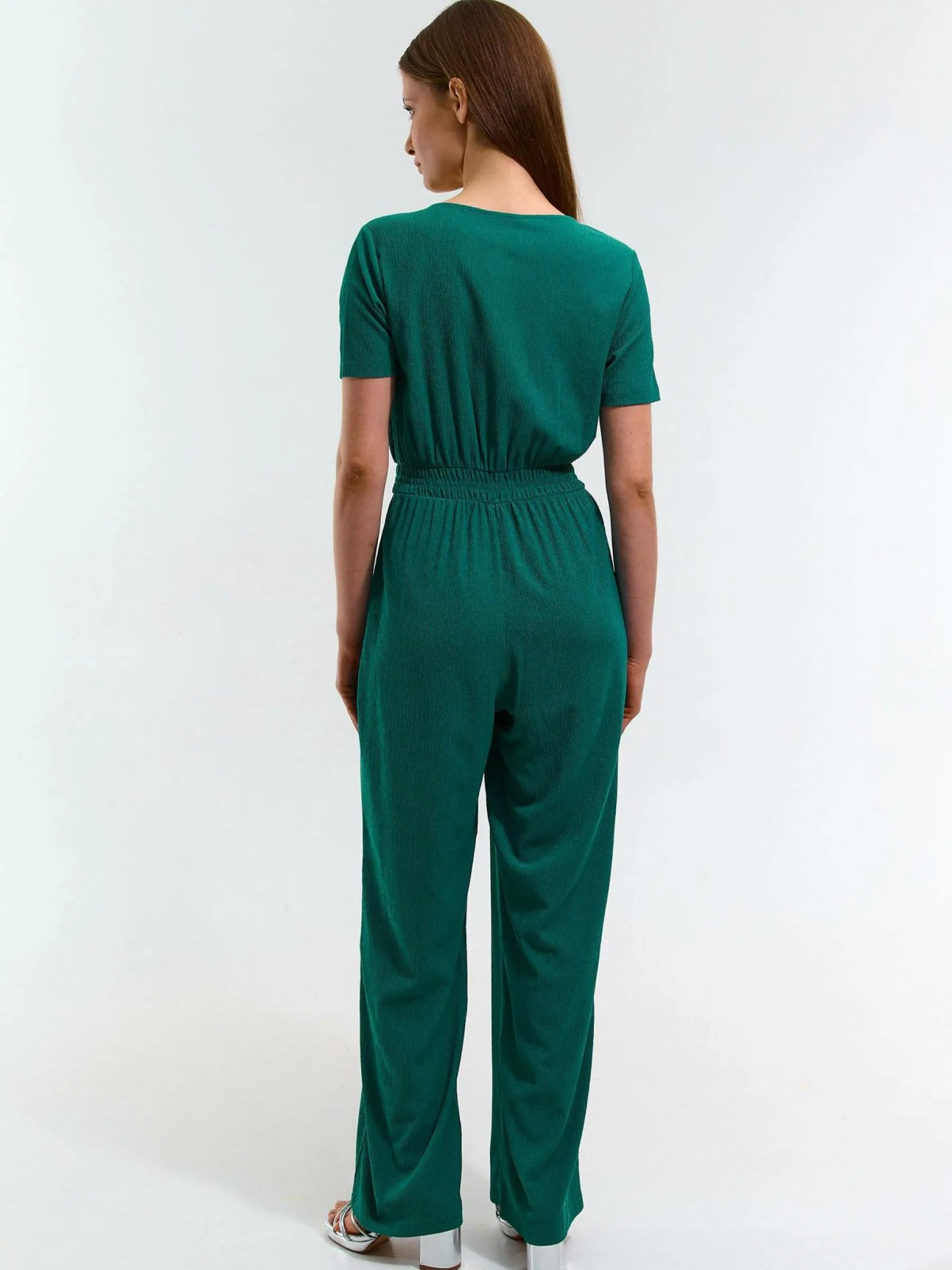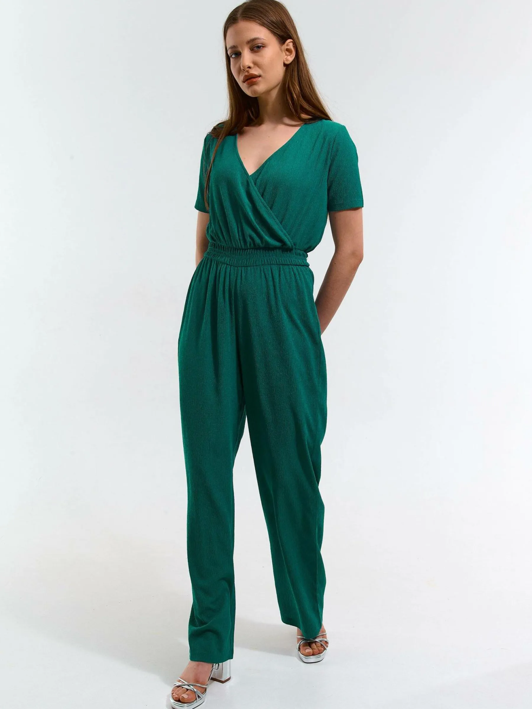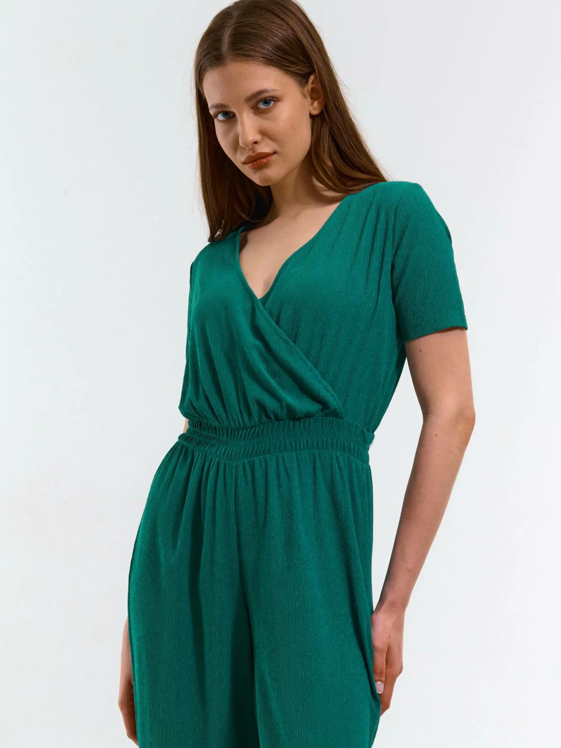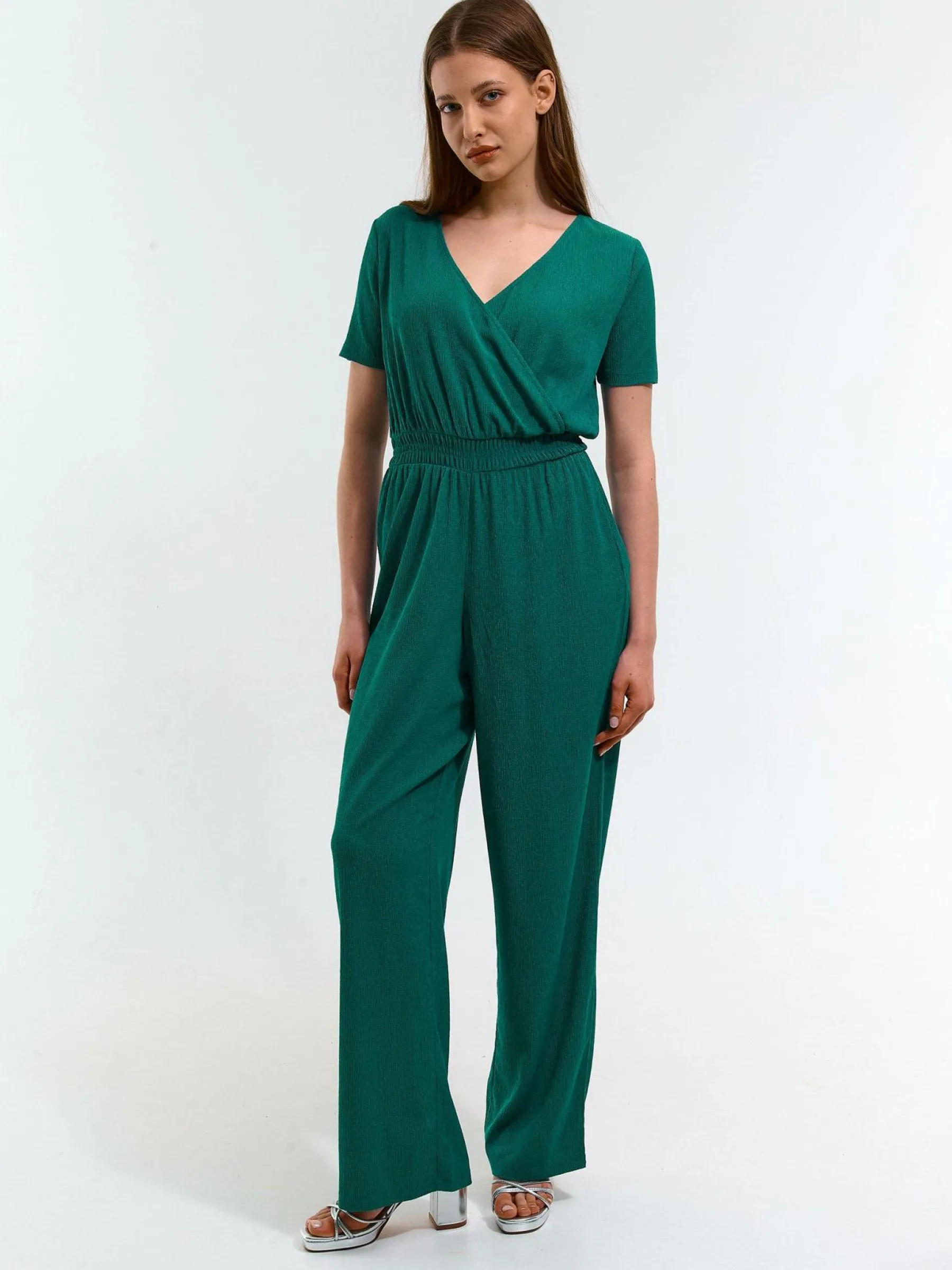 Kolor: zielonyKrój: kopertówkiTyp: kombinezonRekaw: krótki rękawDługość: dlugiePattern style: pojedynczy kolorDet…
