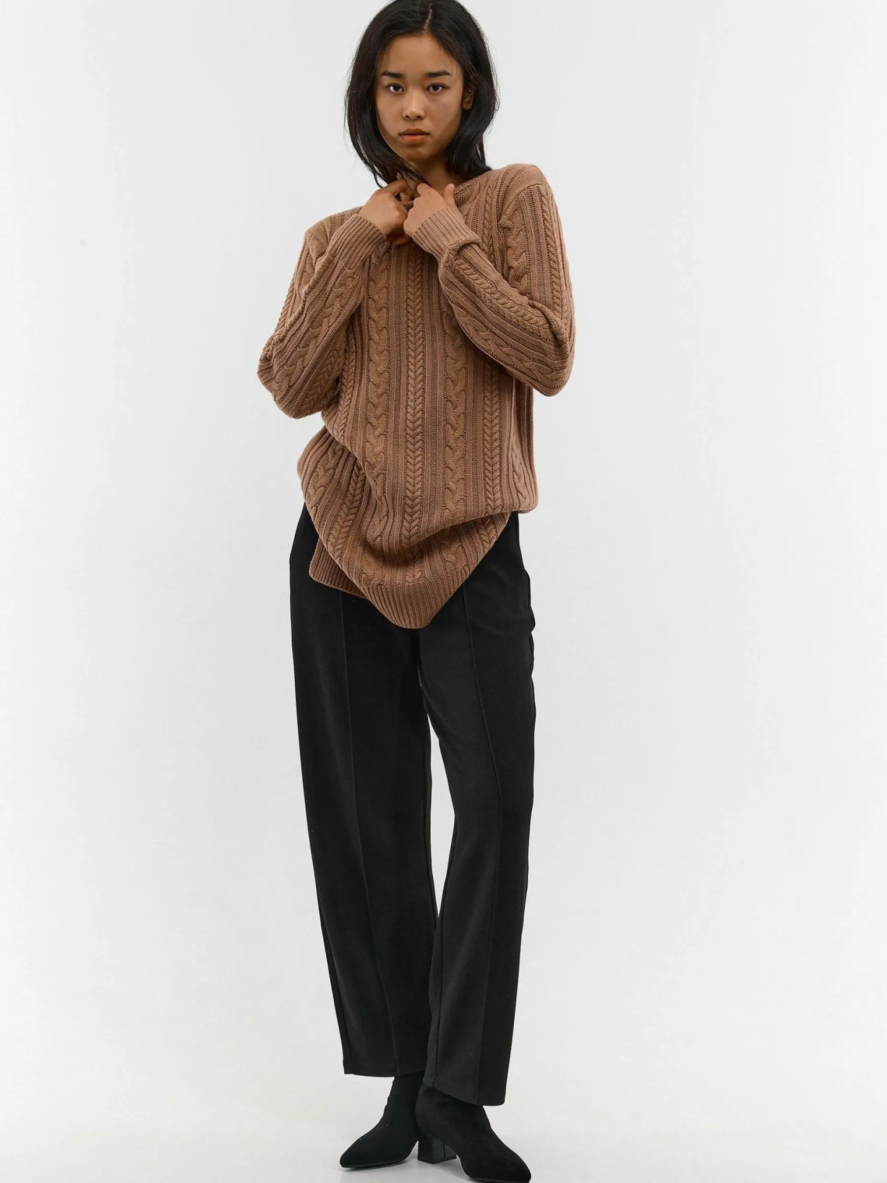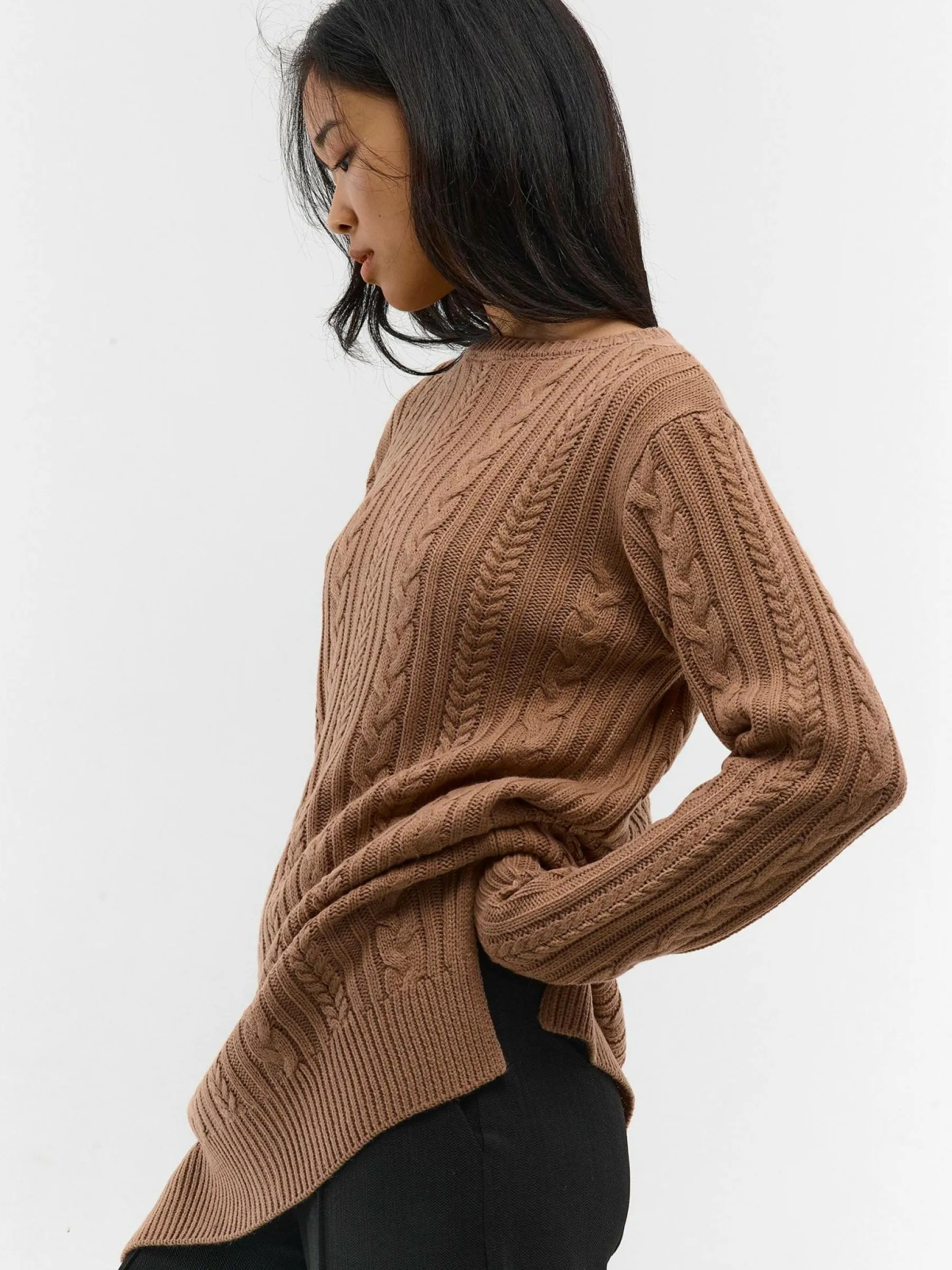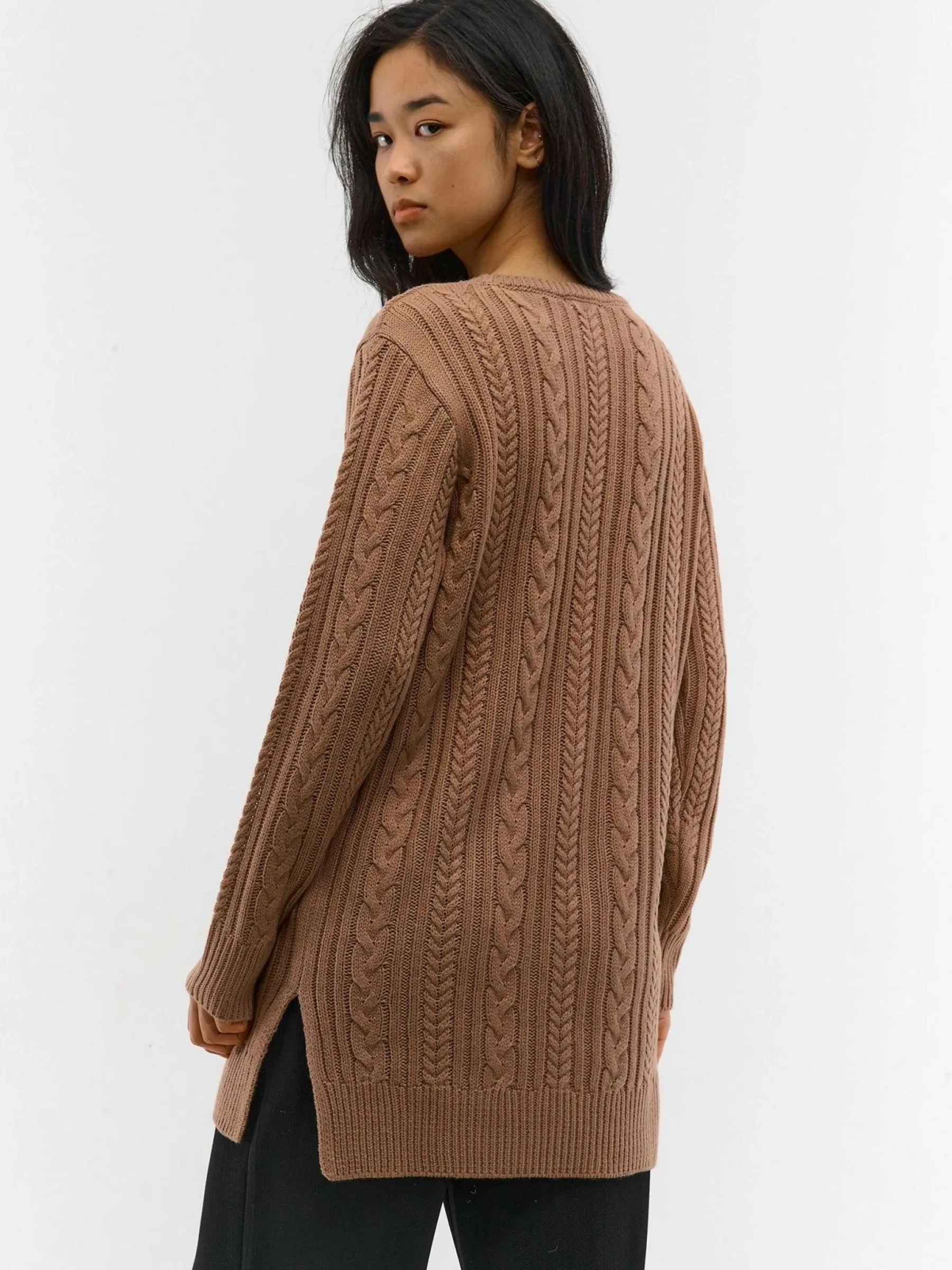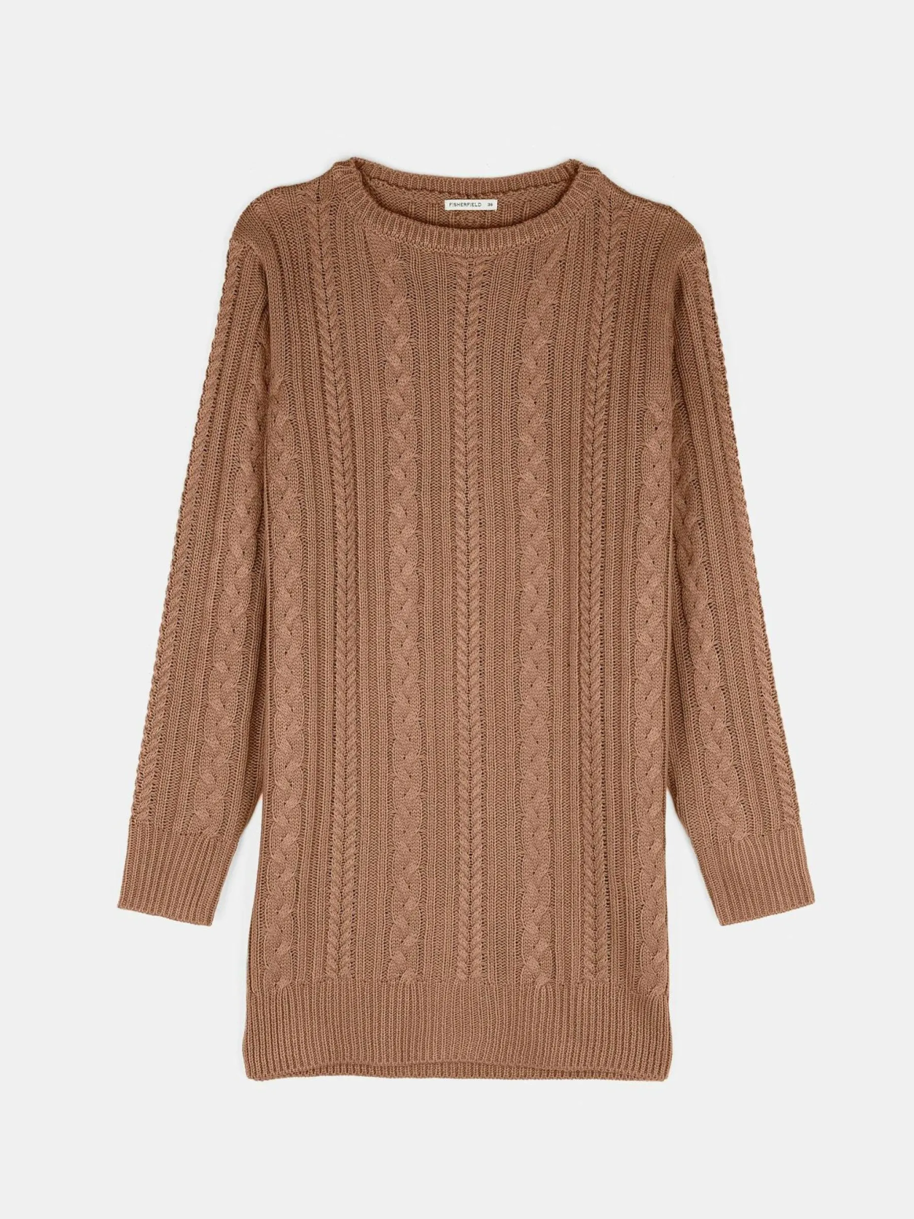 Kolor: brązowyKrój: regularTyp: swetryRekaw: długi rękawDługość: dlugiePattern style: strukturowane, pojedynczy k…