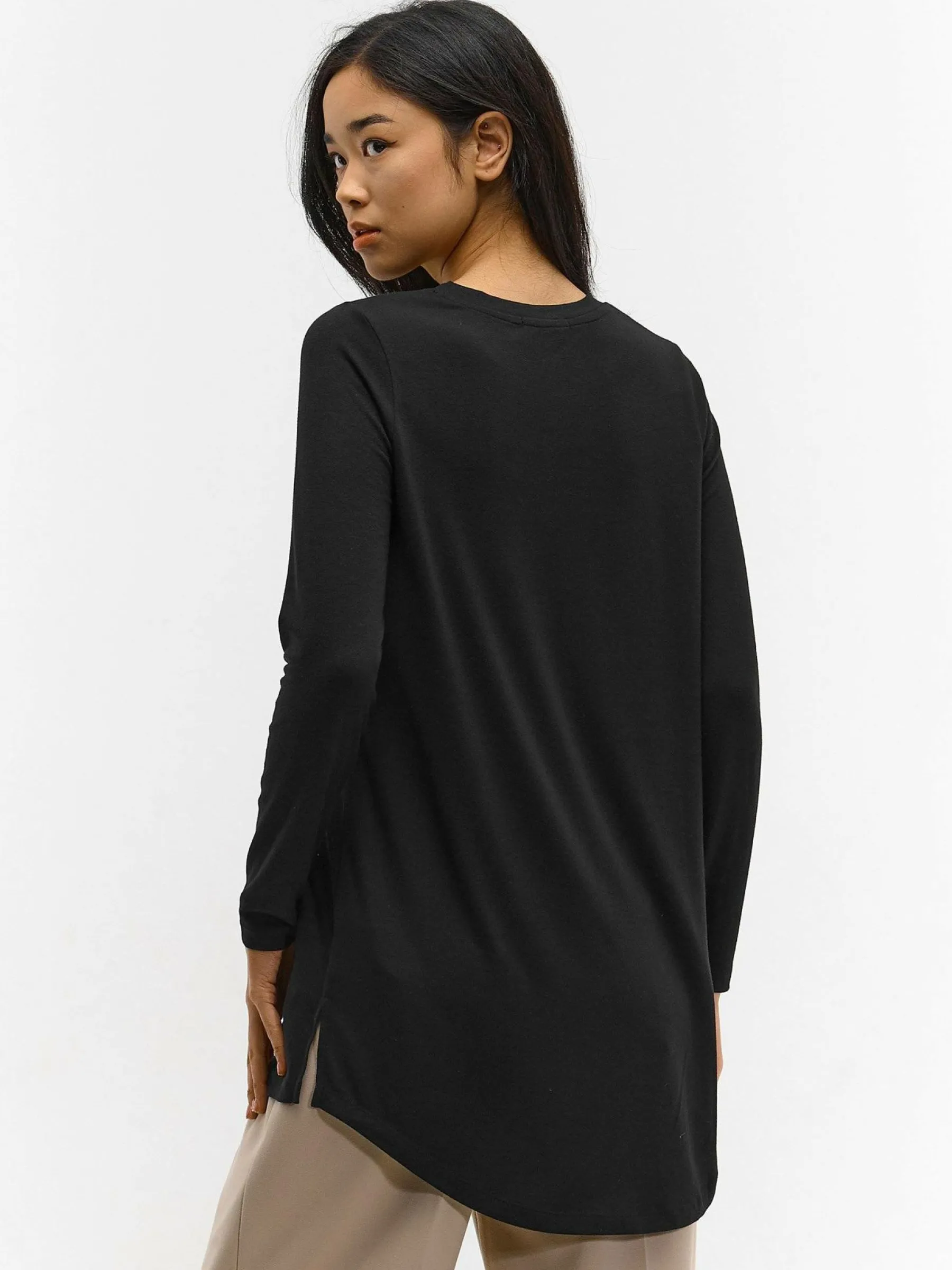 Kolor: czarnyKrój: regularTyp: topRekaw: długi rękawDługość: dlugiePattern style: pojedynczy kolorDetal: nad głow…