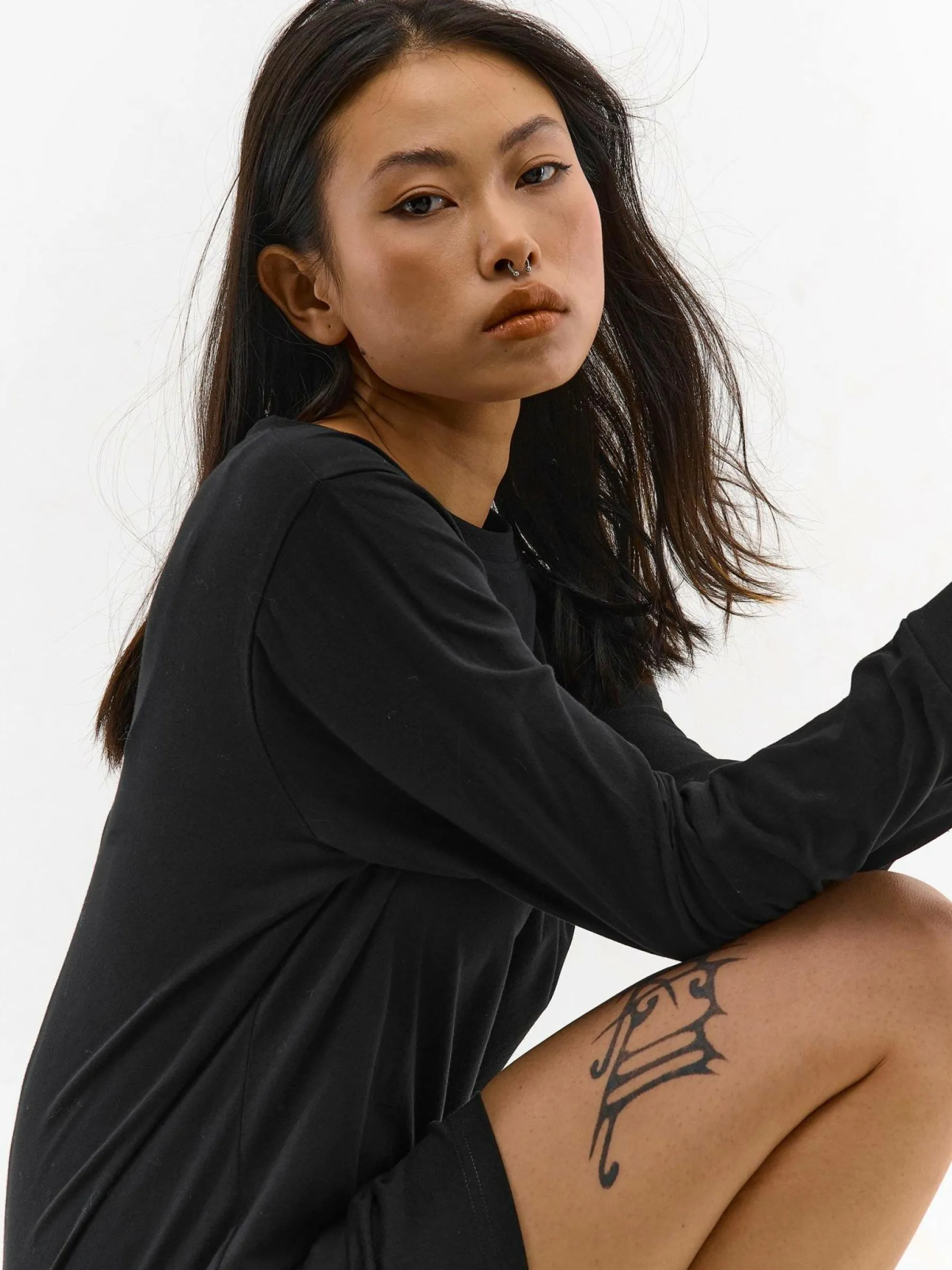Kolor: czarnyKrój: regularTyp: topRekaw: długi rękawDługość: dlugiePattern style: pojedynczy kolorDetal: nad głow…