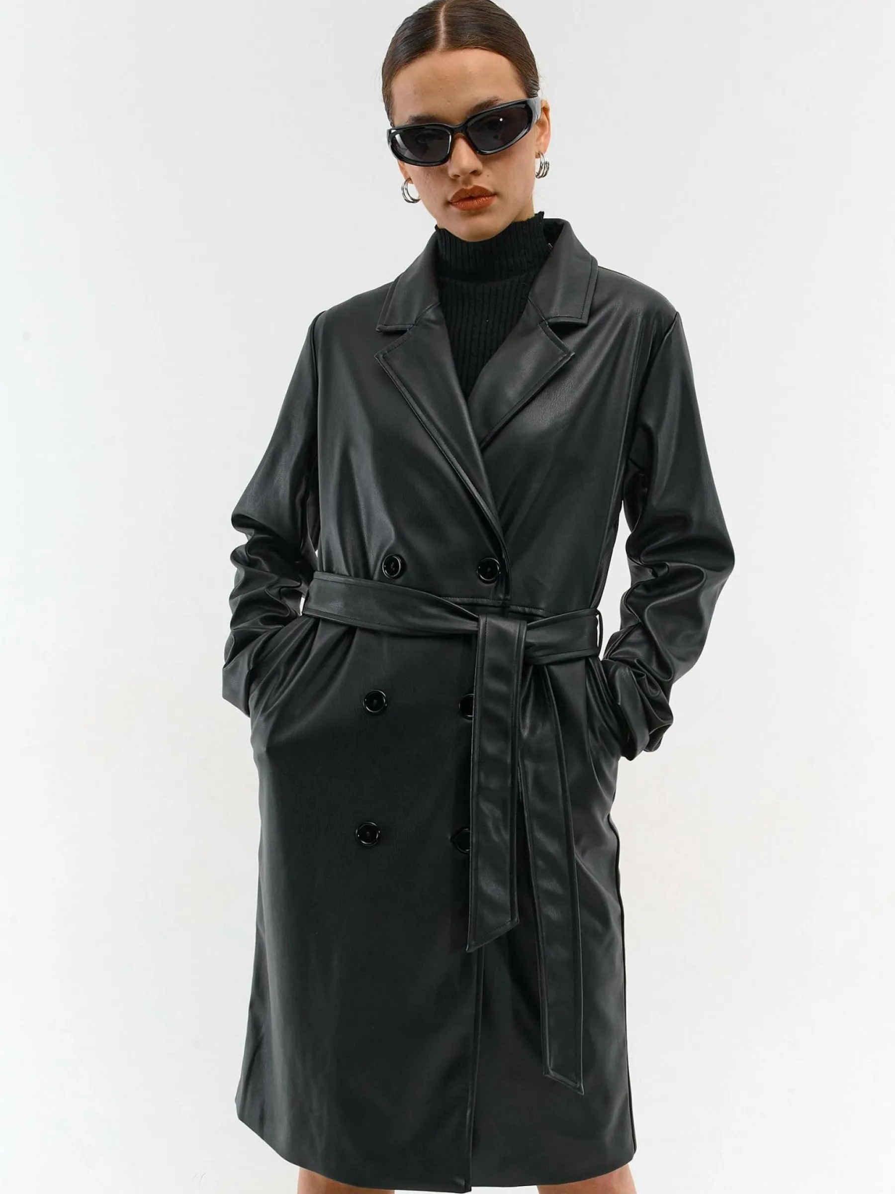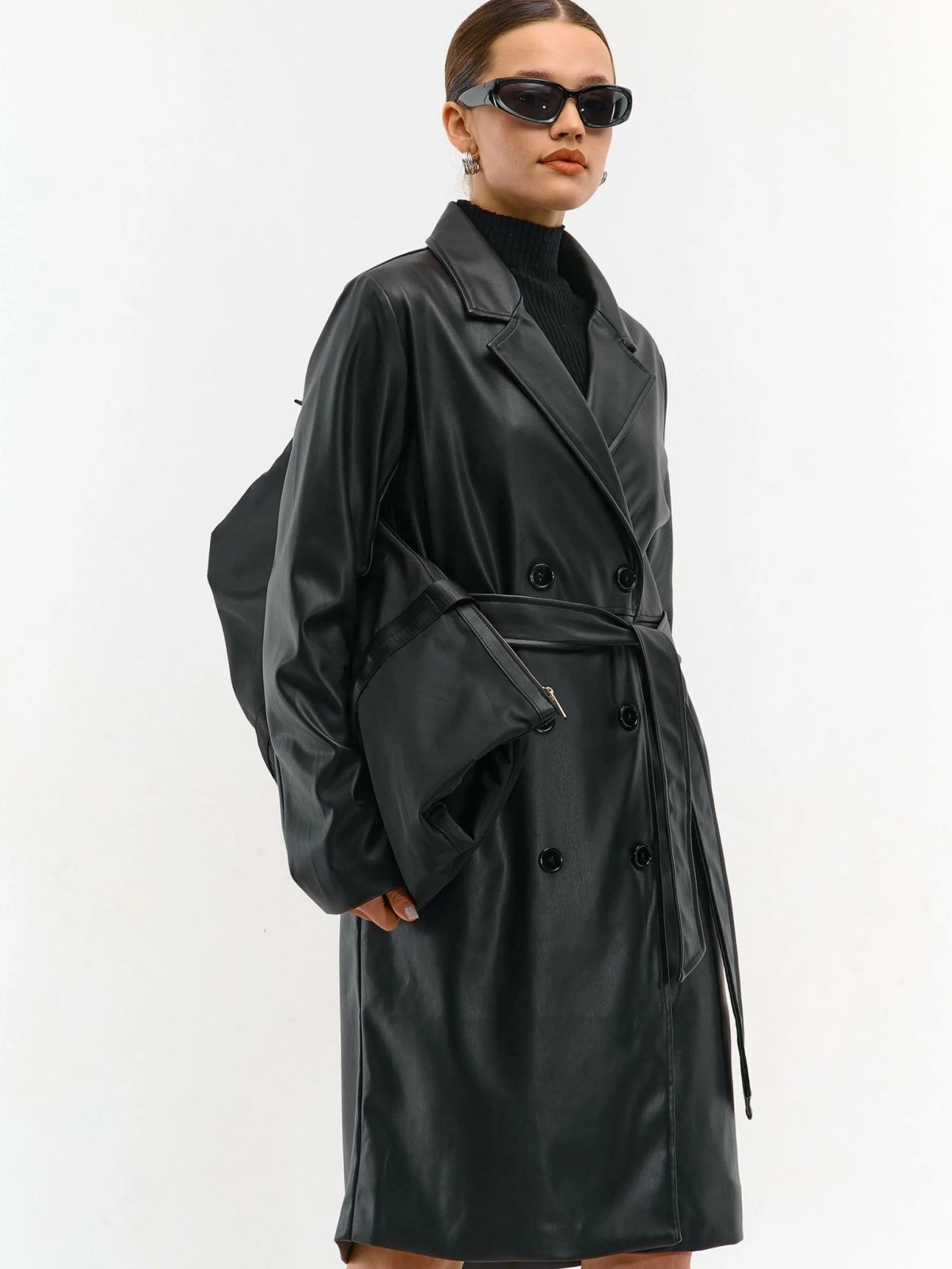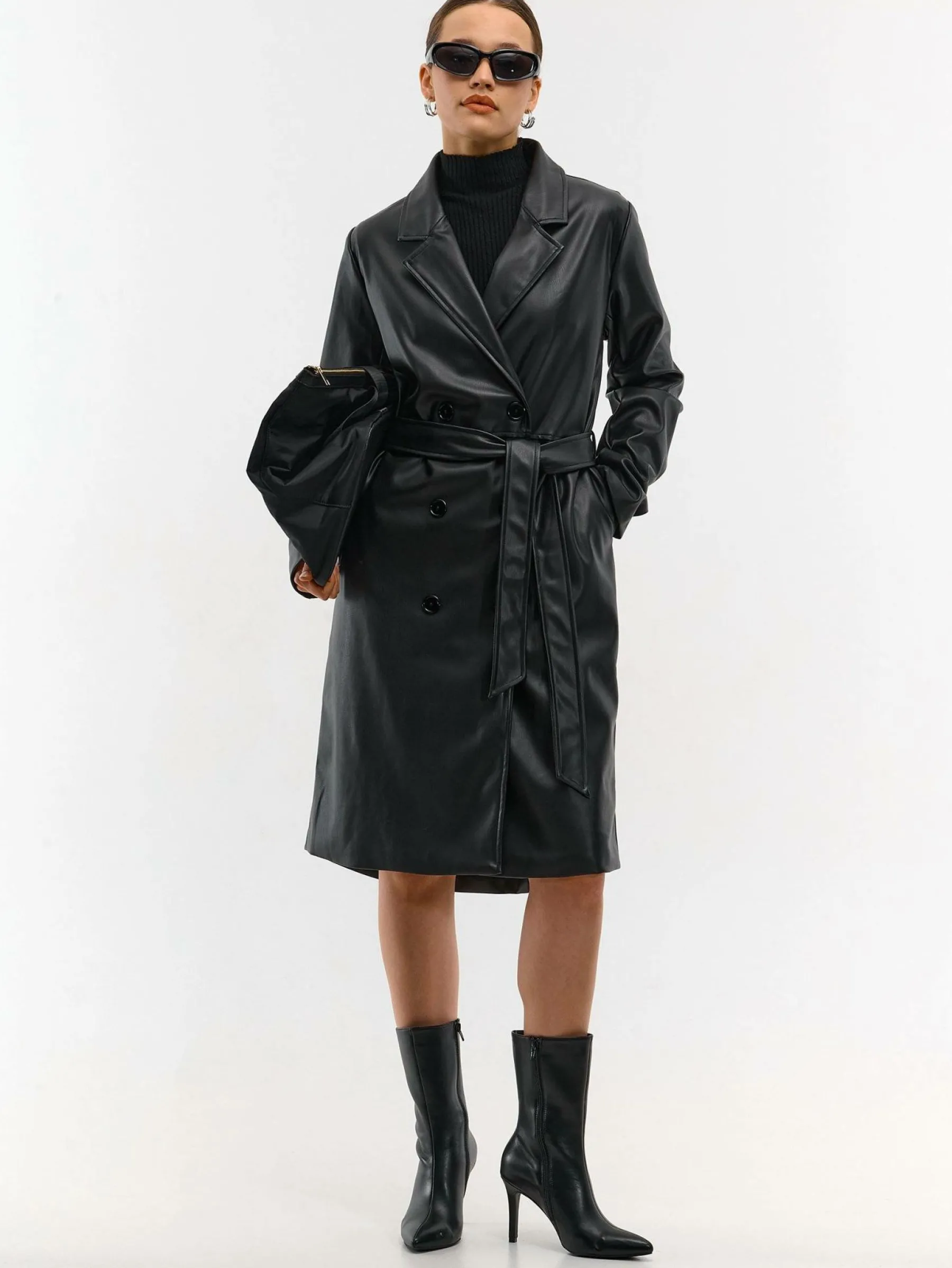 Kolor: czarnyKrój: podstawowyTyp: trenczRekaw: długi rękawDługość: dlugiePattern style: pojedynczy kolorDetal: z p…