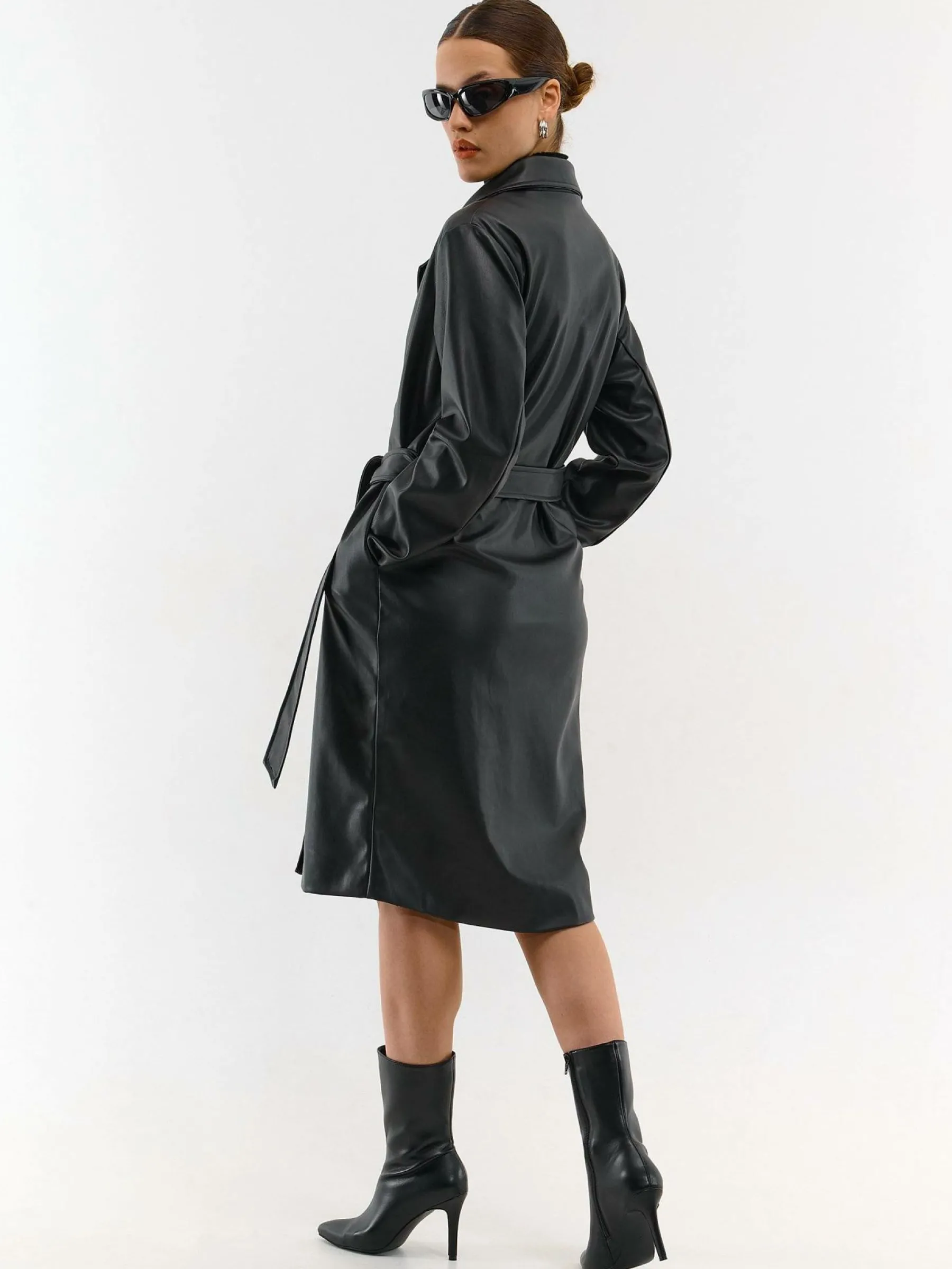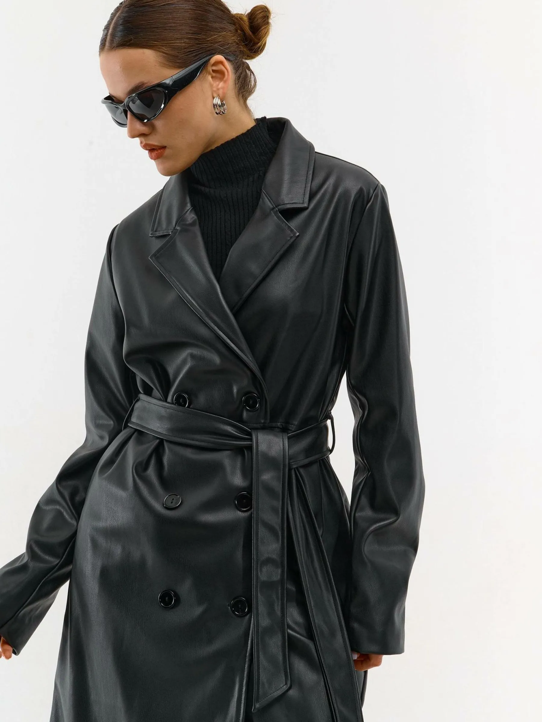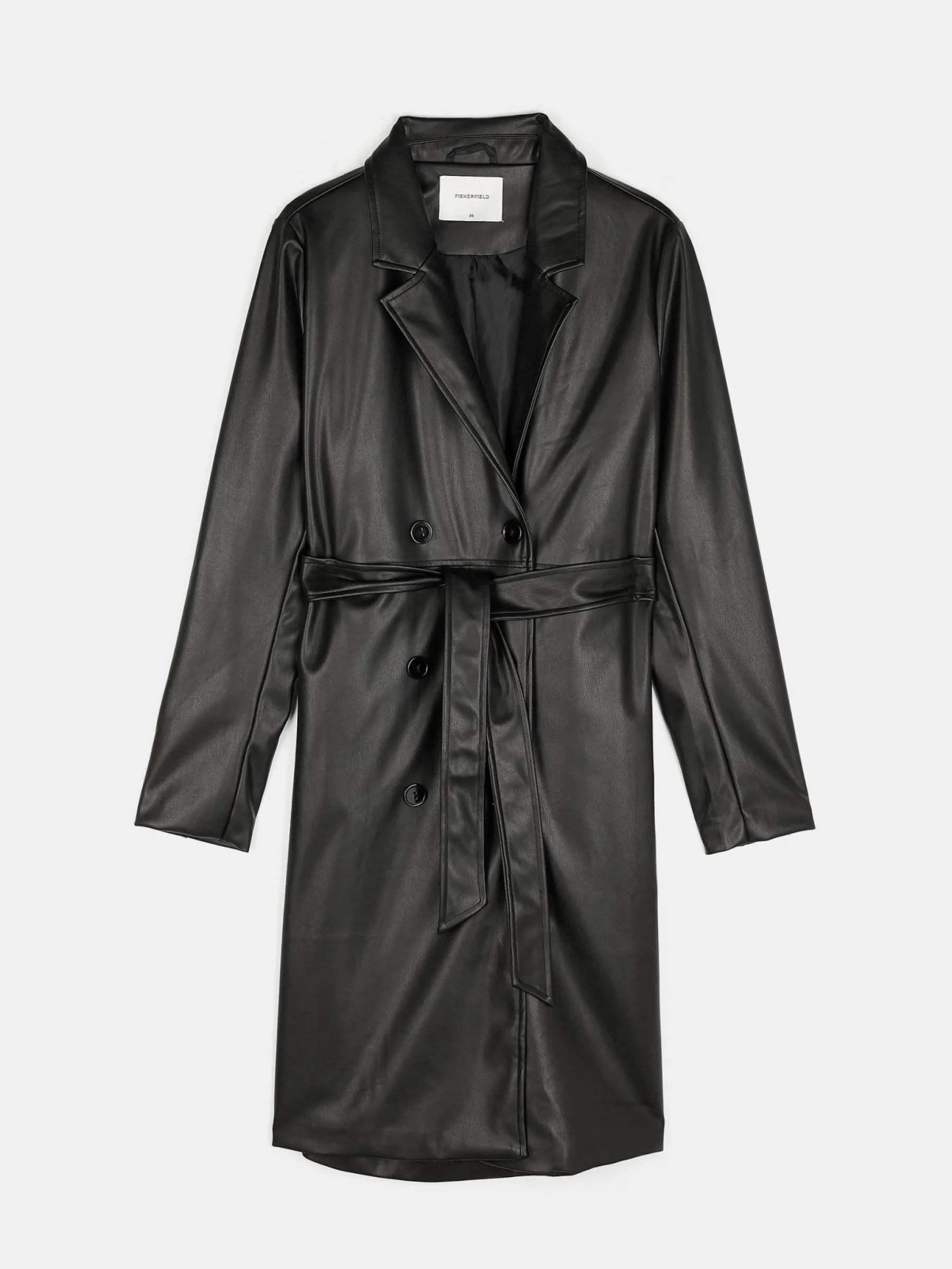 Kolor: czarnyKrój: podstawowyTyp: trenczRekaw: długi rękawDługość: dlugiePattern style: pojedynczy kolorDetal: z p…