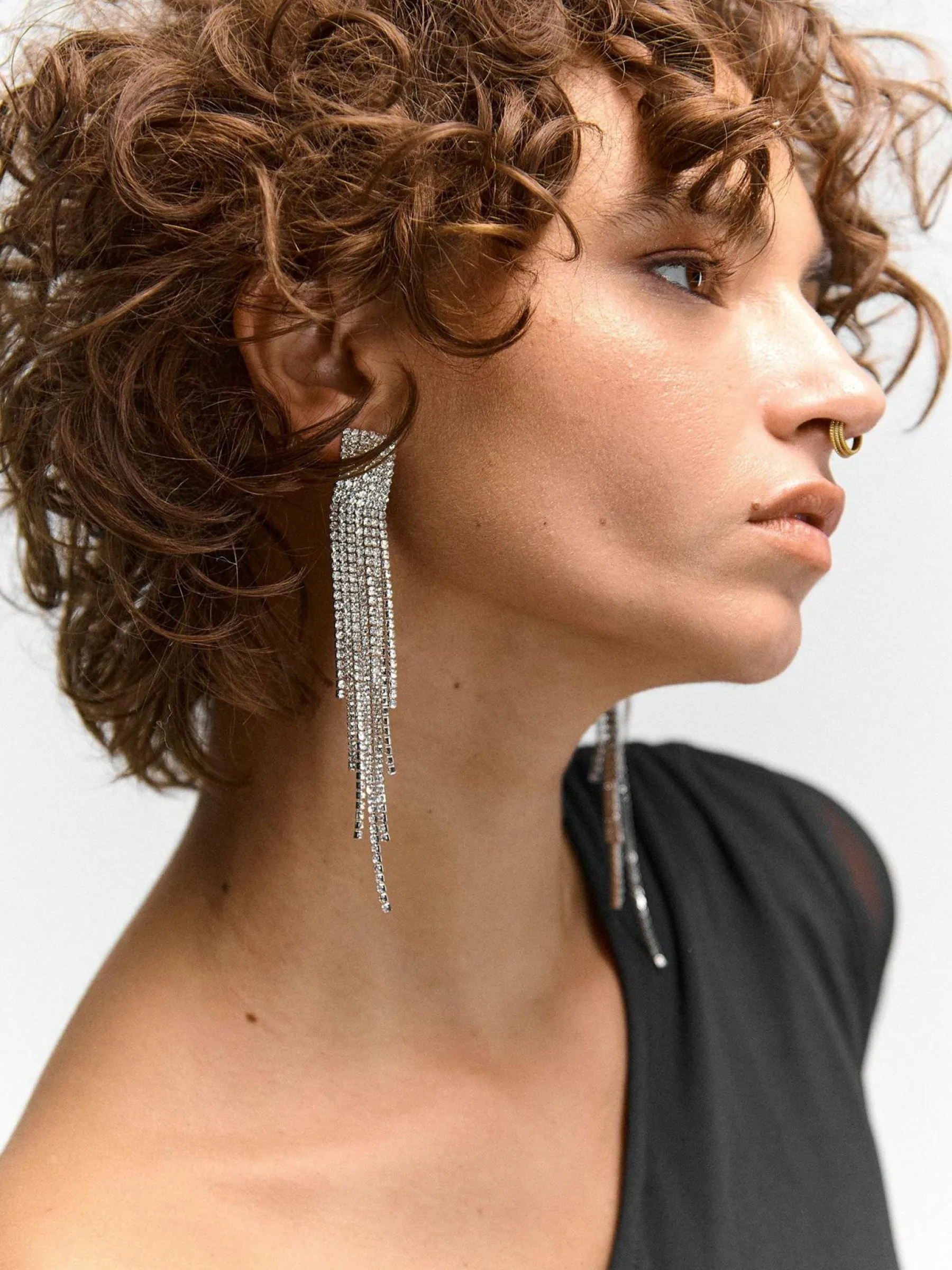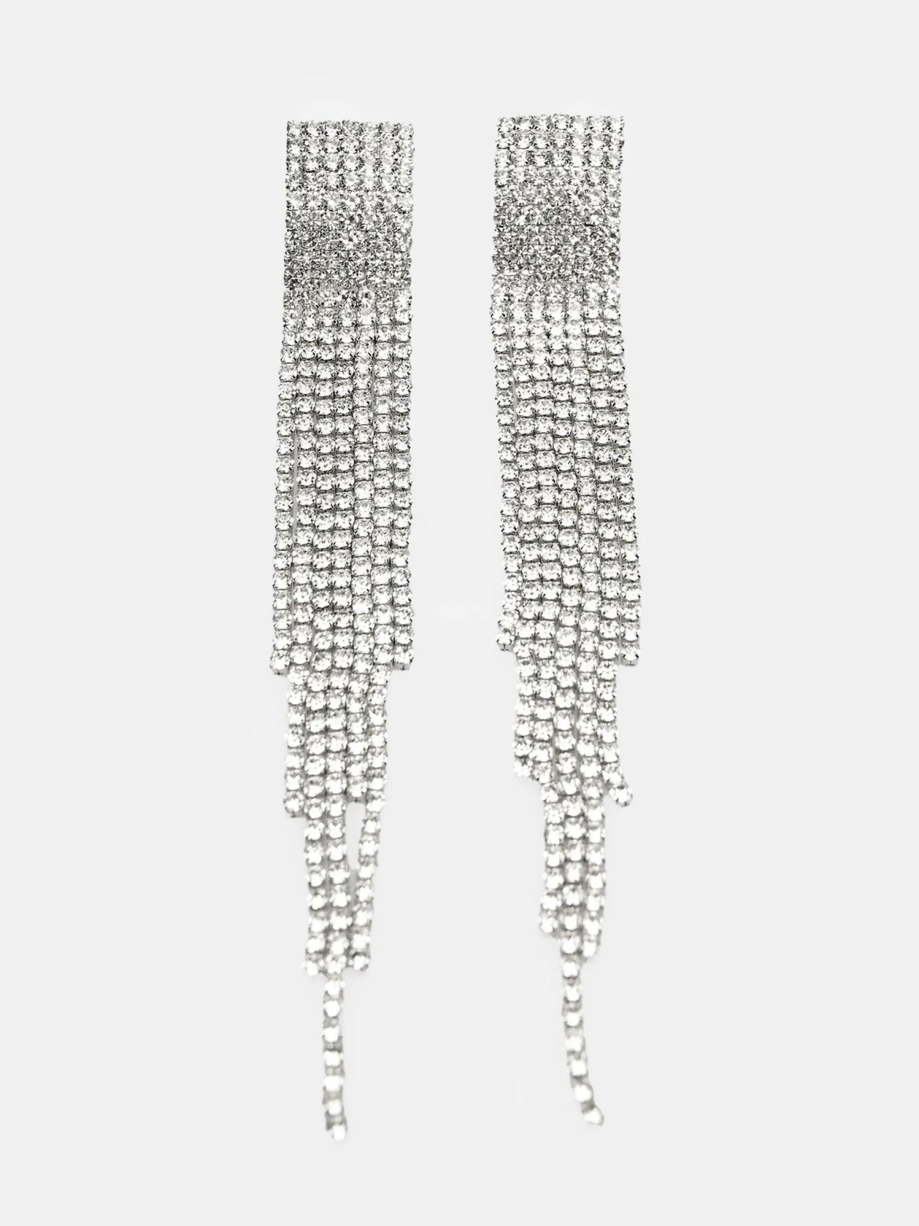Kolor: silverKrój: wisząceTyp: kolczykiPattern style: pojedynczy kolorDetal: z kamieniamiMateriał: szklane, metalPłe…