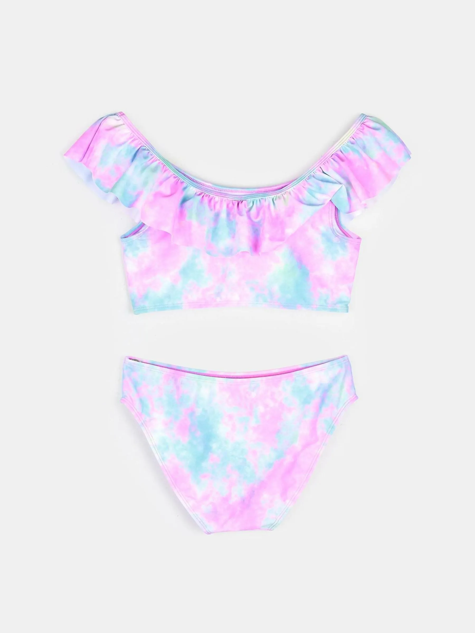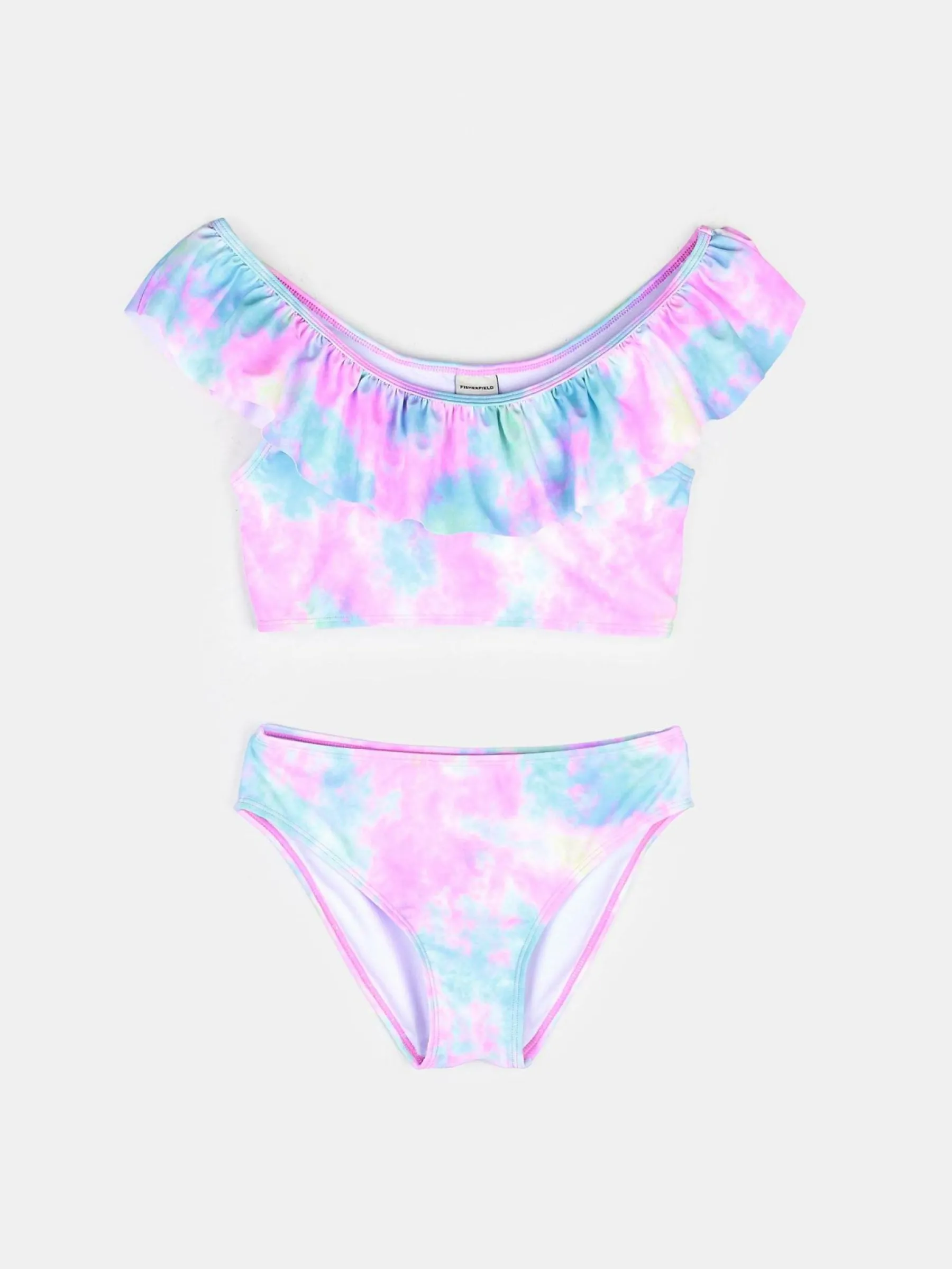 Kolor: różowyKrój: dwuczęściowy, z falbanąTyp: kostiumy kąpielowePattern style: tie dyeMateriał: syntetycznePłe…