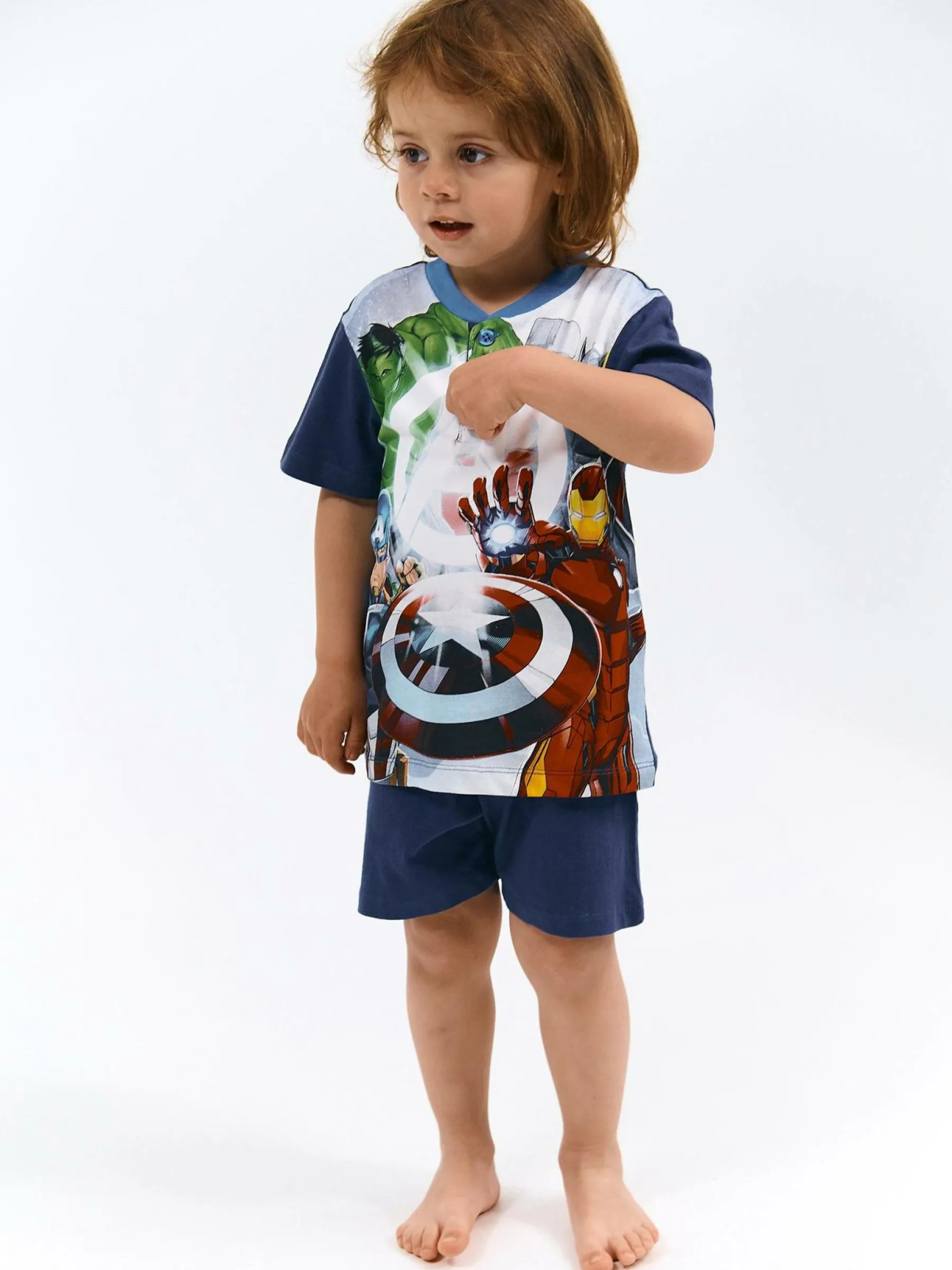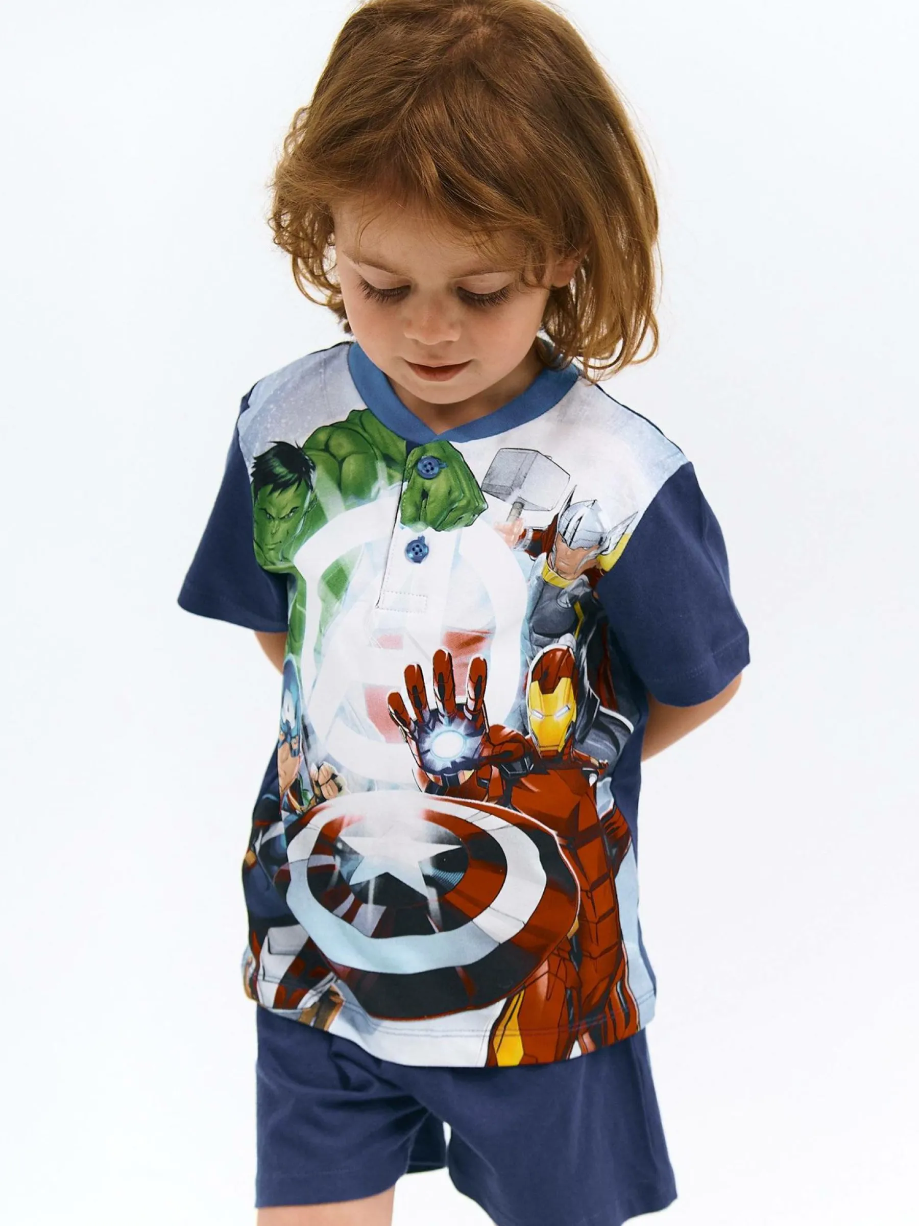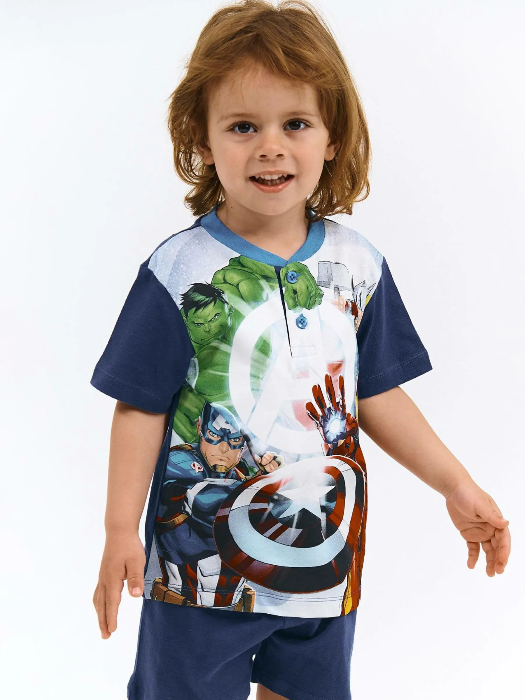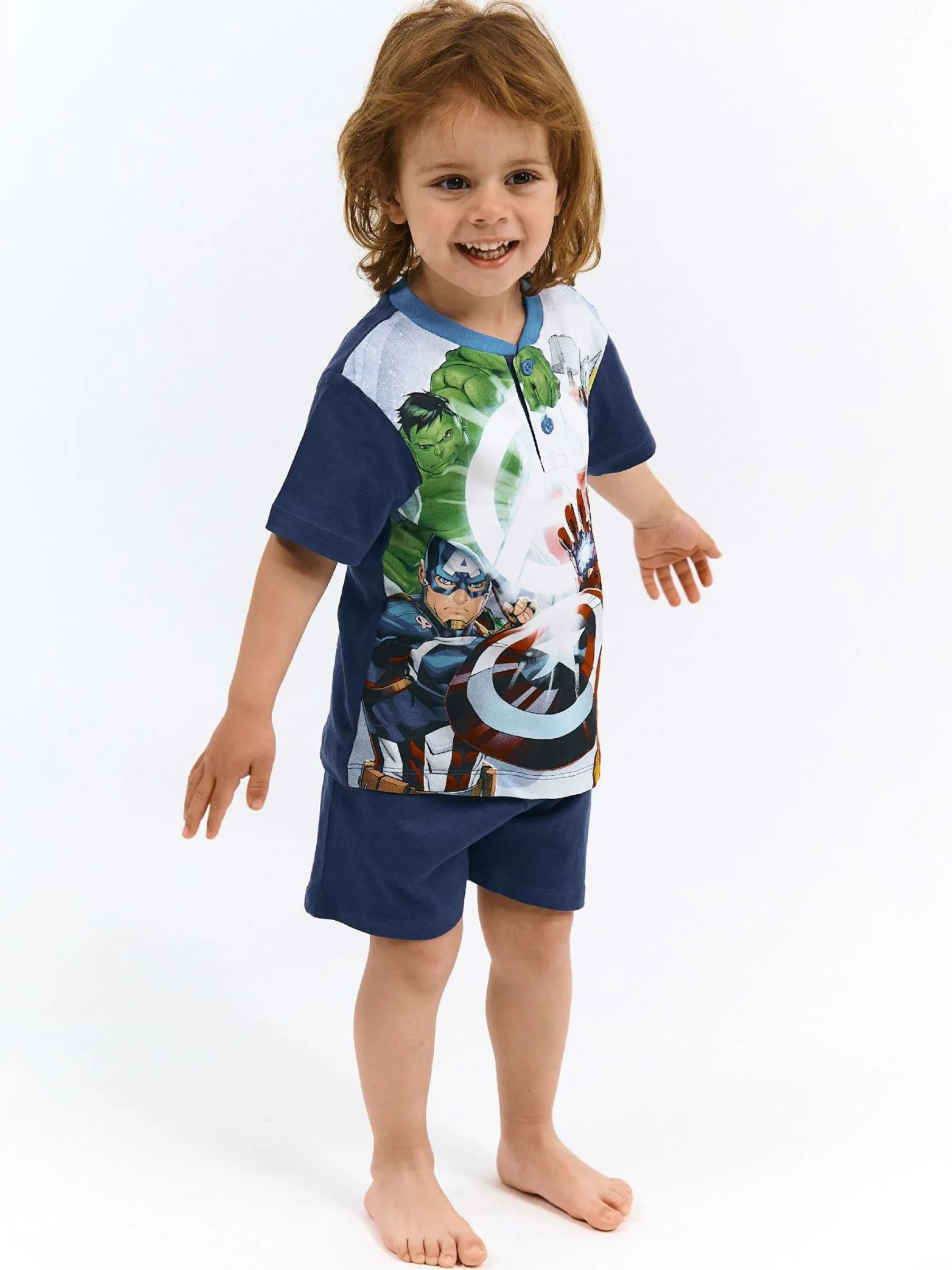 Kolor: granatowyKrój: dwuczęściowyTyp: piżama, koszulkaRekaw: krótki rękawDługość: krótkiPattern style: z nadr…