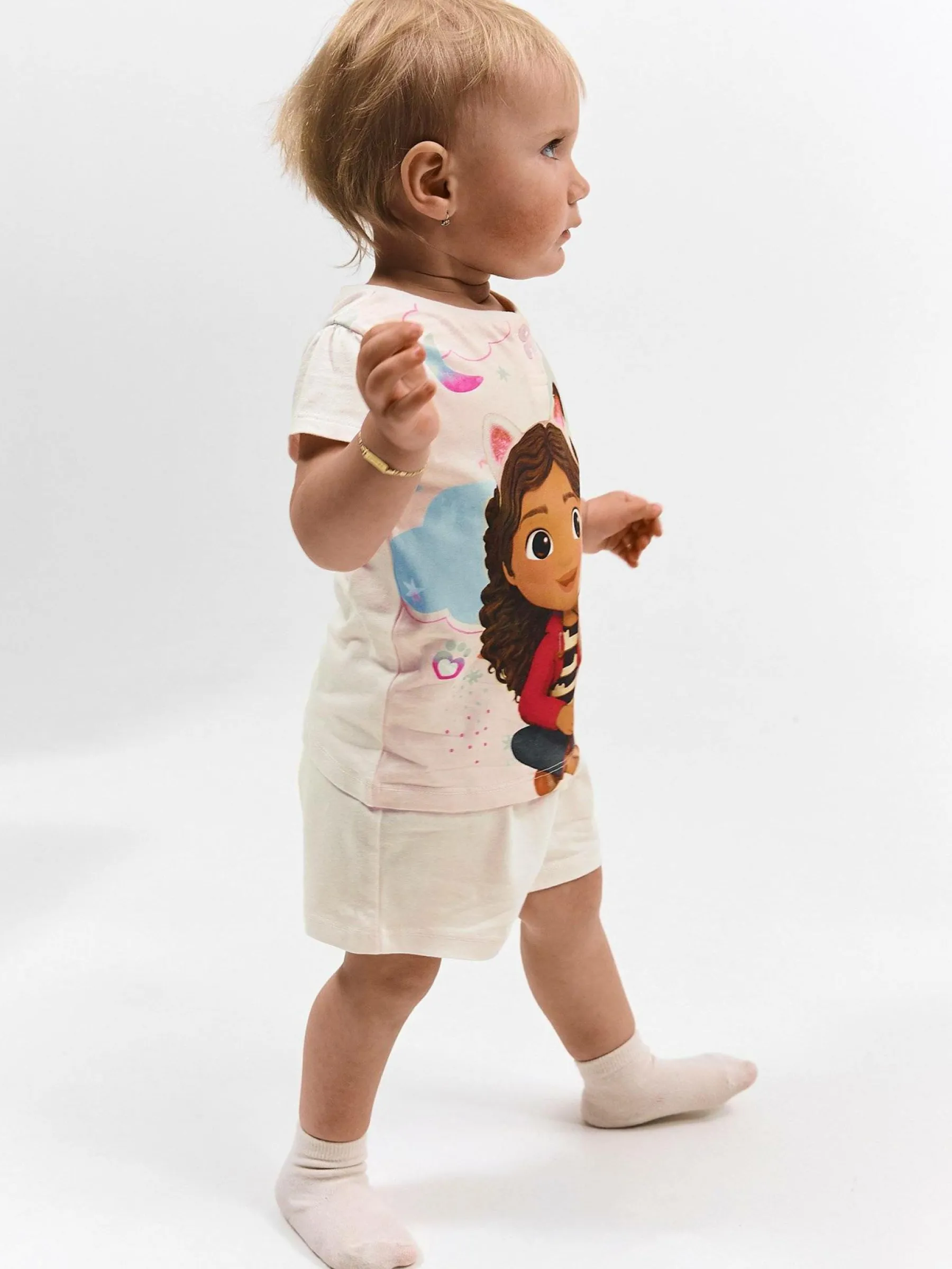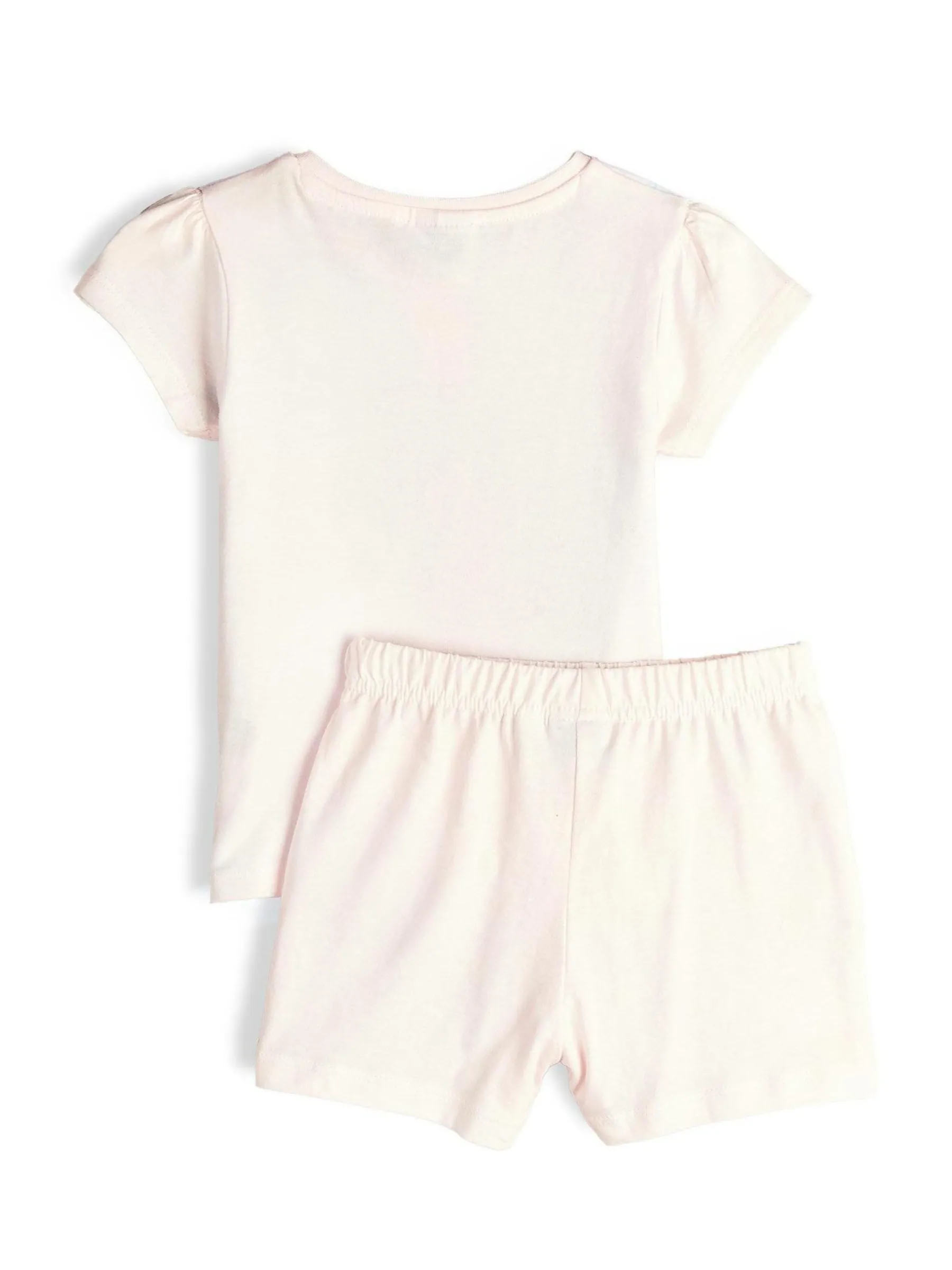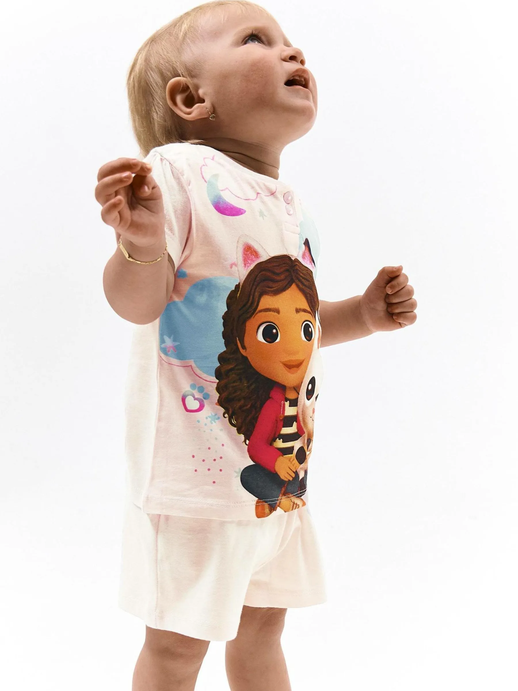 Kolor: różowyKrój: dwuczęściowy, podstawowyTyp: piżama, koszulkaRekaw: krótki rękawDługość: krótkiPattern st…