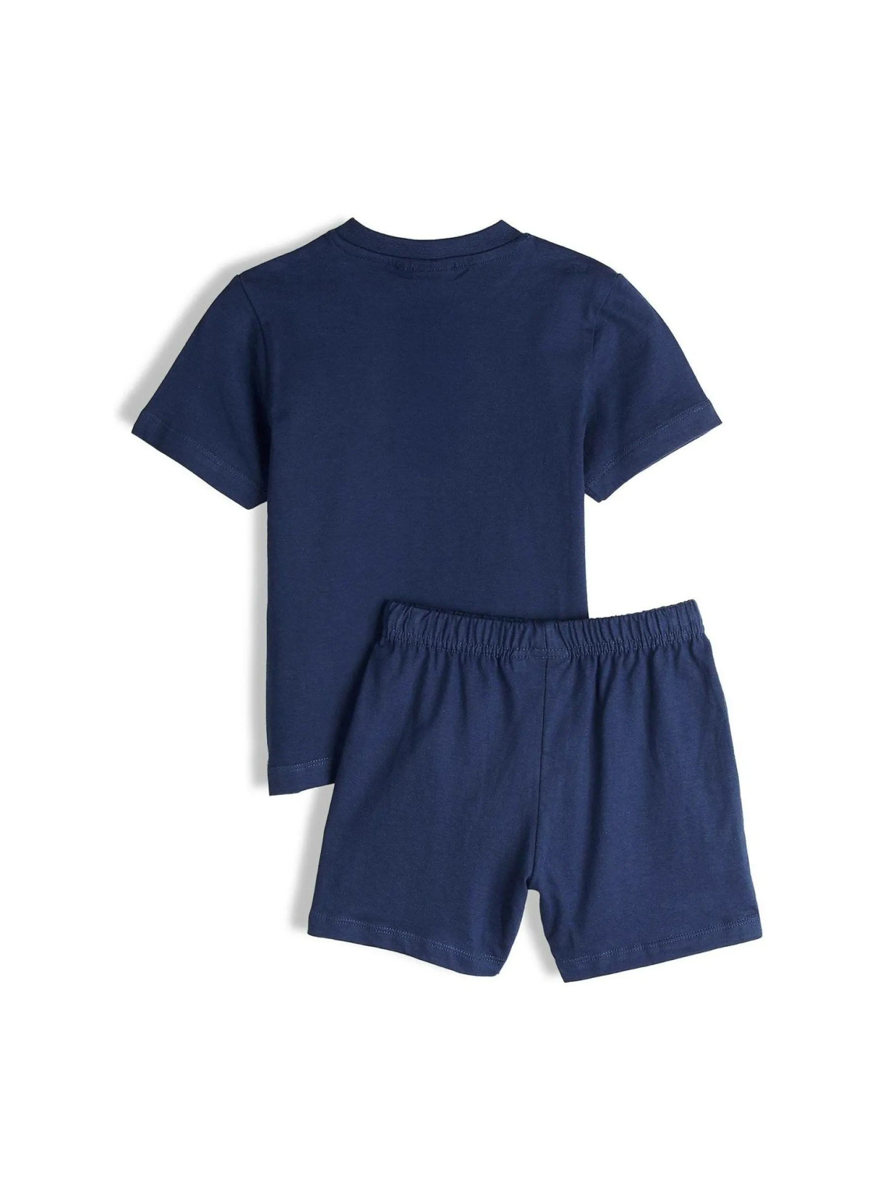 Kolor: granatowyKrój: dwuczęściowyTyp: piżama, koszulkaRekaw: krótki rękawDługość: krótkiPattern style: z nadr…