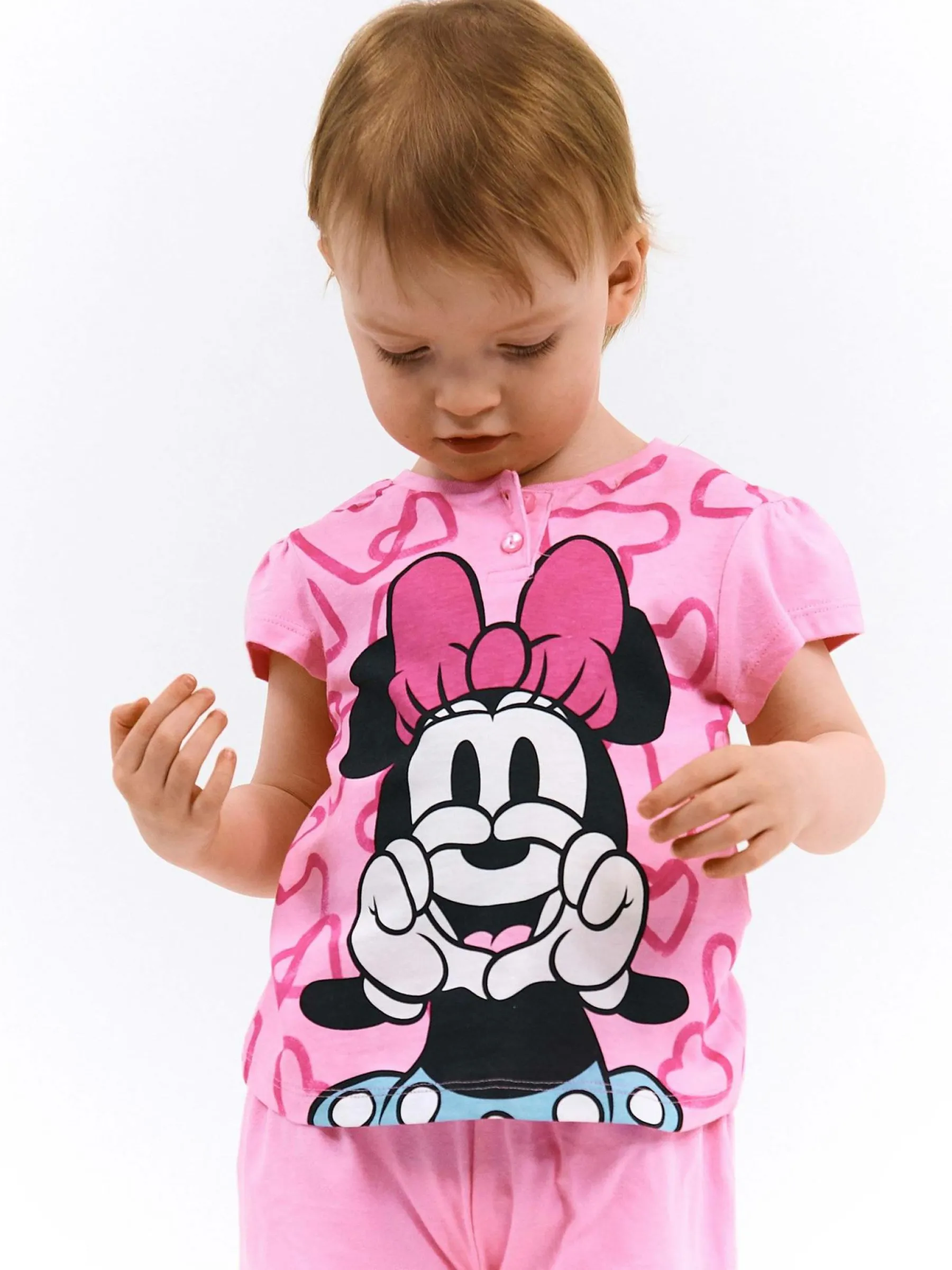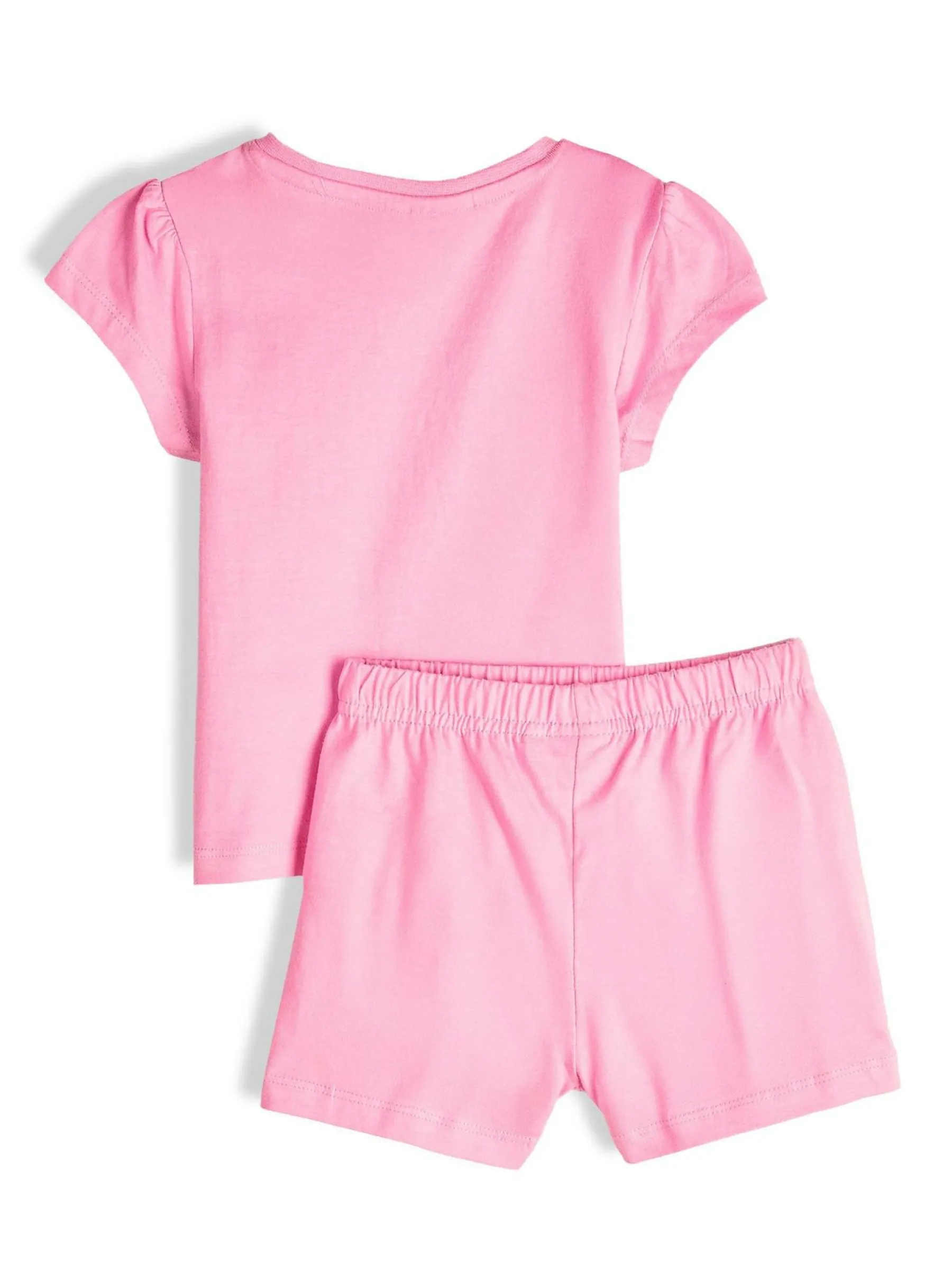Kolor: różowyKrój: dwuczęściowyTyp: piżama, koszulkaRekaw: krótki rękawDługość: krótkiPattern style: z nadru…