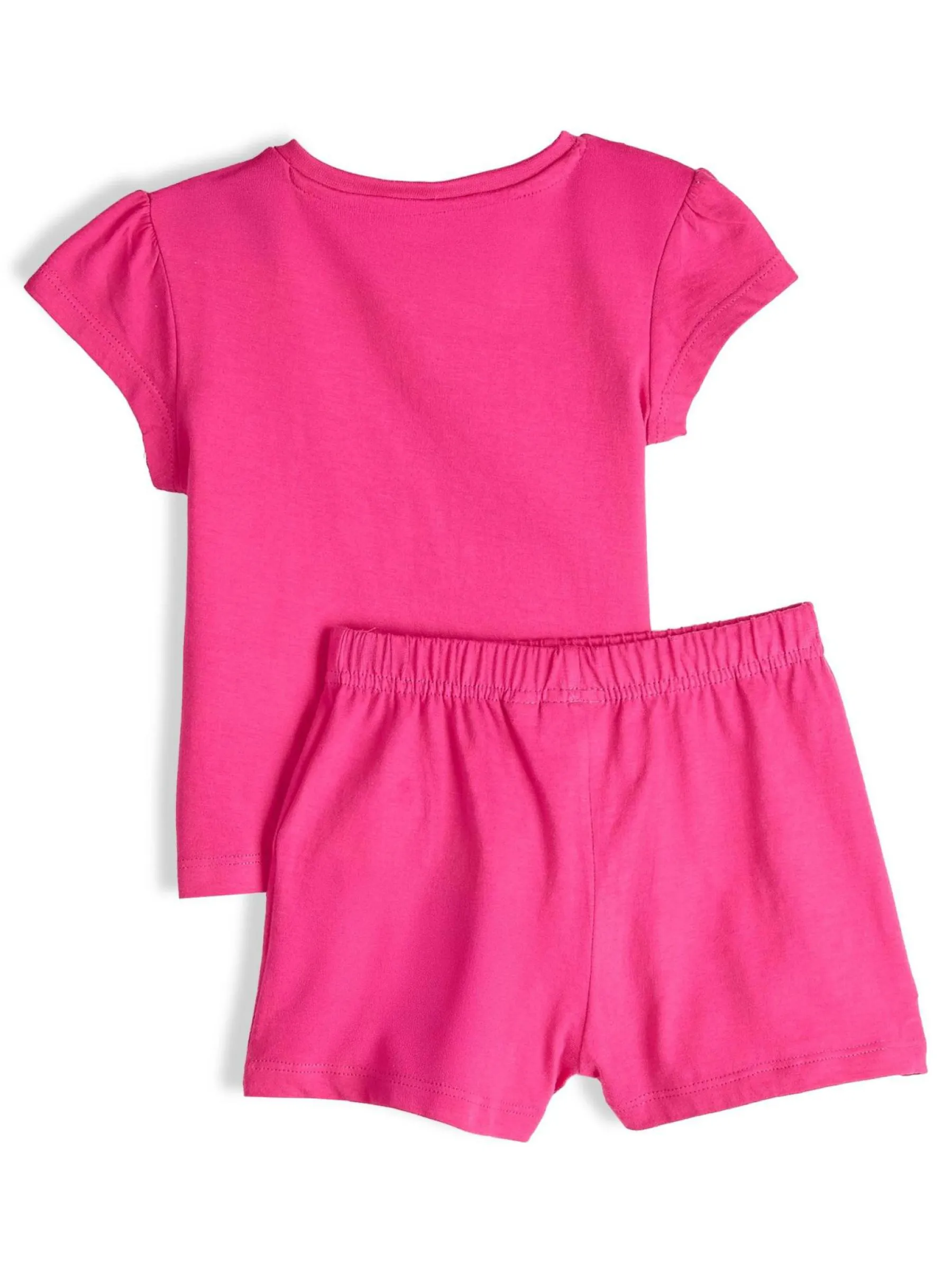 Kolor: różowyKrój: dwuczęściowyTyp: piżama, koszulkaRekaw: krótki rękawDługość: krótkiPattern style: z nadru…