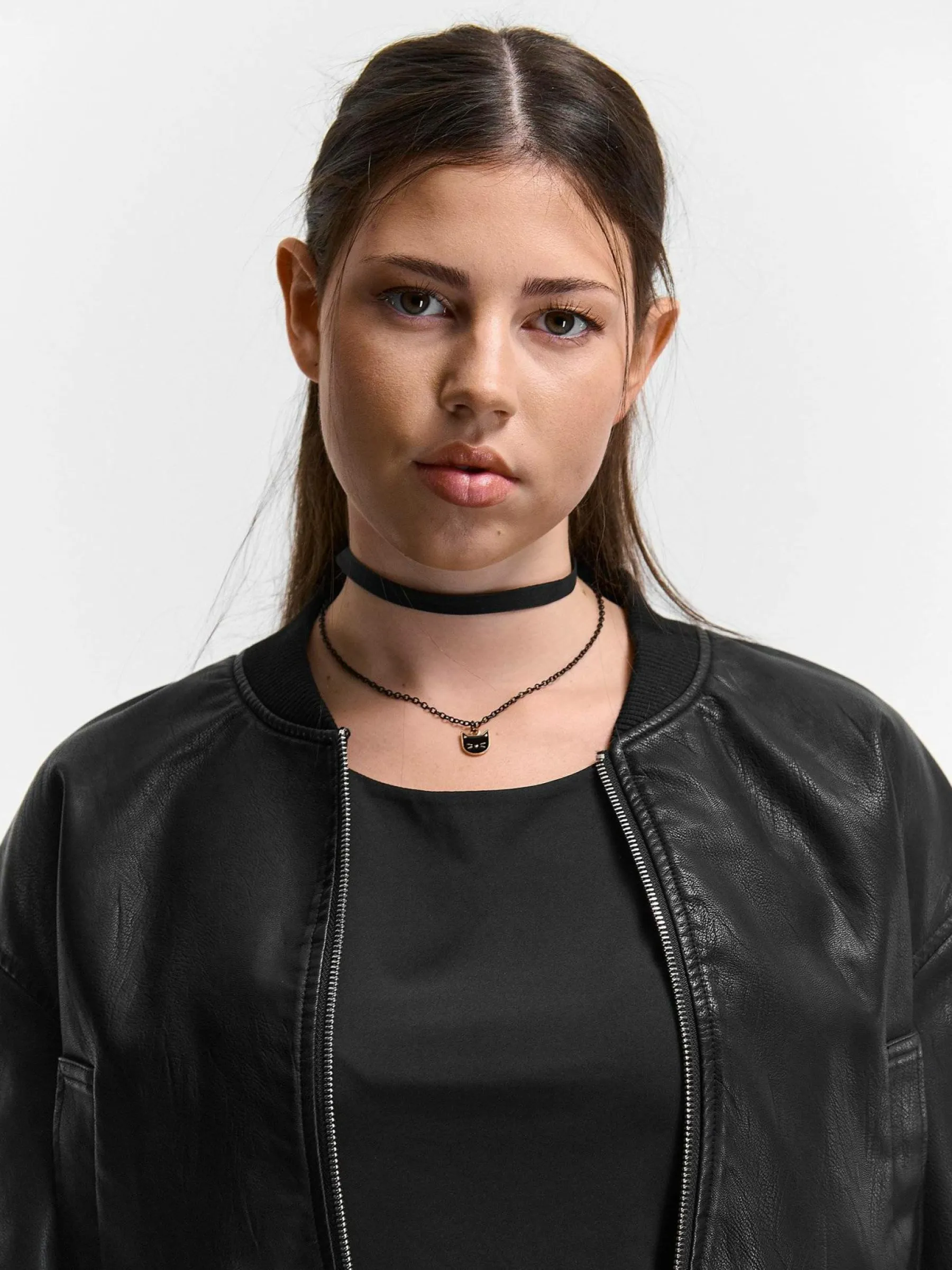 Kolor: czarnyKrój: chokerTyp: naszyjnikPattern style: pojedynczy kolorDetal: z zawieszką, z łańcuchemPłeć: kobiety…