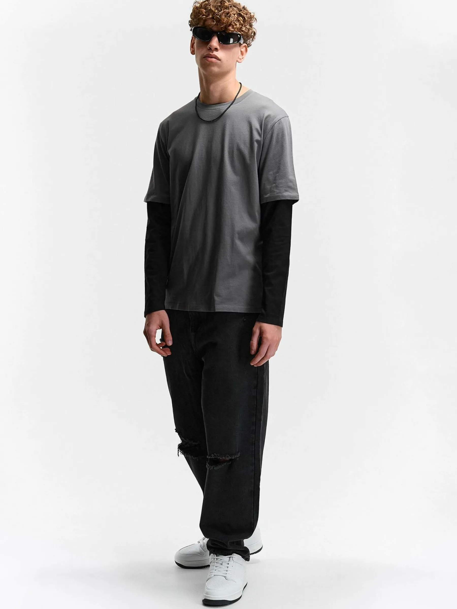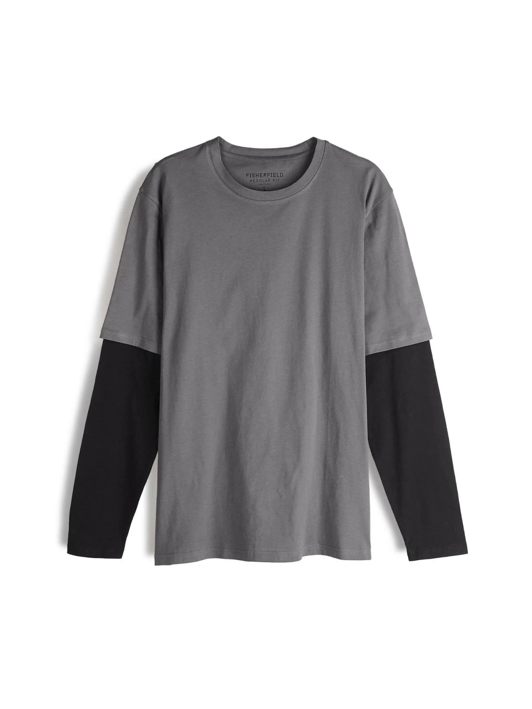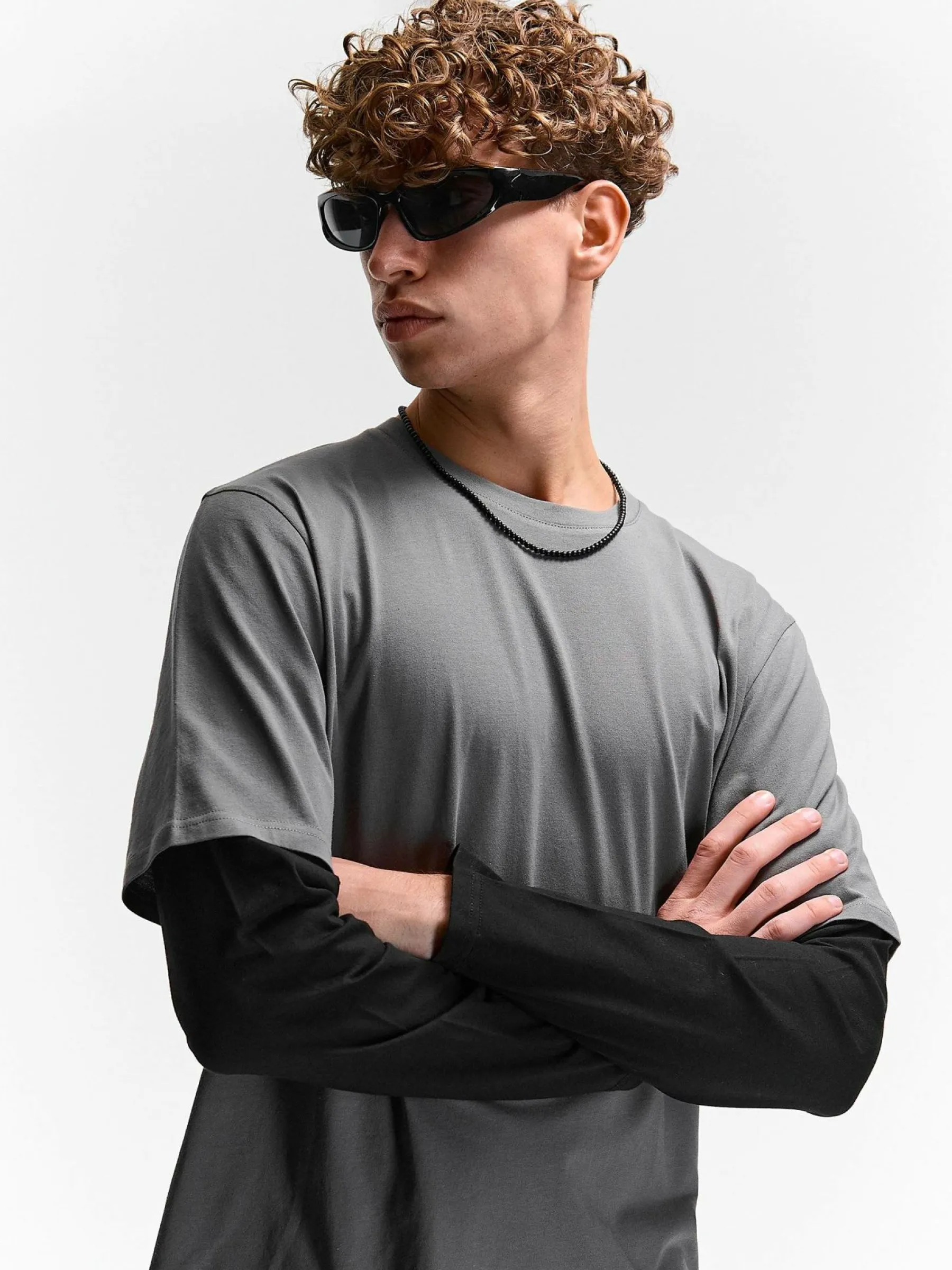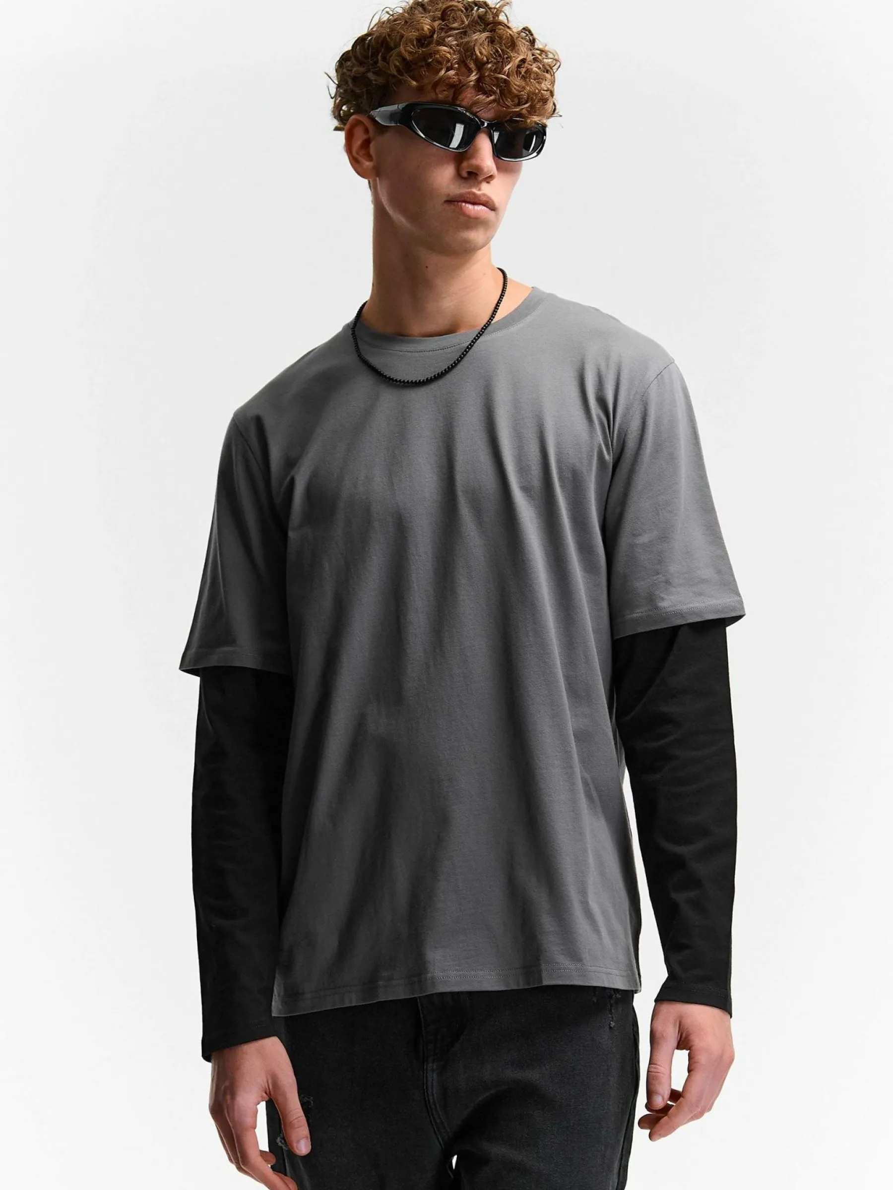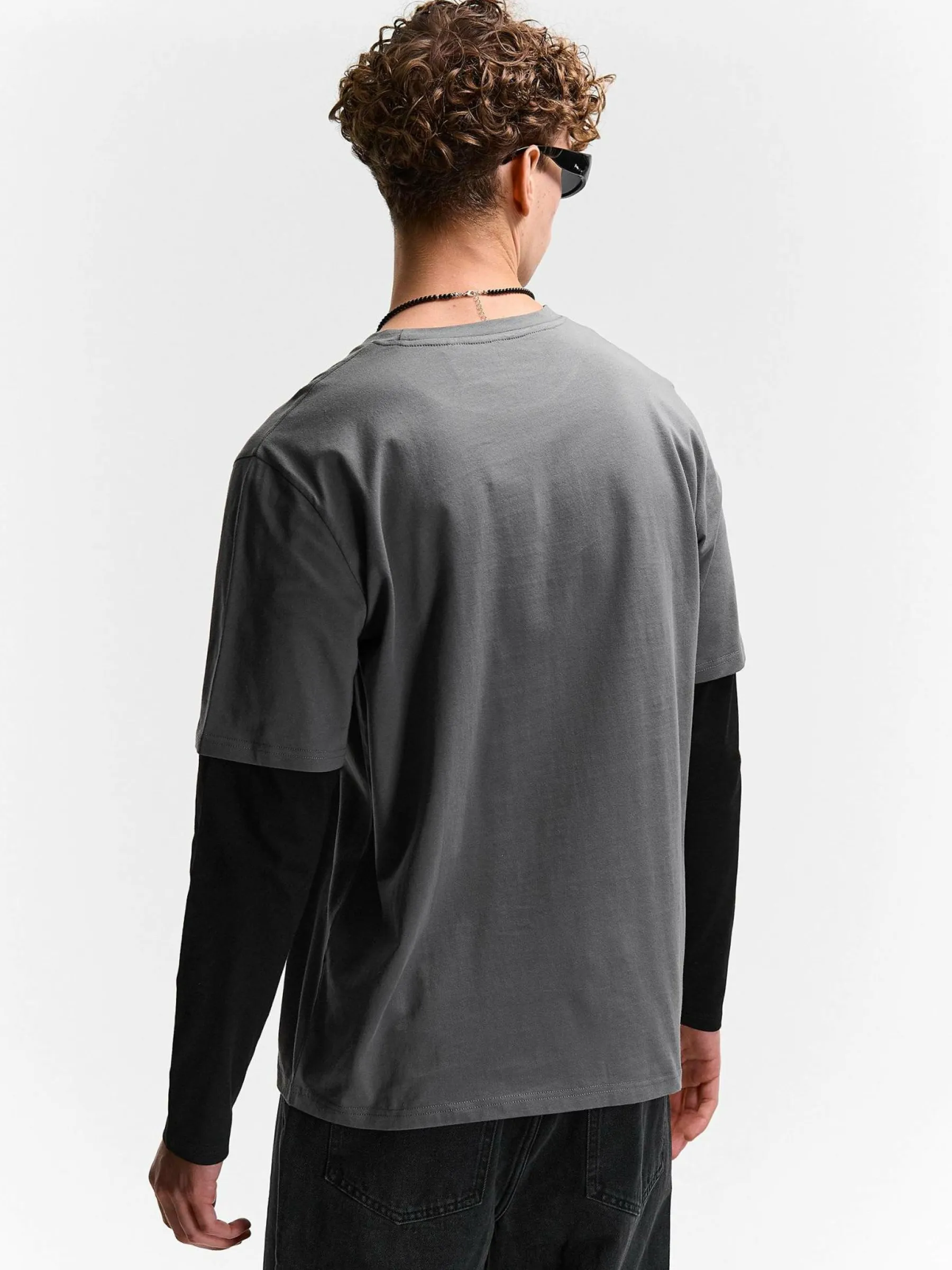 Kolor: szaryKrój: regularTyp: koszulkaRekaw: długi rękawPattern style: colour block, z kontrastowymi rękawamiDetal: …