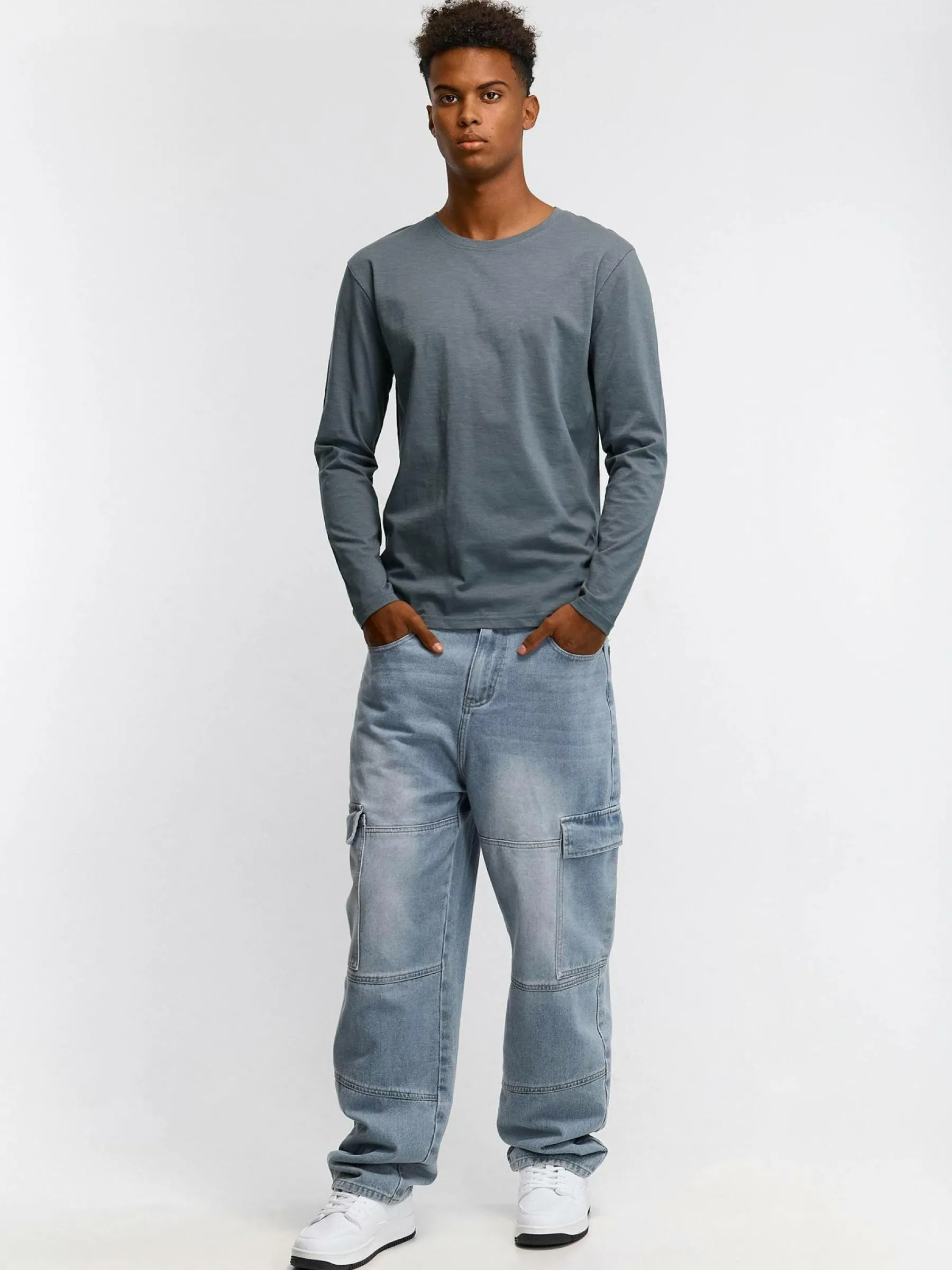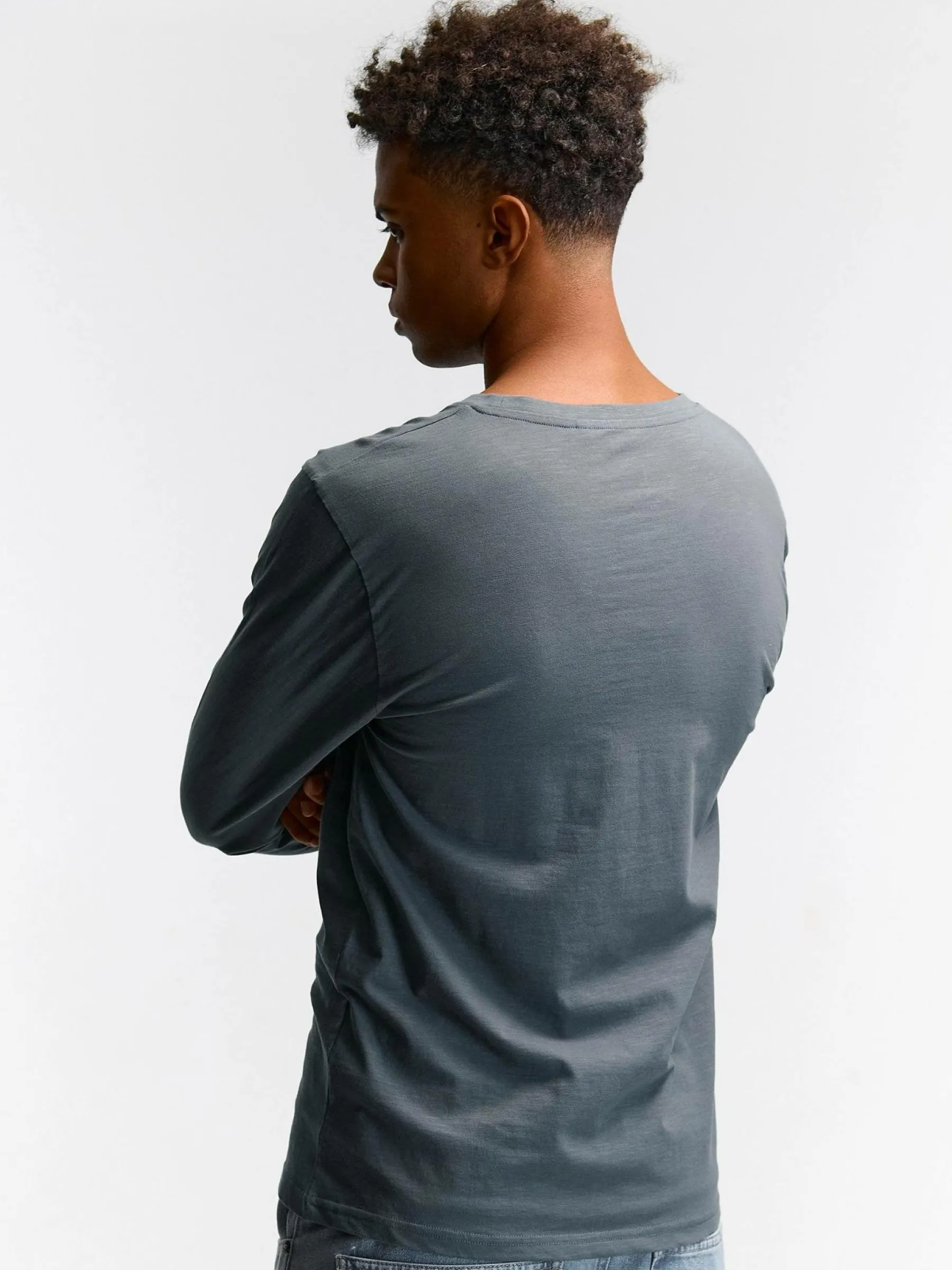 Kolor: szaryKrój: regularTyp: koszulkaRekaw: długi rękawPattern style: pojedynczy kolorDetal: nad głowąMateriał: b…