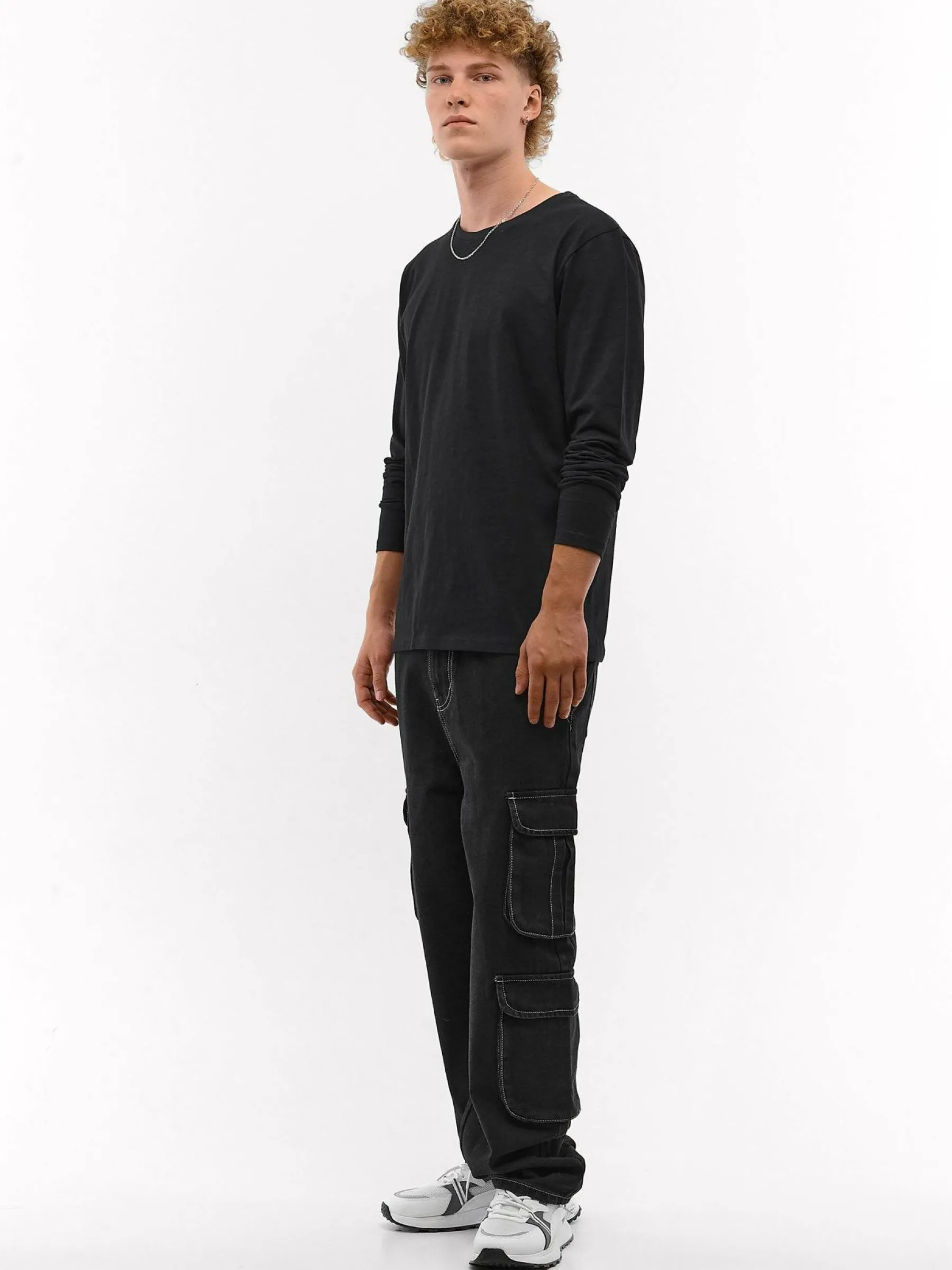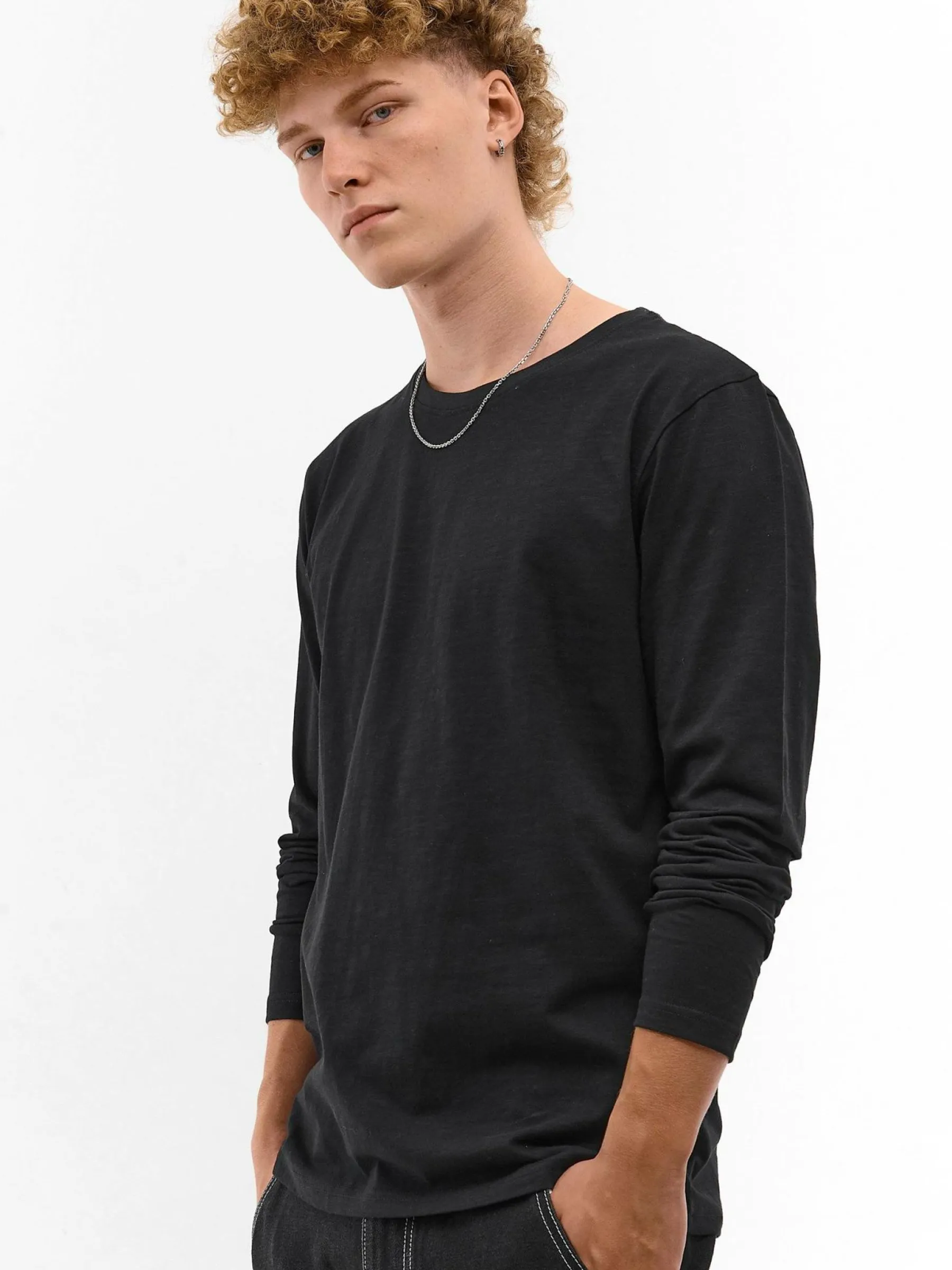 Kolor: czarnyKrój: regularTyp: koszulkaRekaw: długi rękawPattern style: pojedynczy kolorDetal: nad głowąMateriał: …