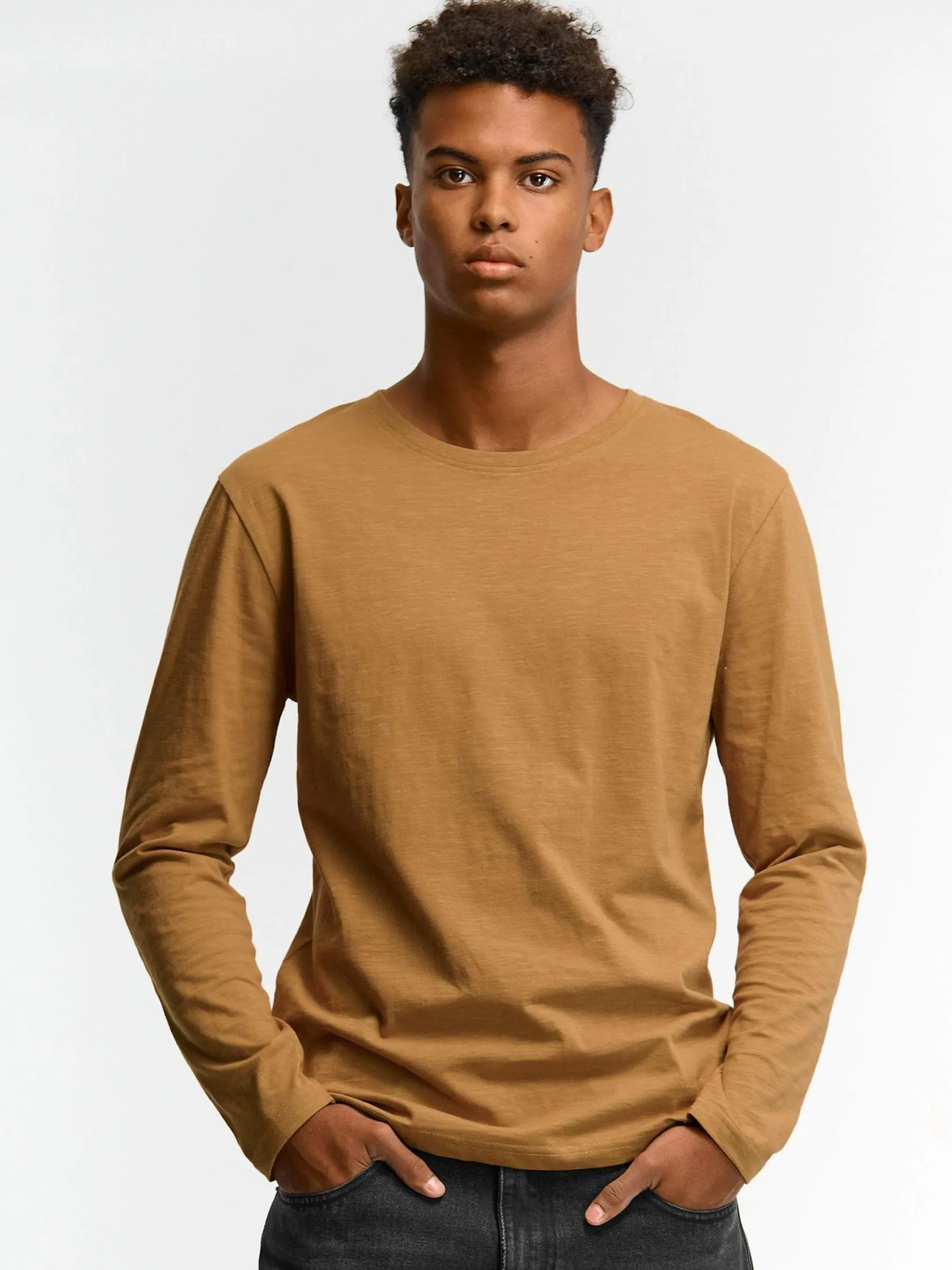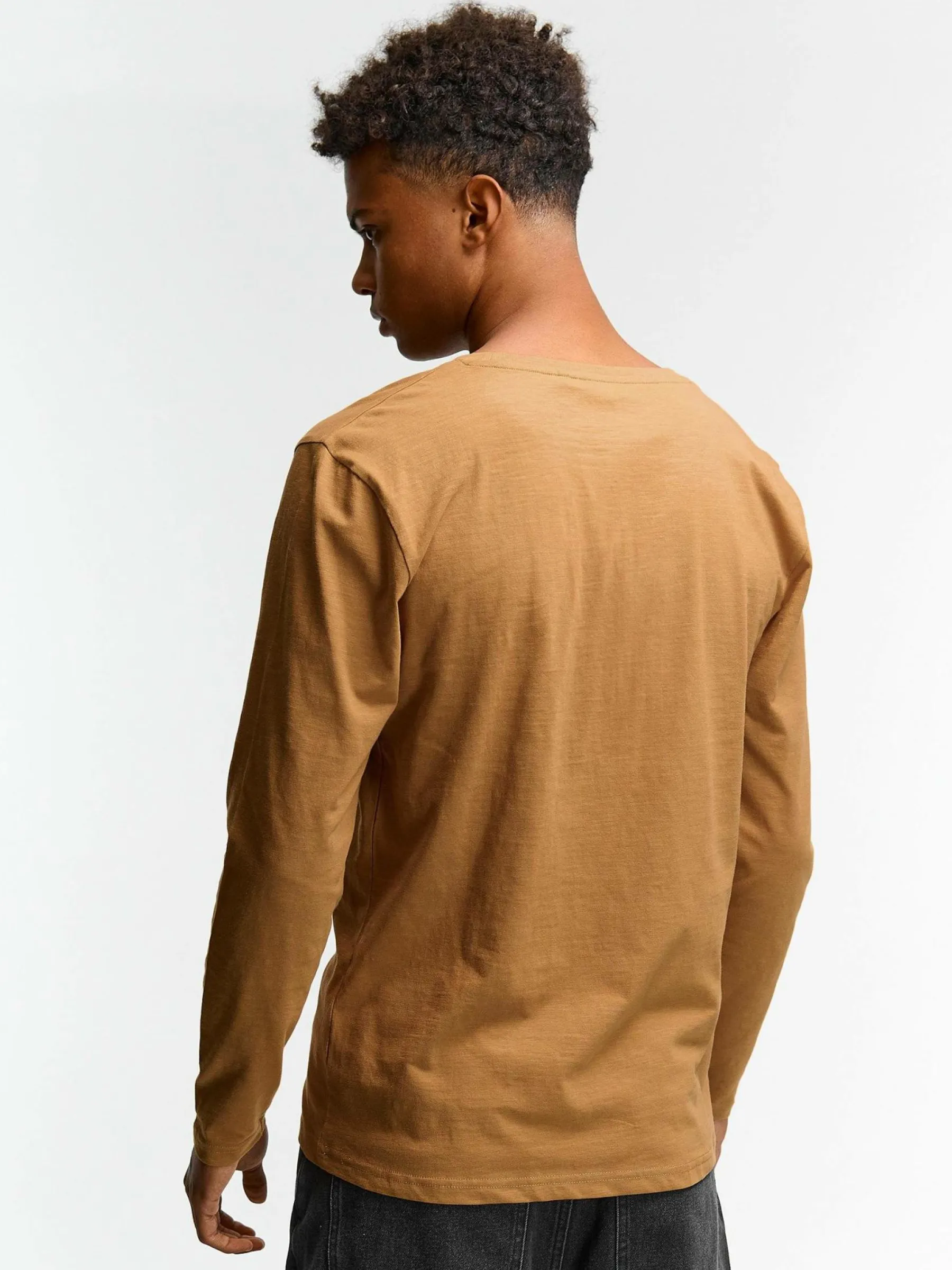 Kolor: brązowyKrój: regularTyp: koszulkaRekaw: długi rękawPattern style: pojedynczy kolorDetal: nad głowąMateriał…