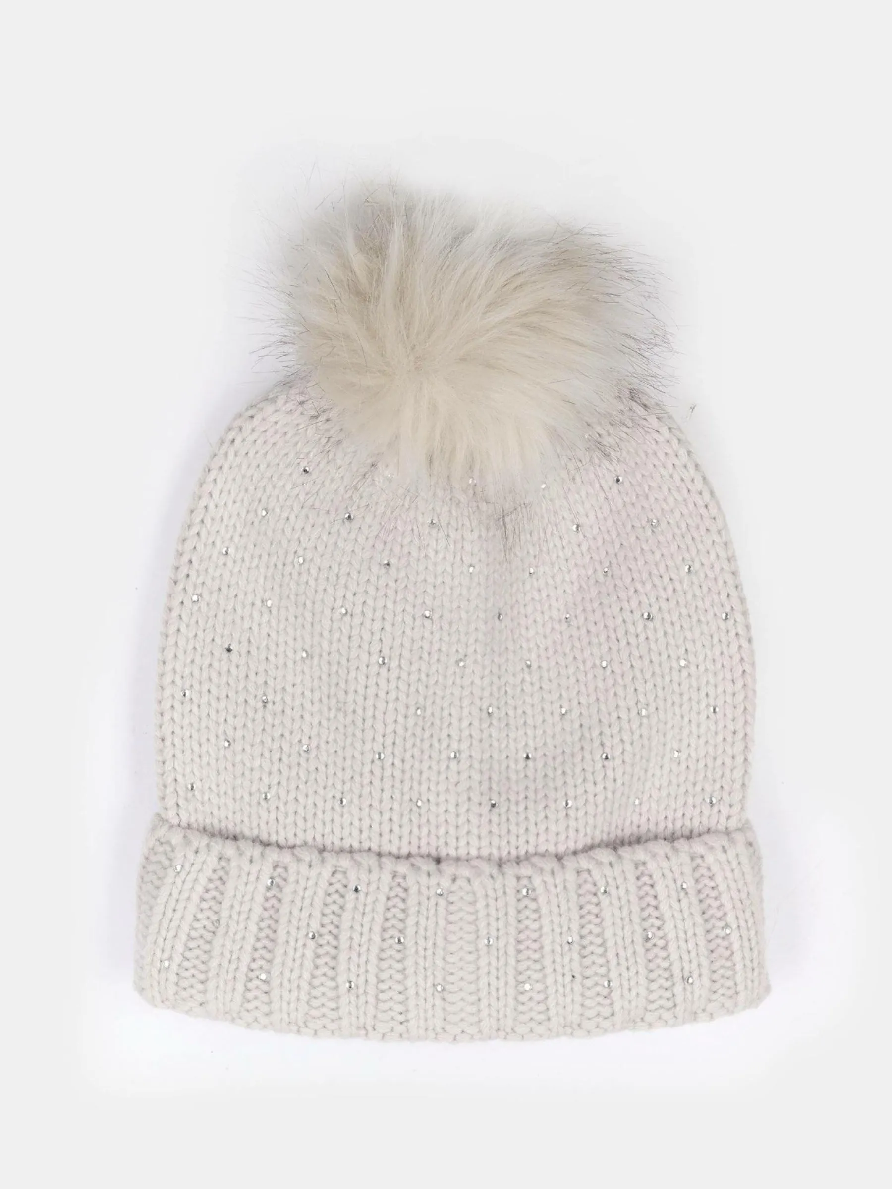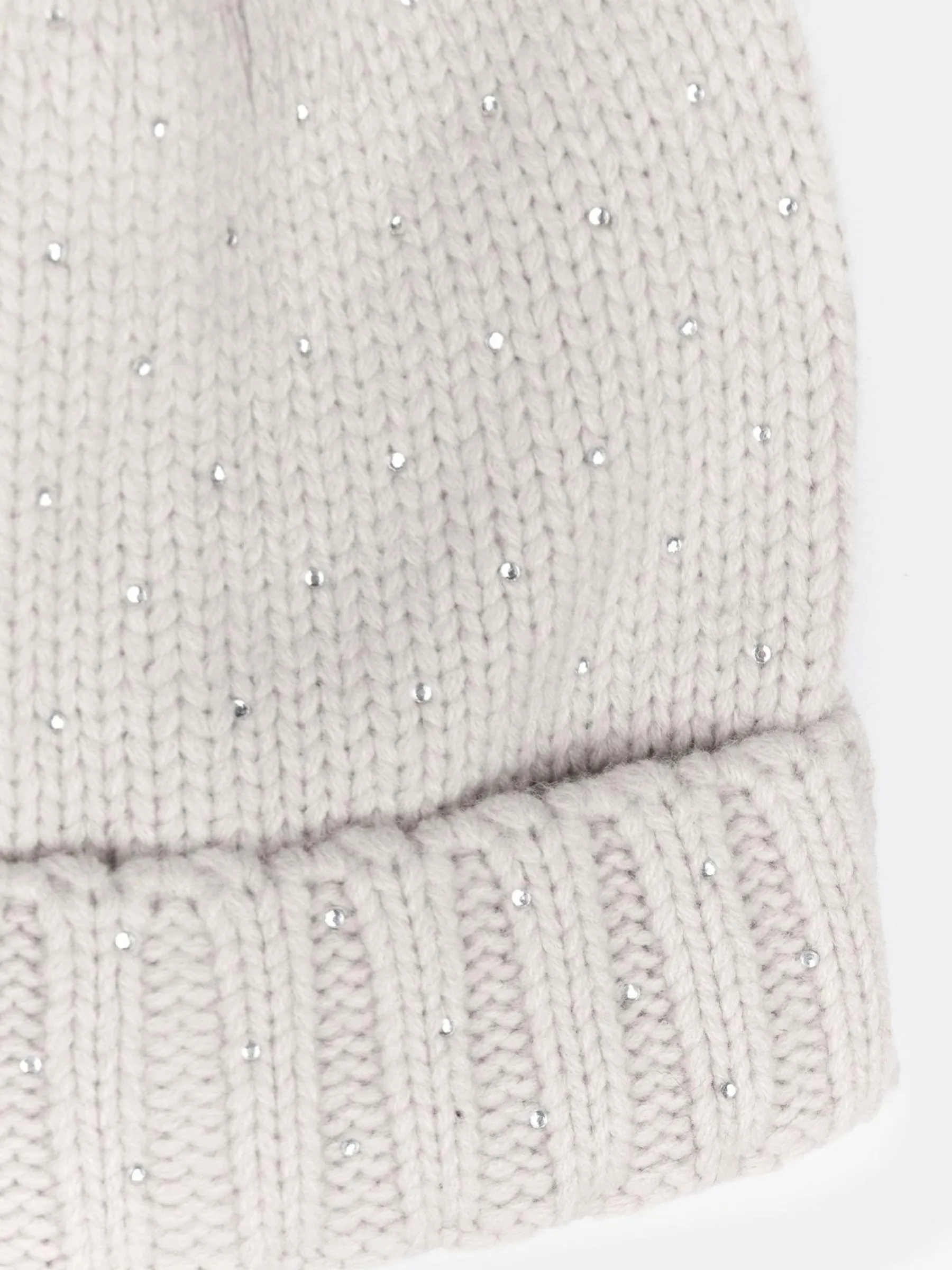 GATE Dzianinowa czapka z pomponem i kryształkami| Akcesoria·Czapki|Kategorie·Czapki ☀️