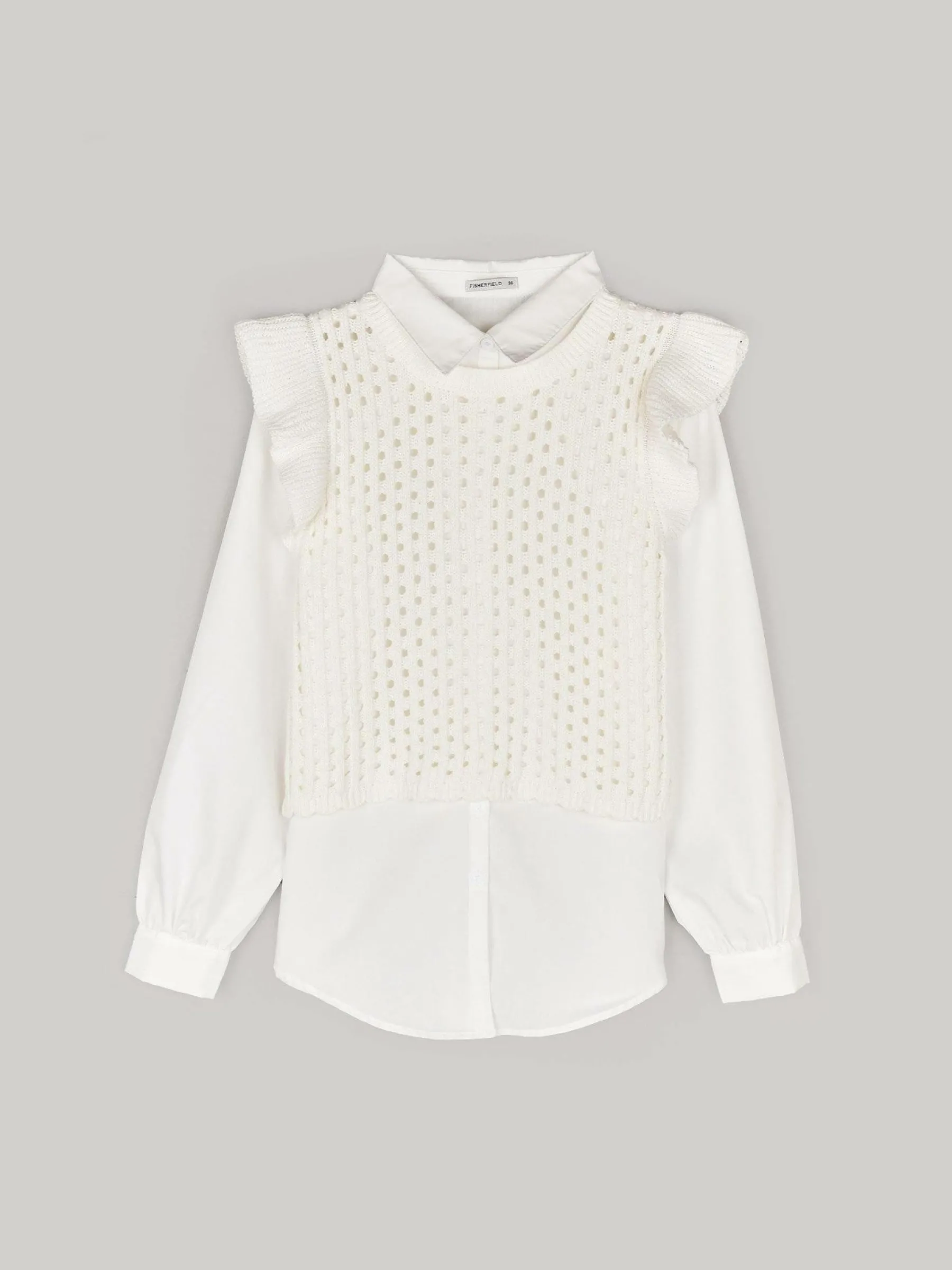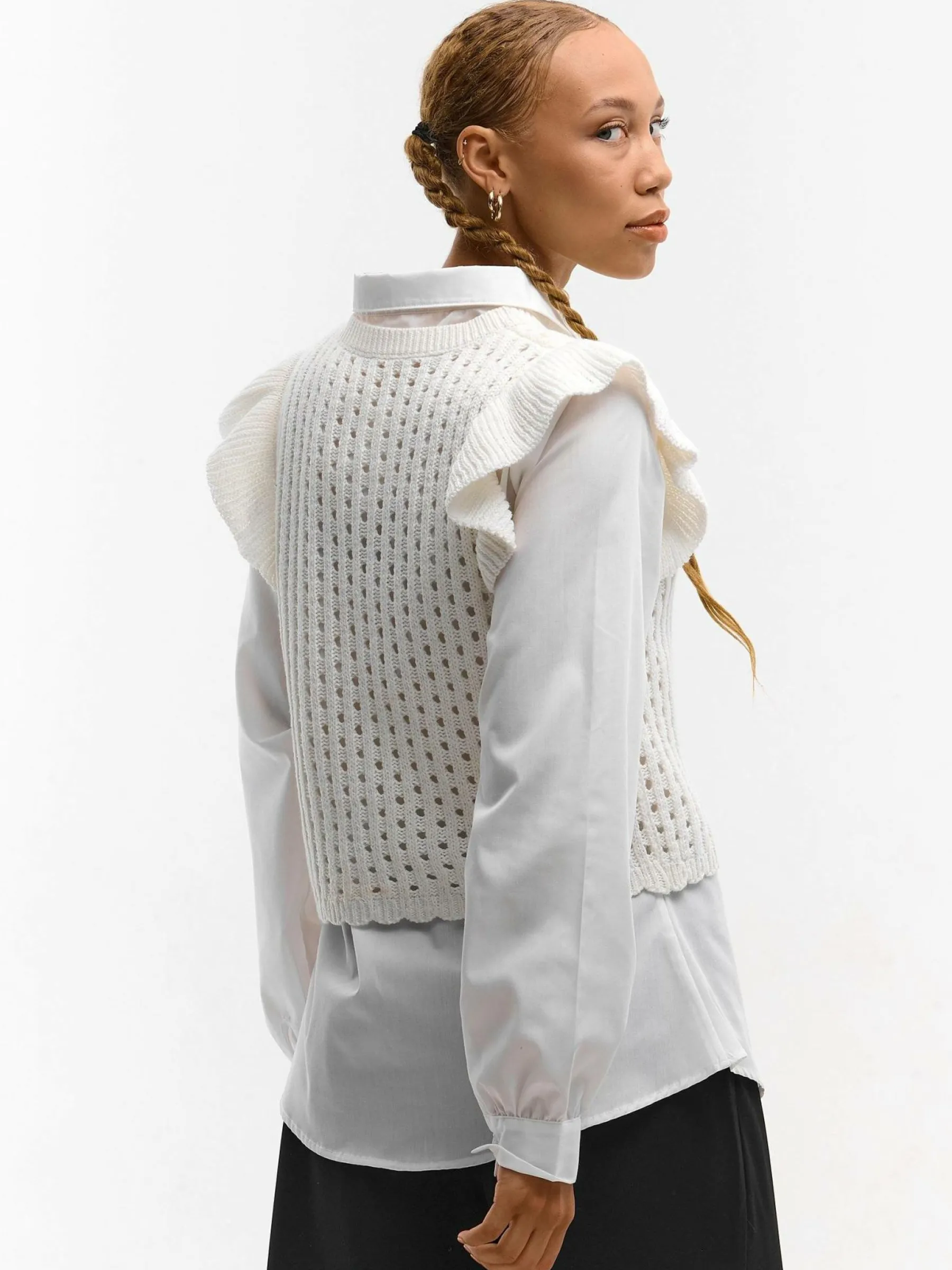 Zdjęcia z modelką mogą nie odpowiadać rzeczywistemu kolorowi produktu.Kolor: białyKrój: z falbanąTyp: kamizelka, …