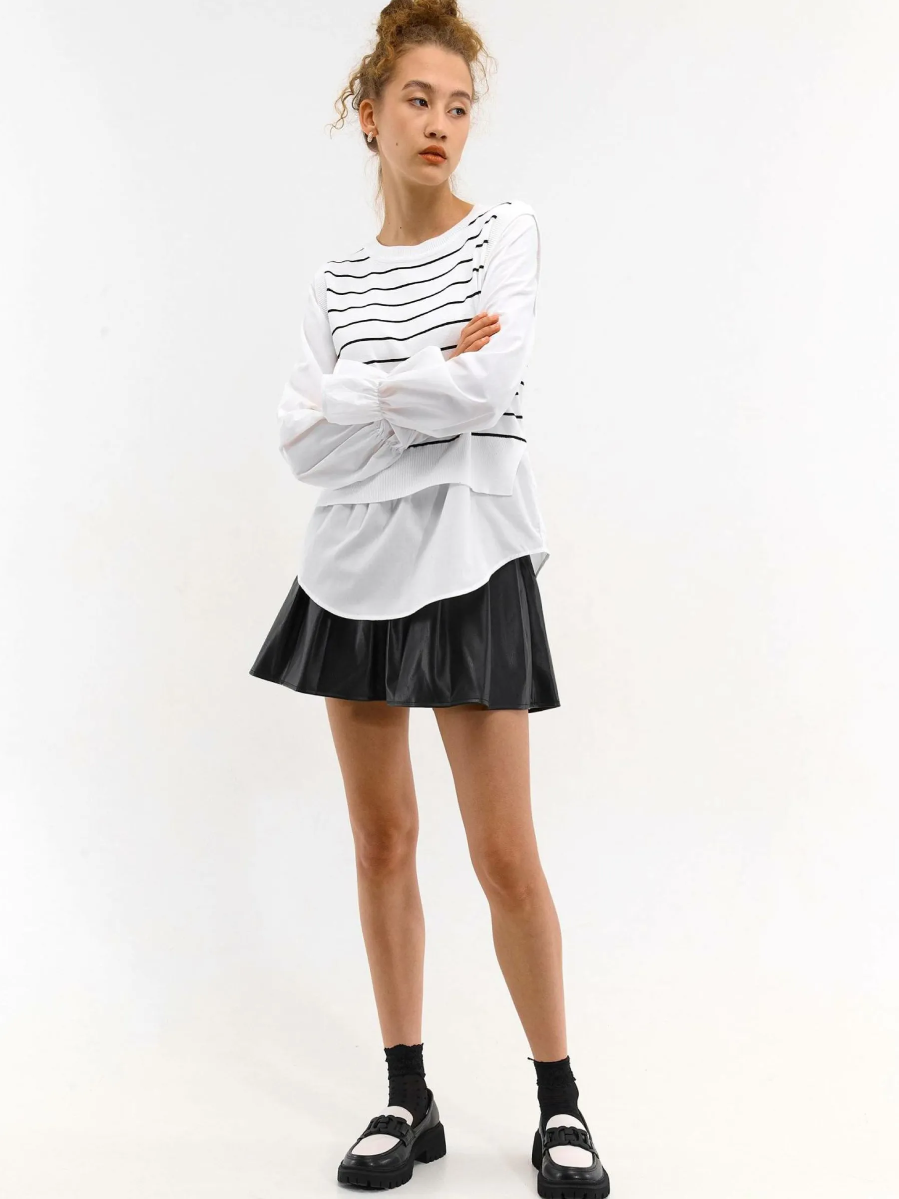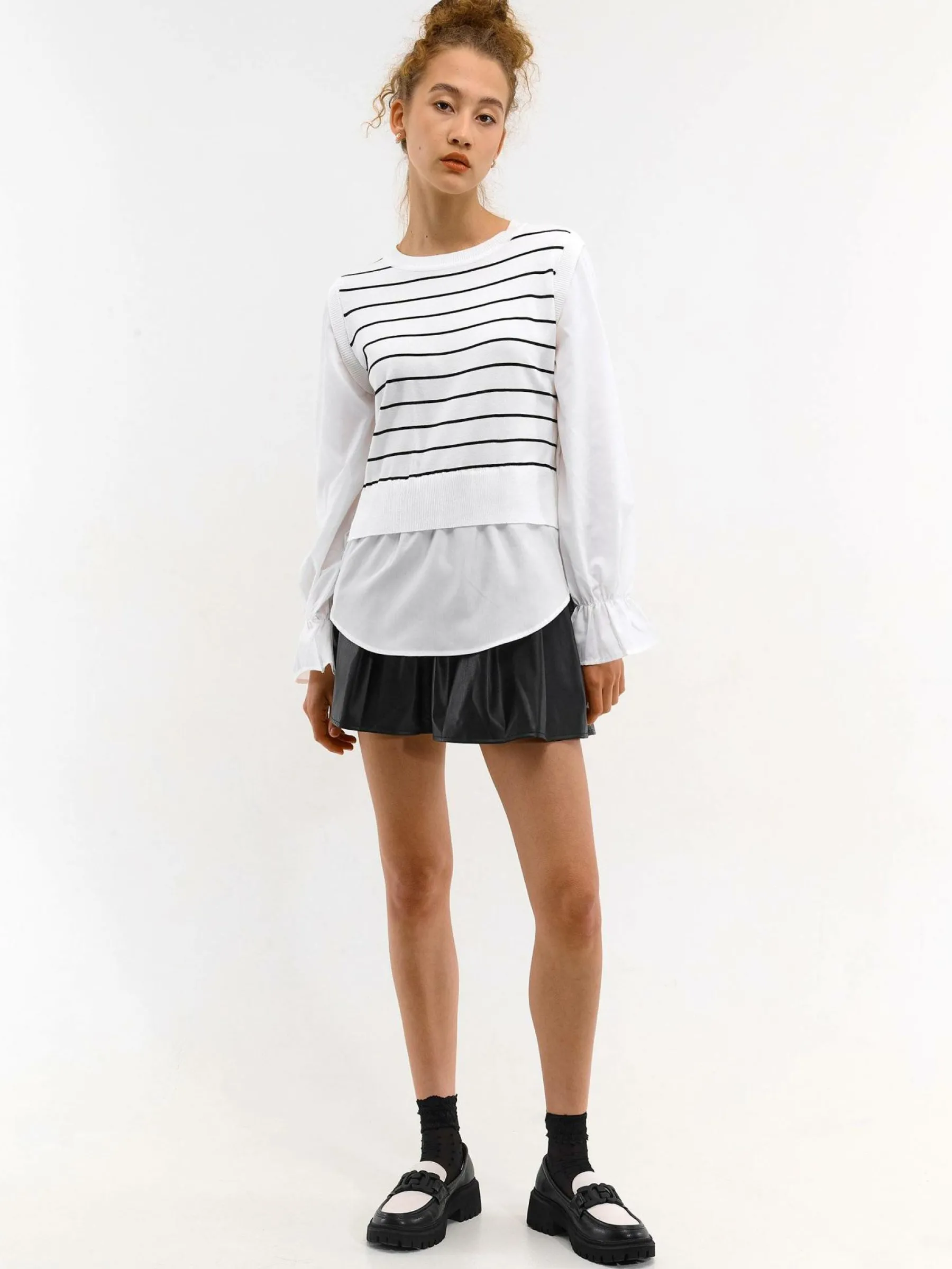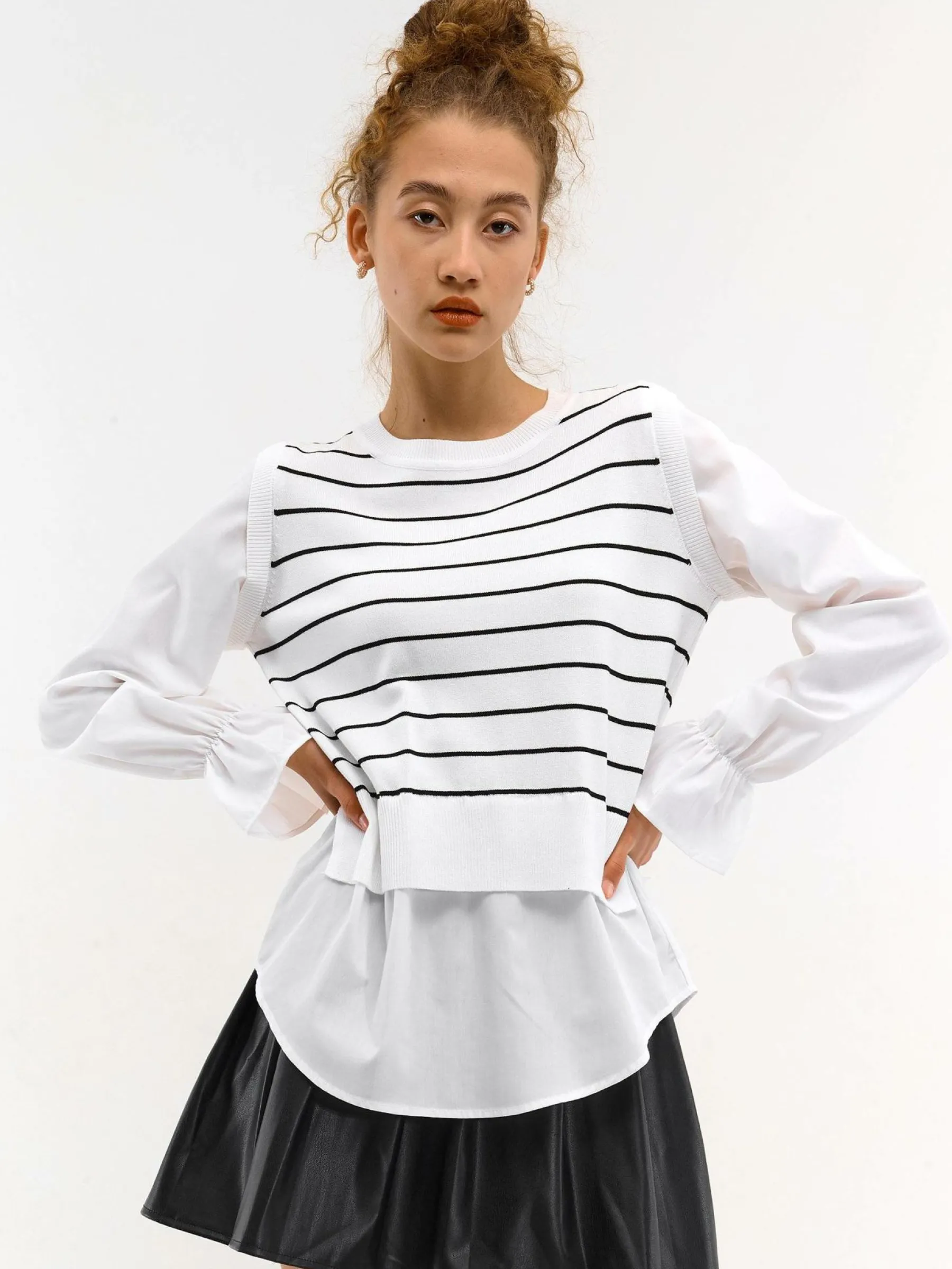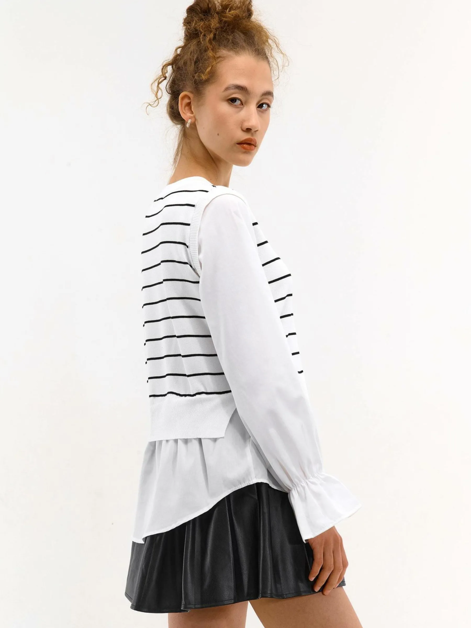 Kolor: białyKrój: asymetryczneTyp: kamizelkaRekaw: długi rękawDługość: krótkiPattern style: w prążkiDetal: nad…