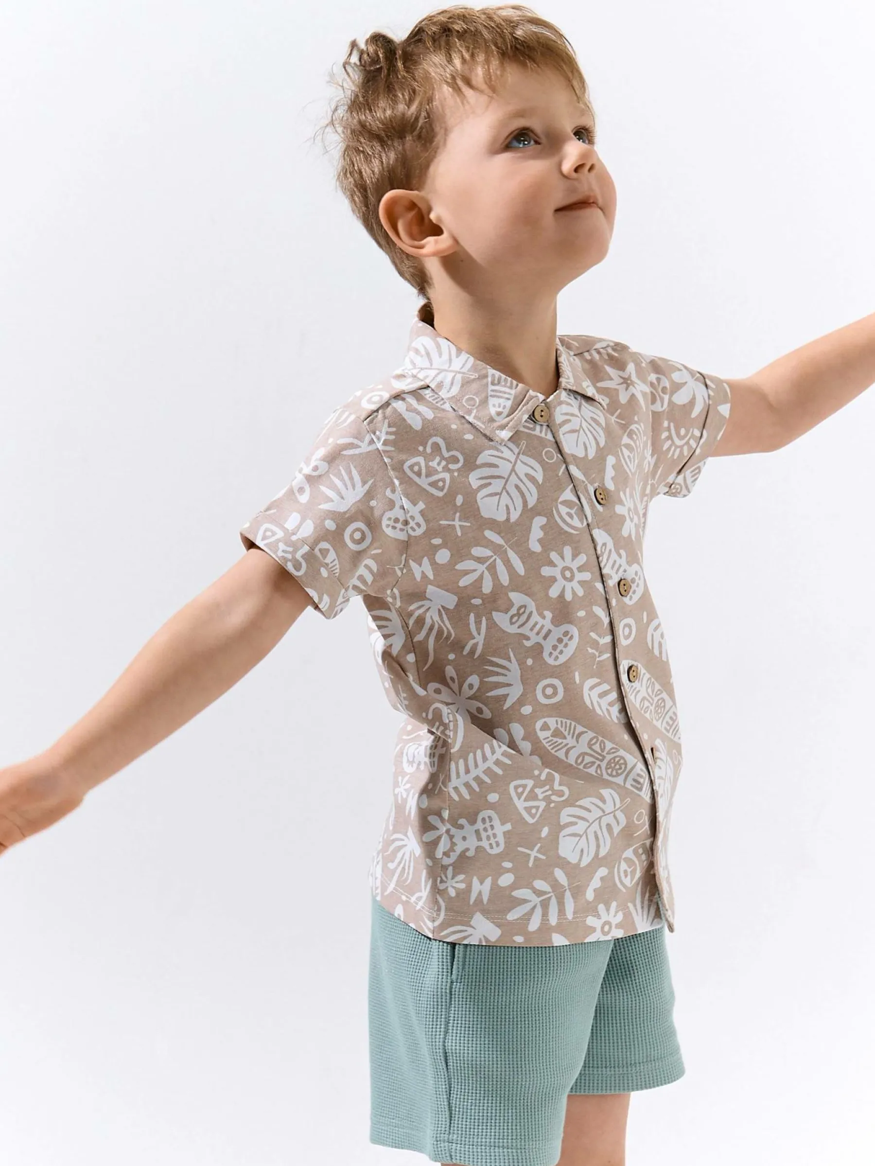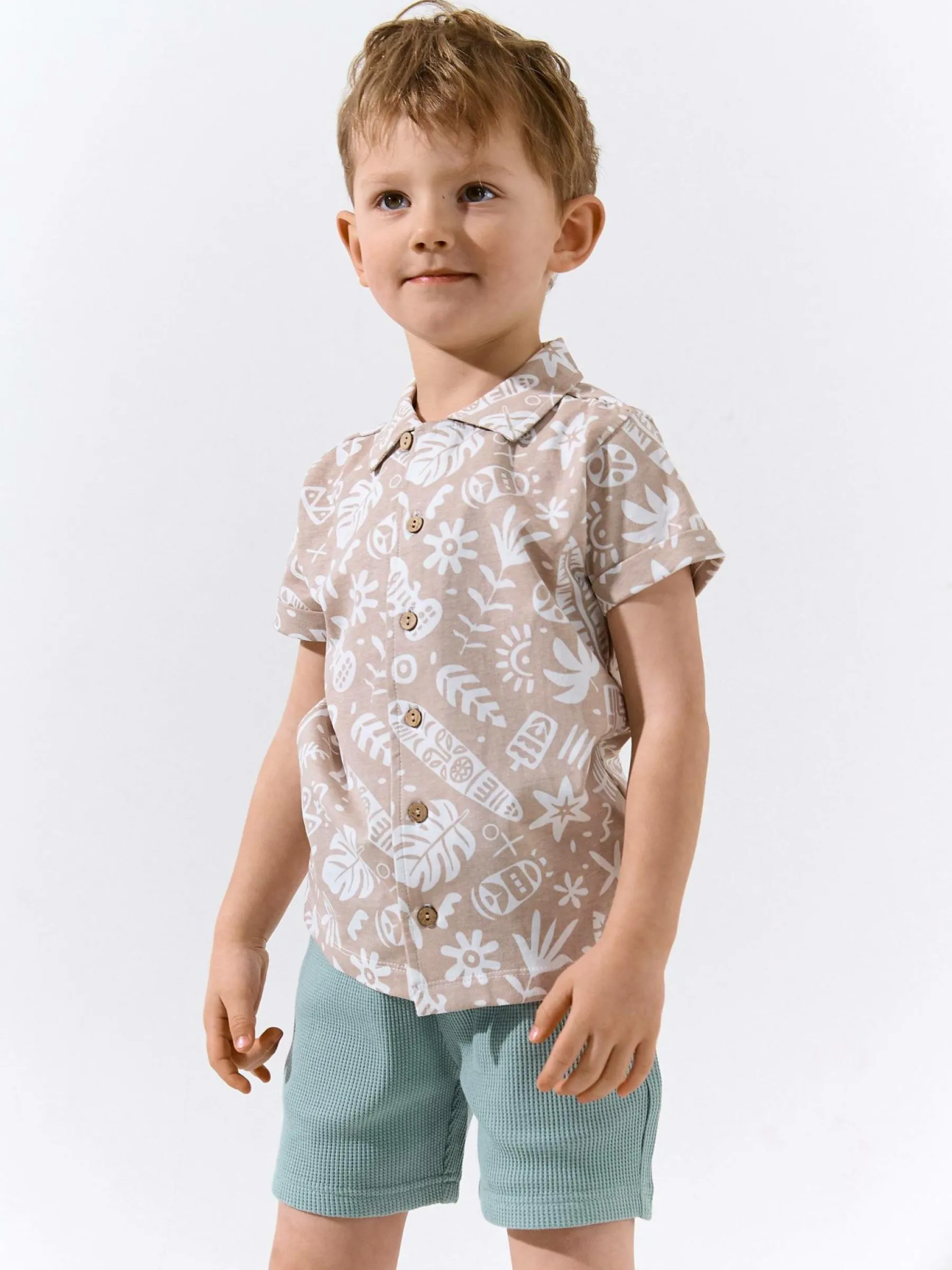Kolor: białyKrój: podstawowyTyp: koszulaRekaw: krótki rękawDługość: krótkiPattern style: wzorzysteDetal: na guzi…