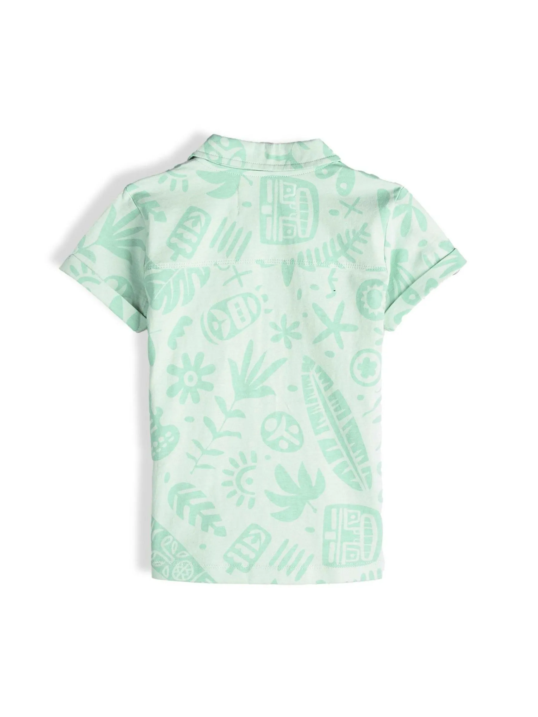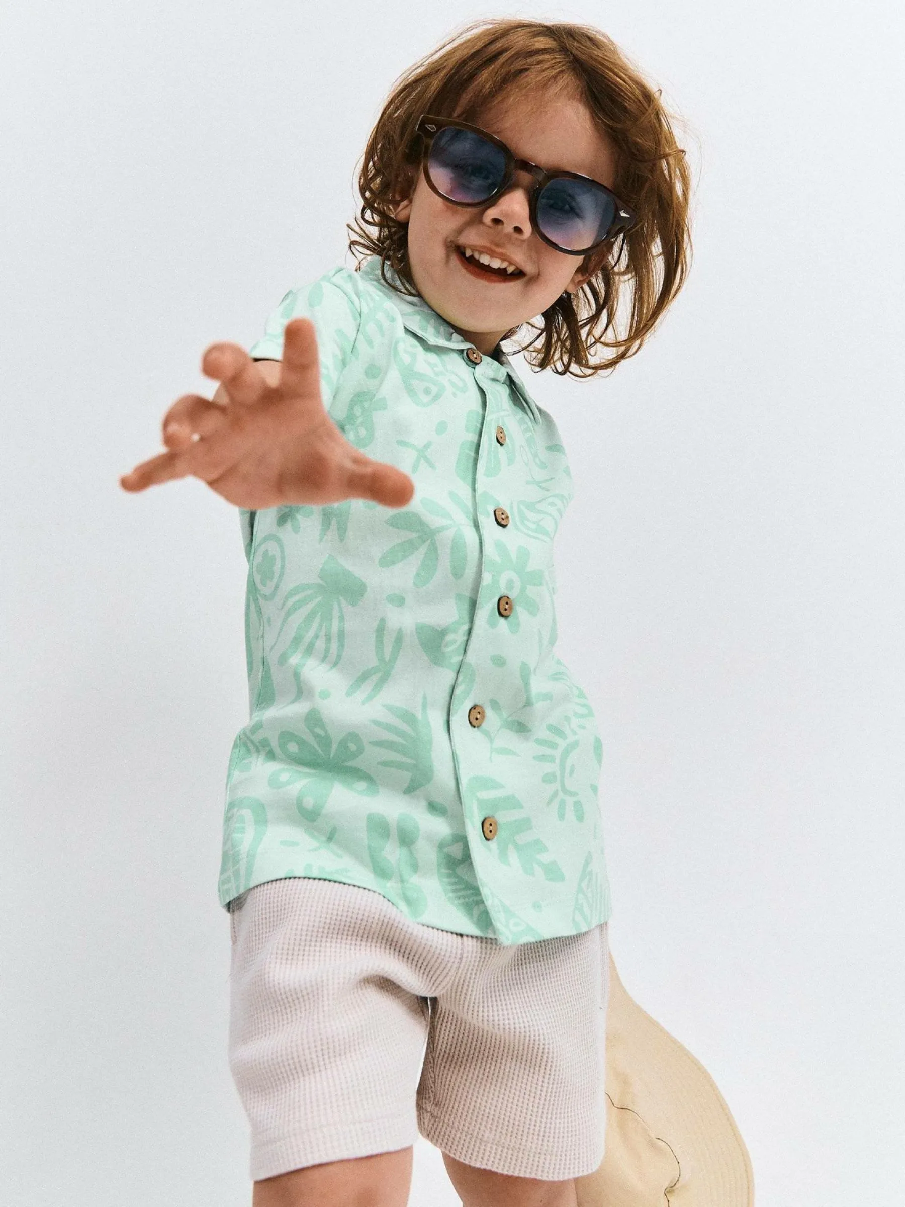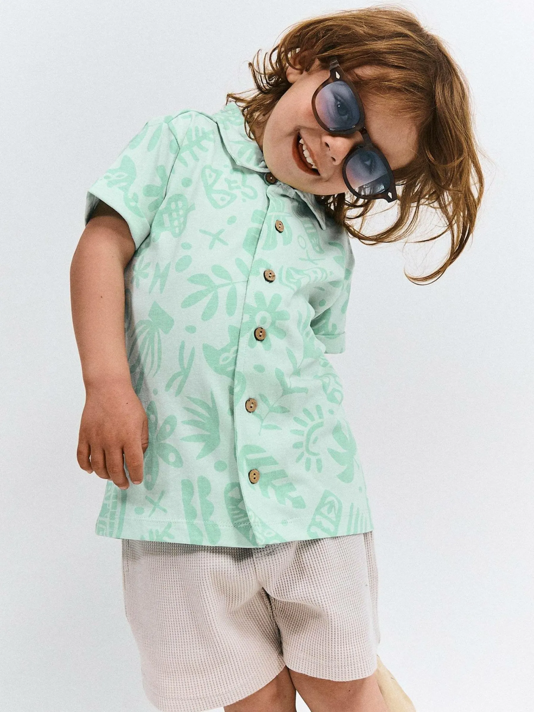 Kolor: zielonyKrój: podstawowyTyp: koszulaRekaw: krótki rękawDługość: krótkiPattern style: wzorzysteDetal: na guz…