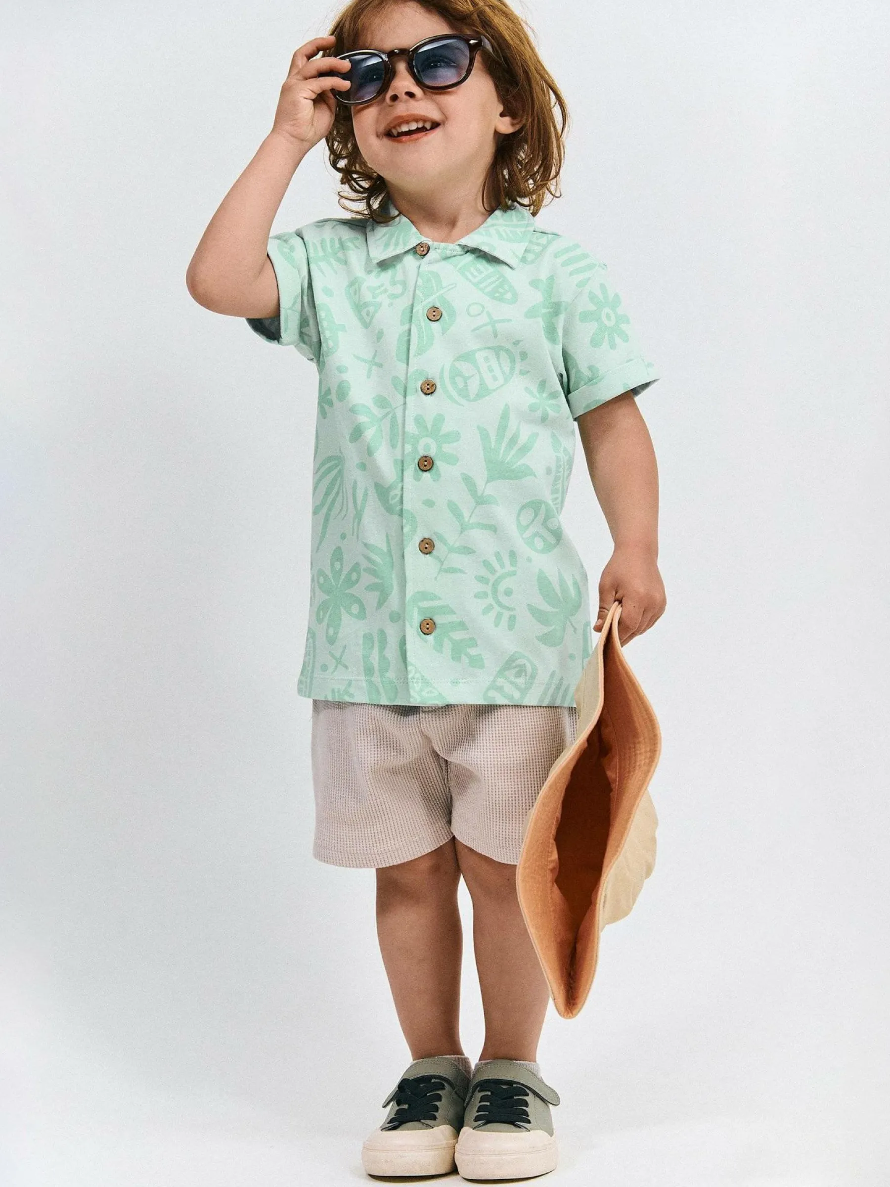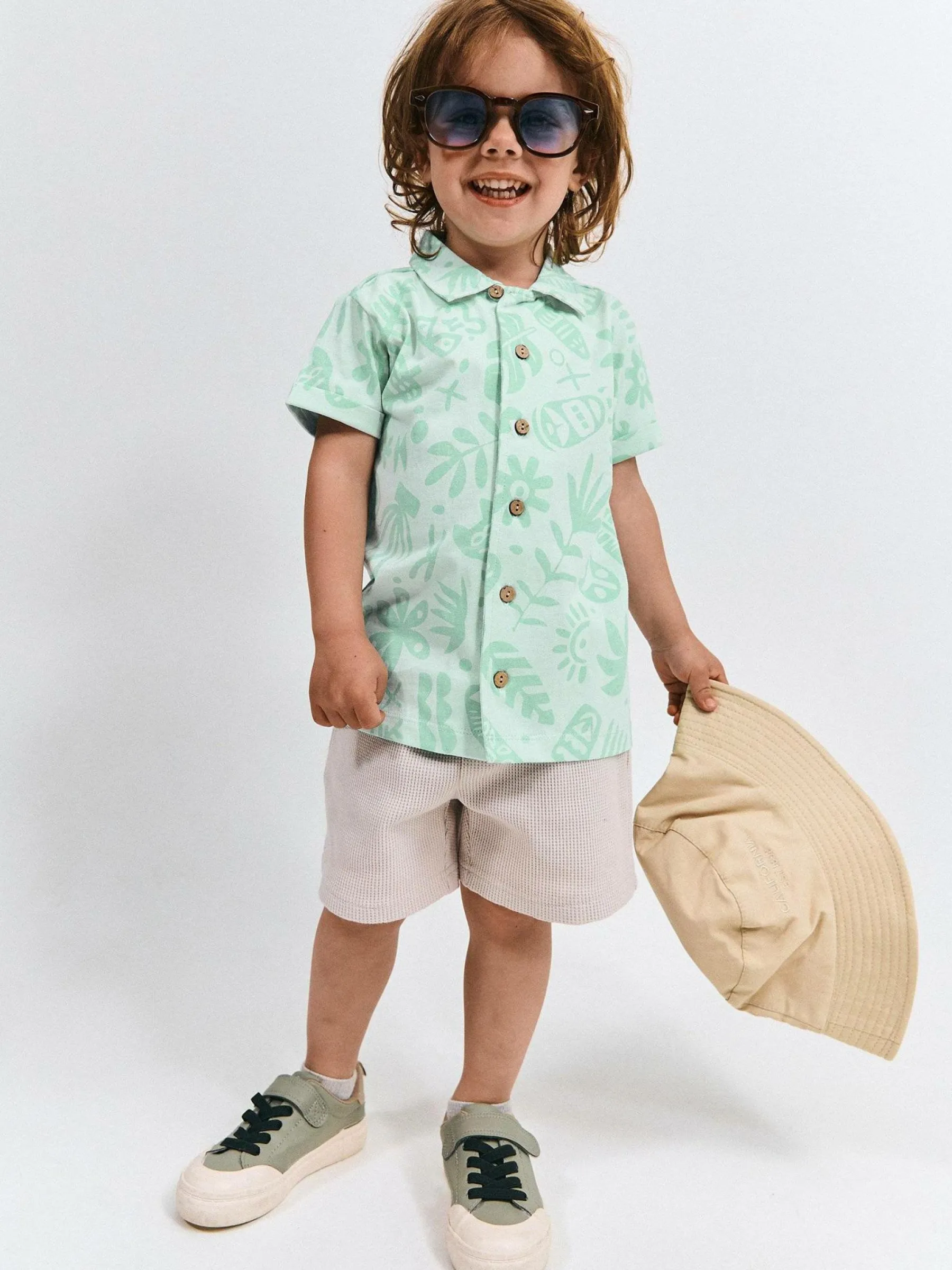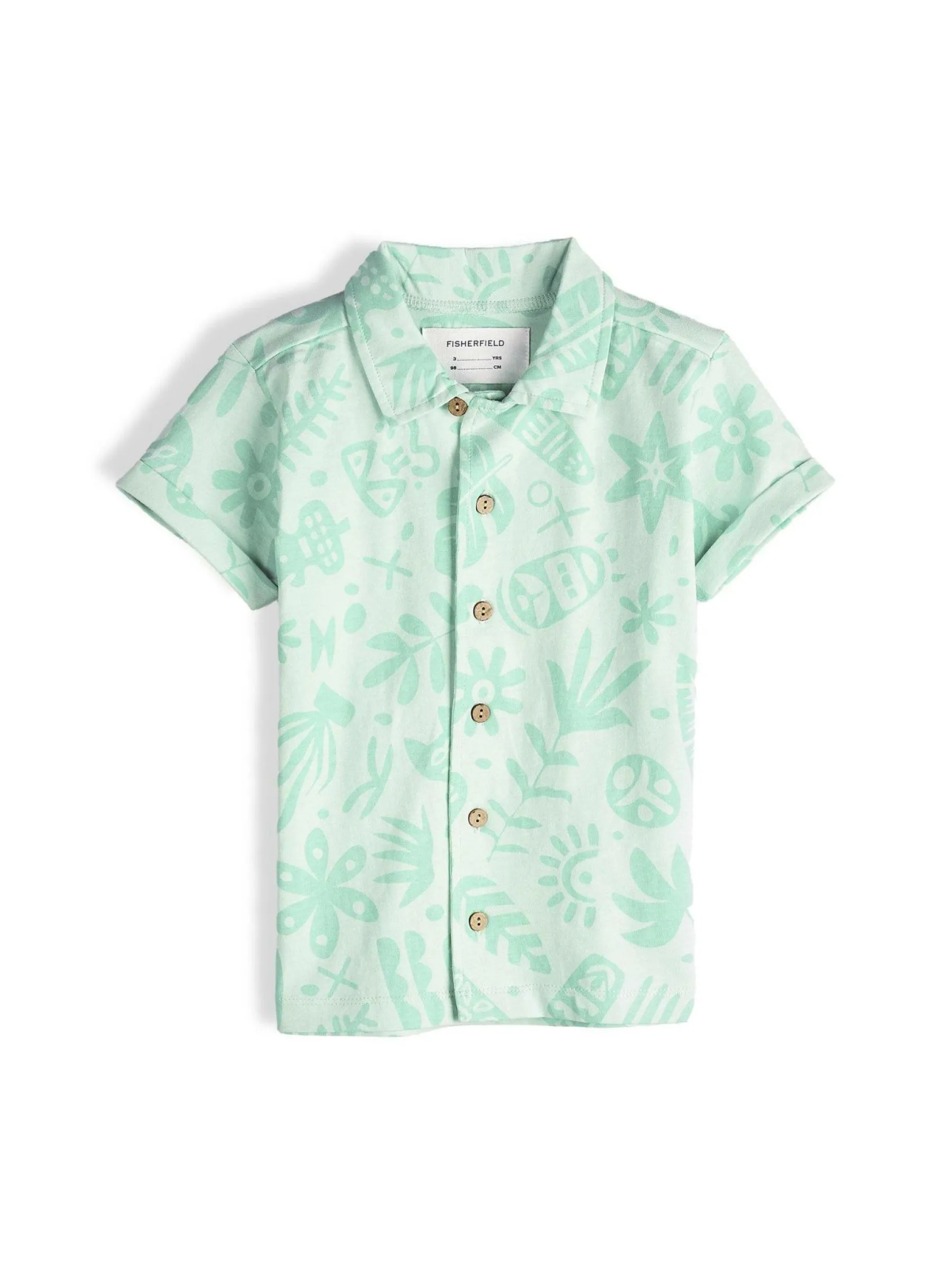 Kolor: zielonyKrój: podstawowyTyp: koszulaRekaw: krótki rękawDługość: krótkiPattern style: wzorzysteDetal: na guz…