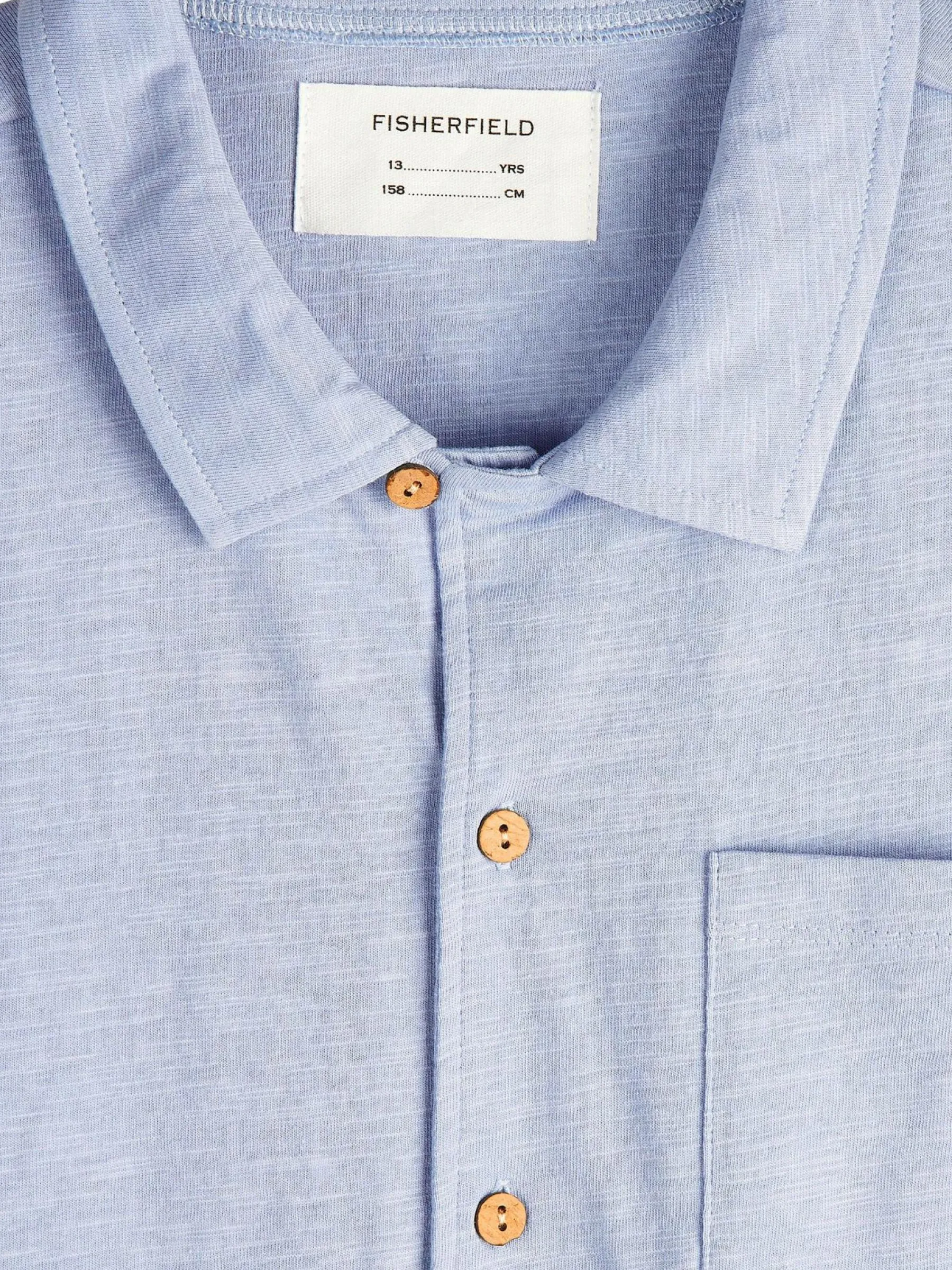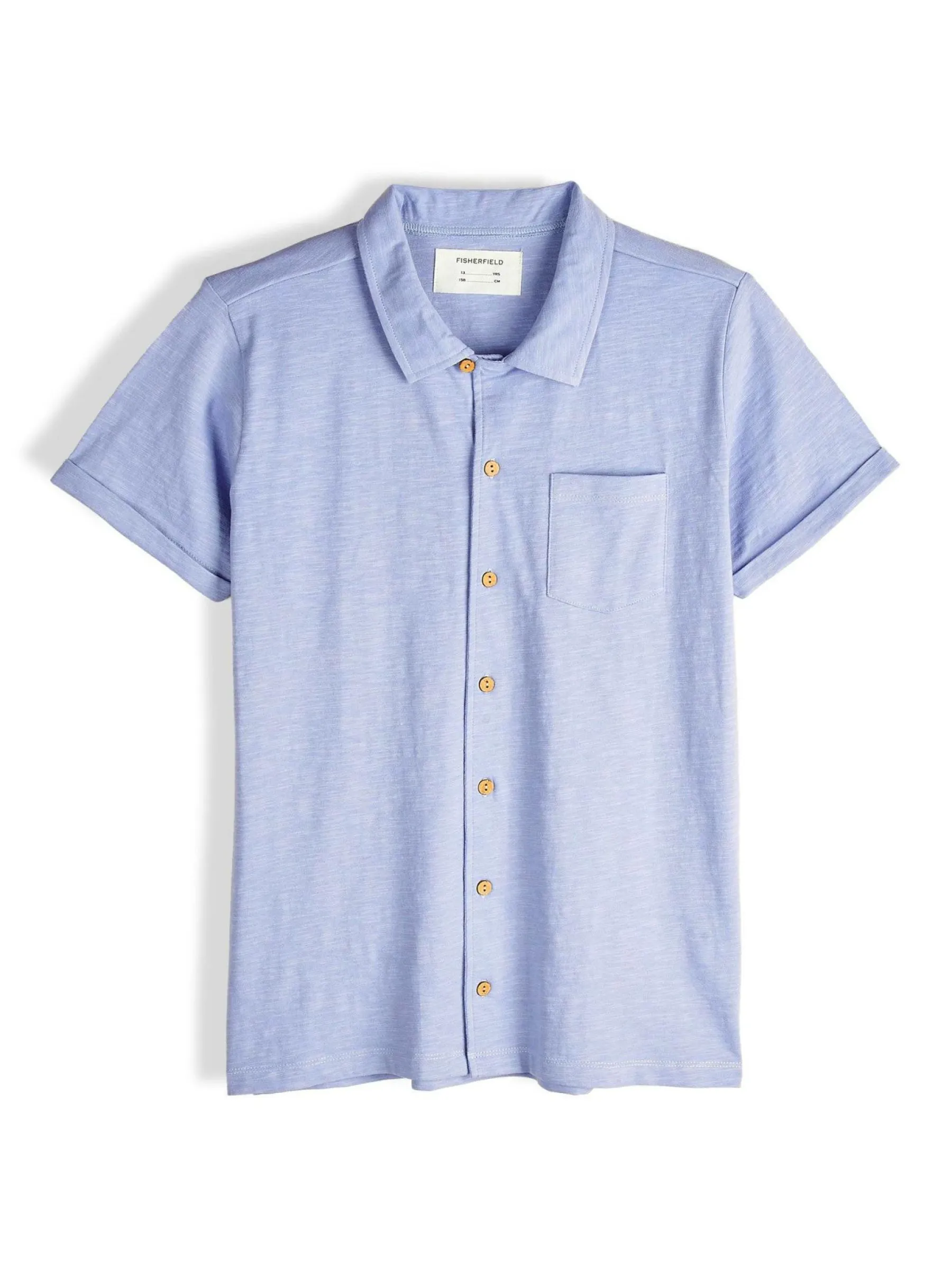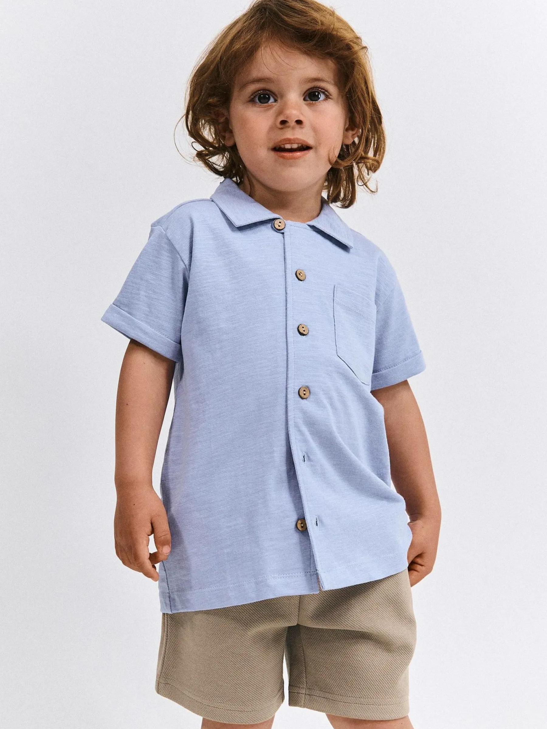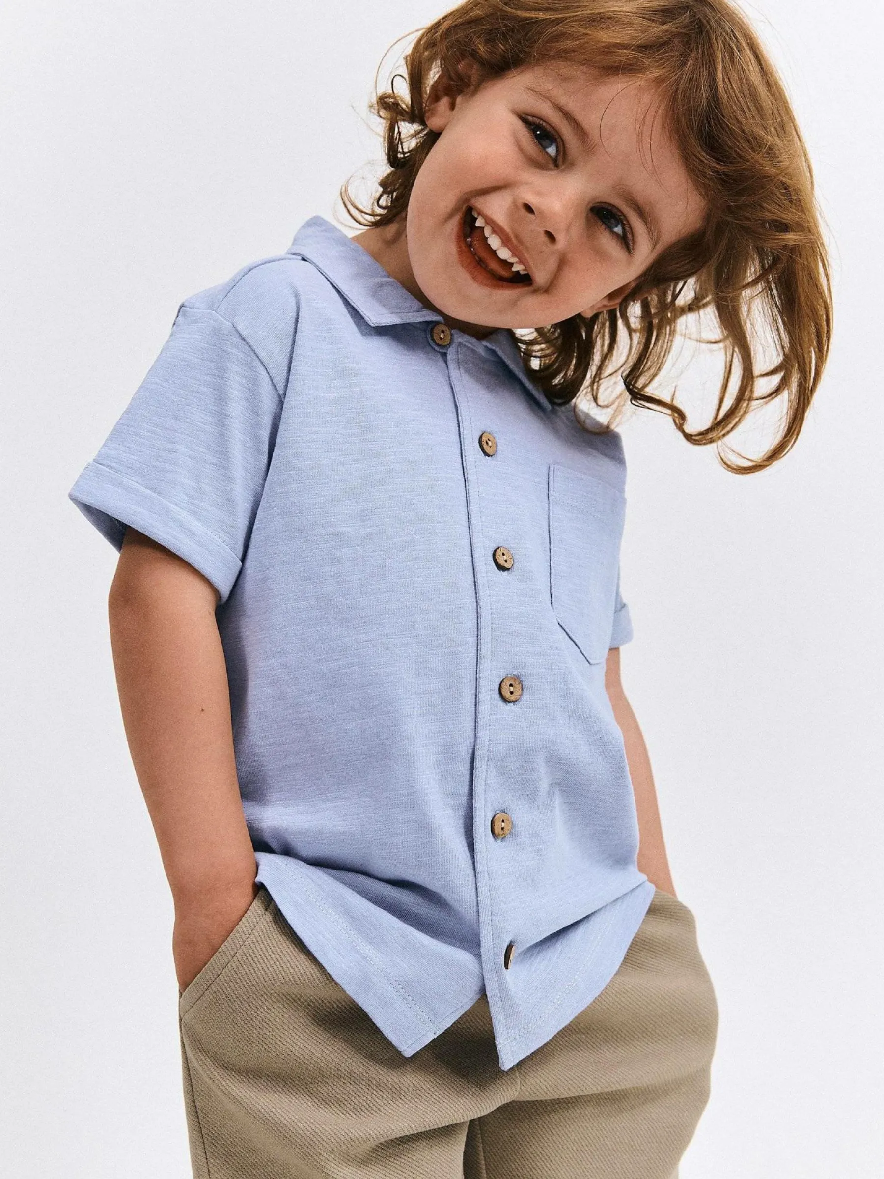 Kolor: niebieskiKrój: podstawowyTyp: koszulaRekaw: krótki rękawDługość: krótkiPattern style: pojedynczy kolorDeta…