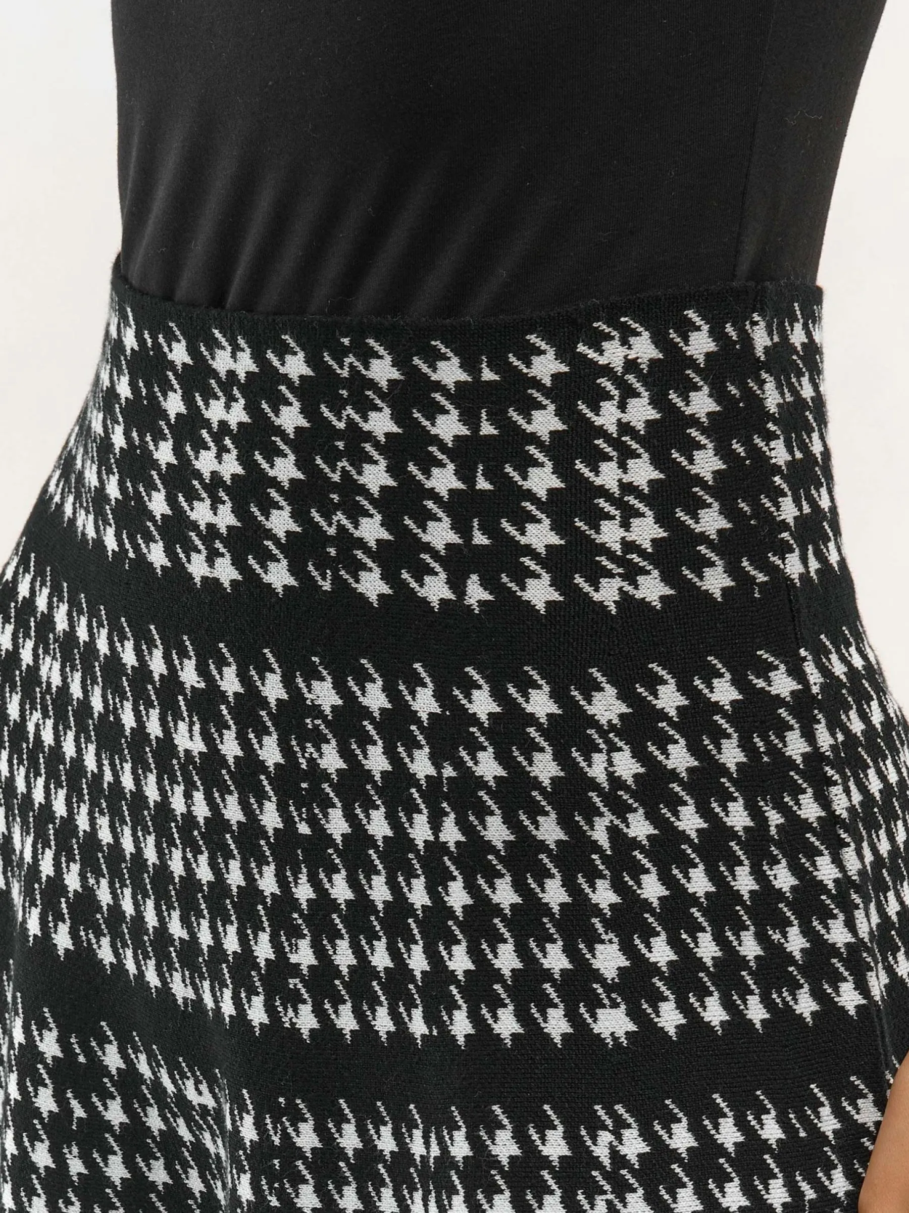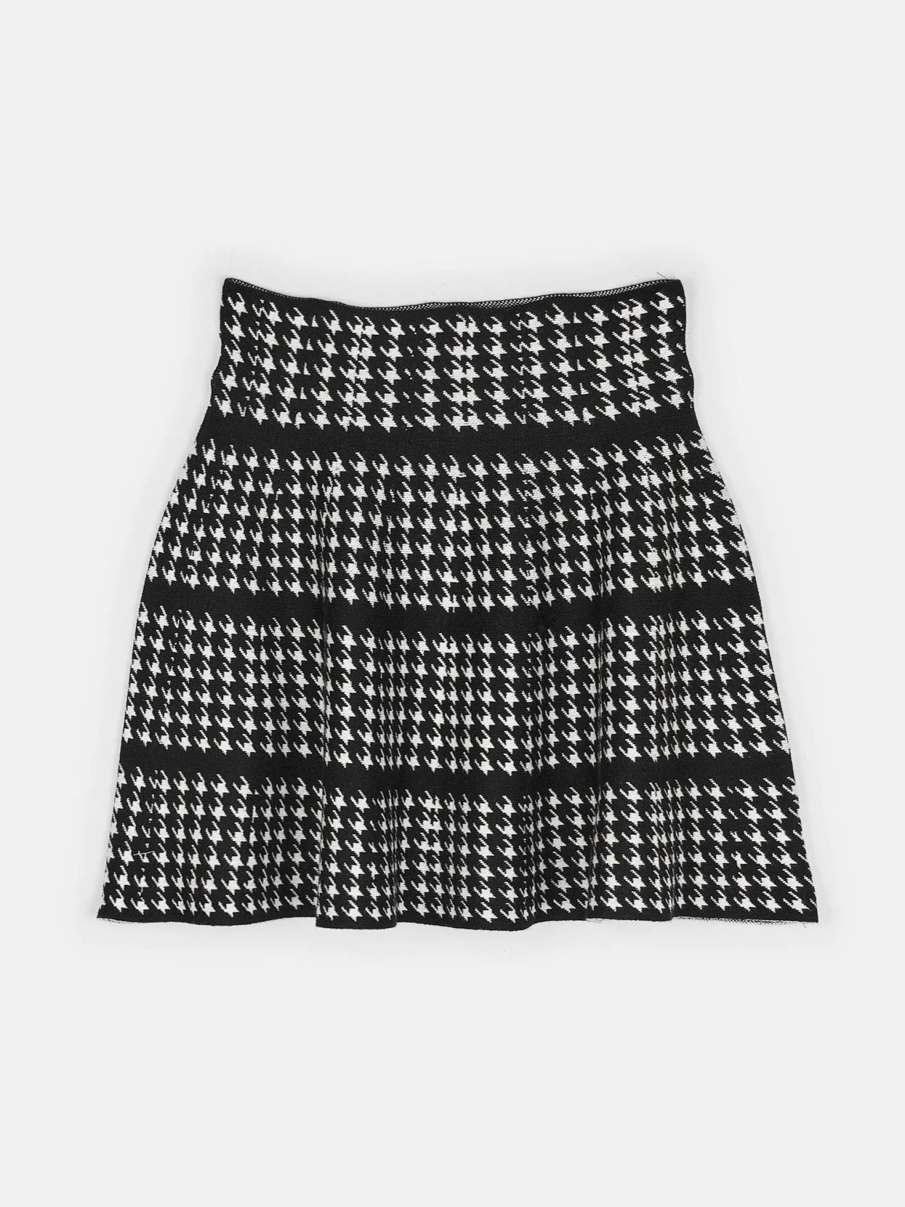 Kolor: czarnyKrój: plisowanyTyp: spódnicaDługość: miniPattern style: houndstoothDetal: z elastyczną opaskąMateria…