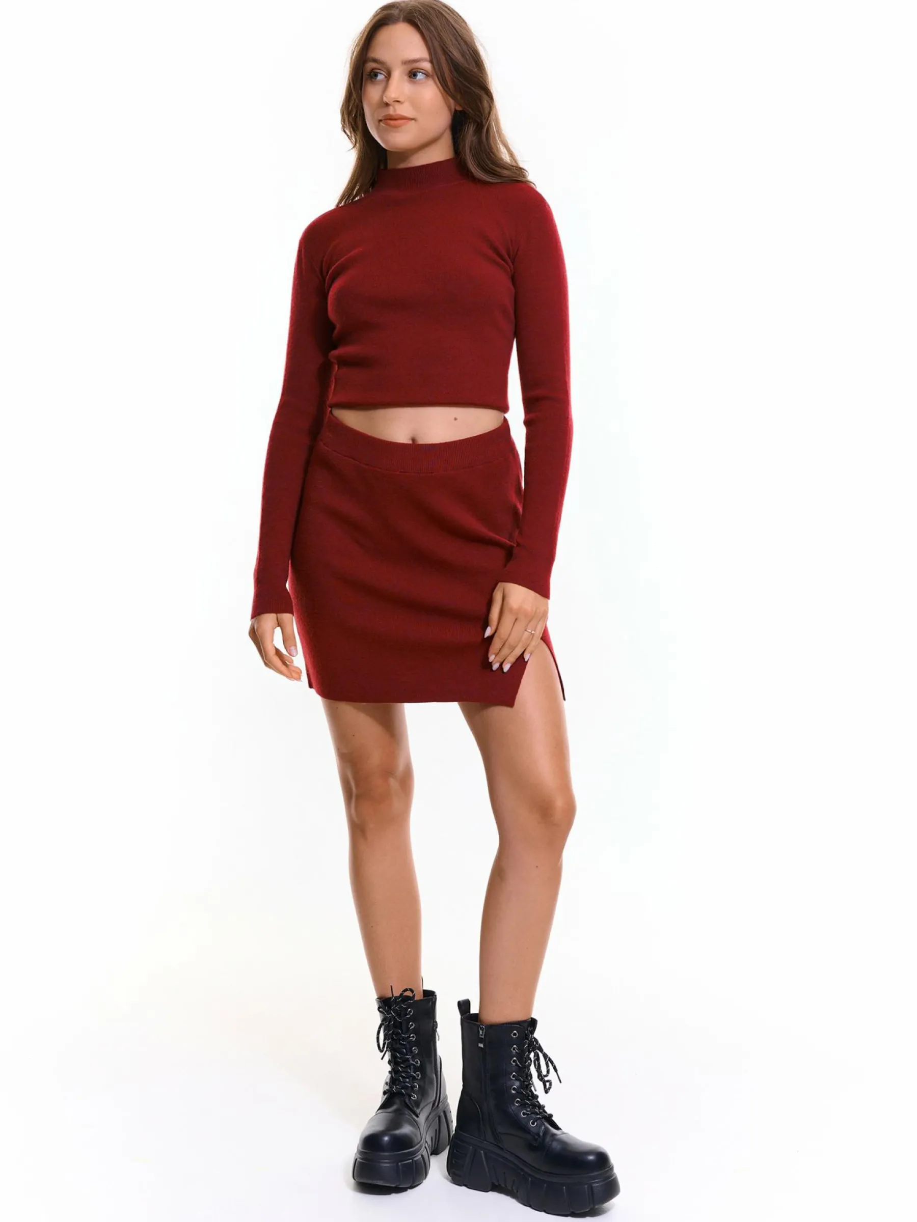 Kolor: czerwonyKrój: podstawowyTyp: spódnicaDługość: miniPattern style: pojedynczy kolorDetal: z rozcięciemMateria…