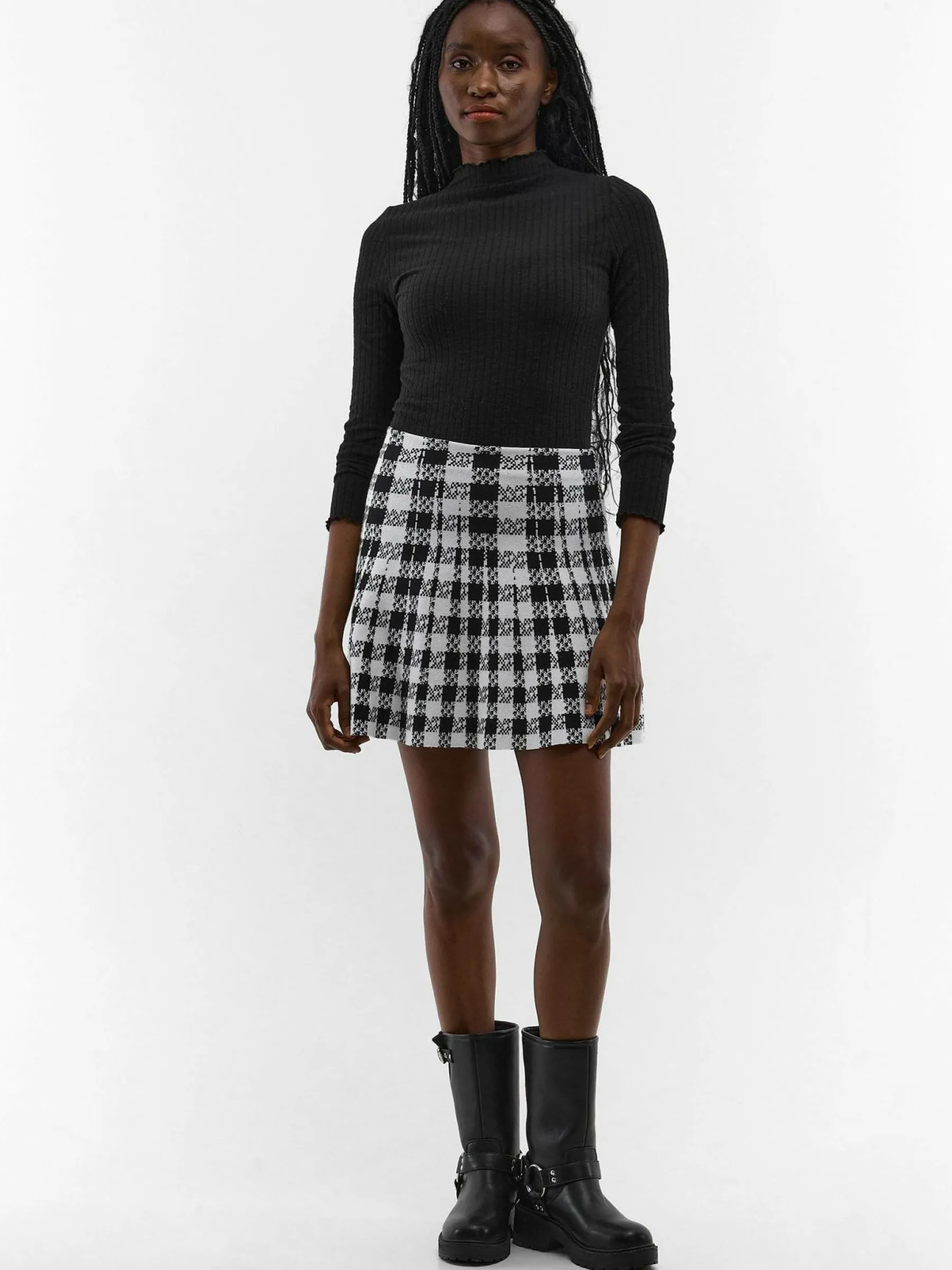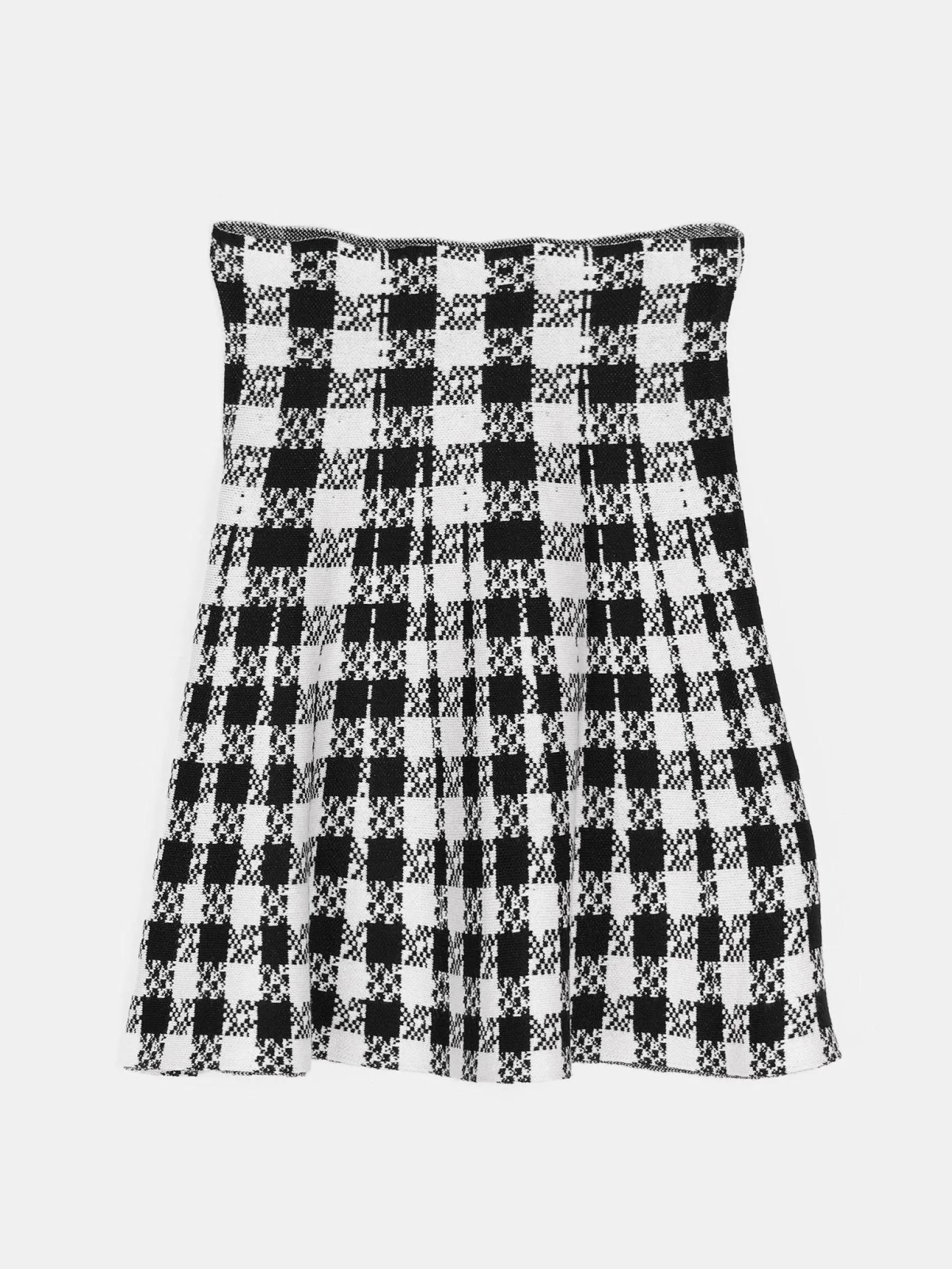Kolor: czarnyKrój: podstawowyTyp: spódnicaDługość: miniPattern style: w krateMateriał: trykotowyPłeć: kobietyOka…