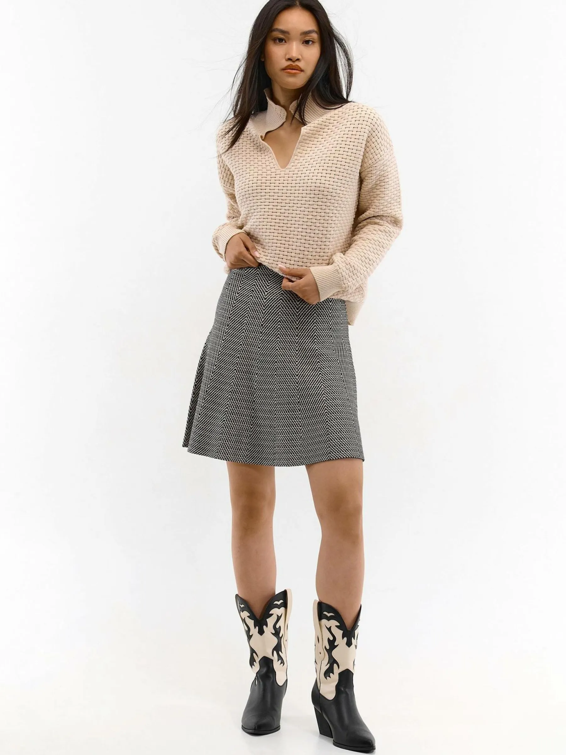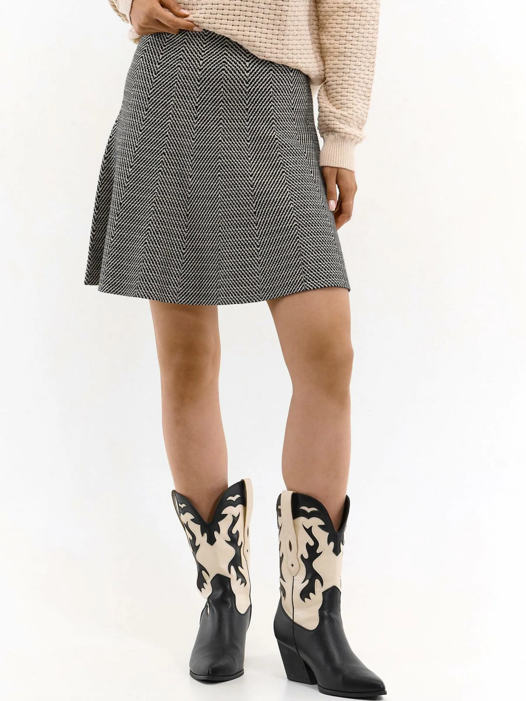 Kolor: czarnyKrój: asyTyp: spódnicaDługość: miniPattern style: wzorzysteDetal: z elastyczną opaskąMateriał: mies…