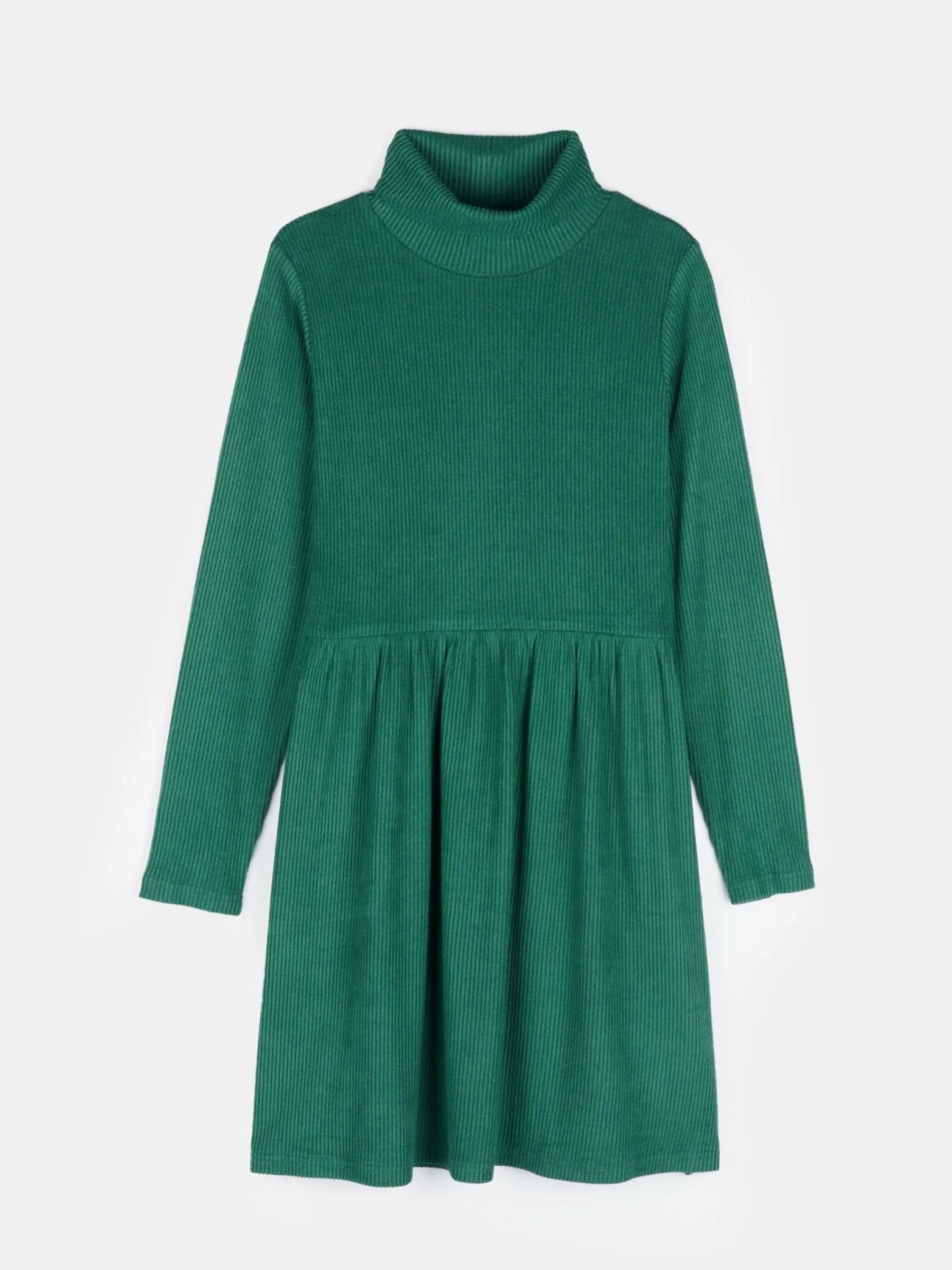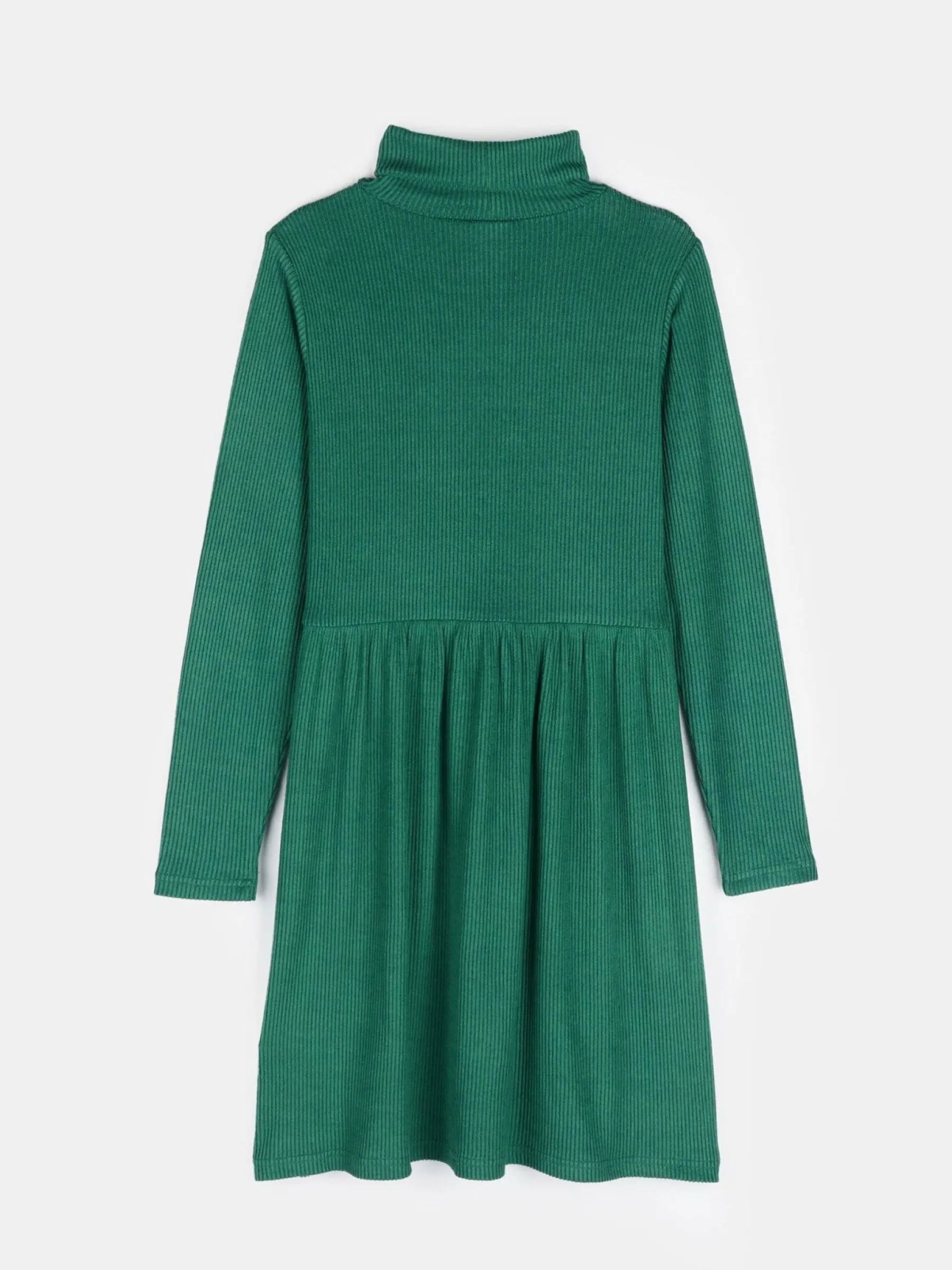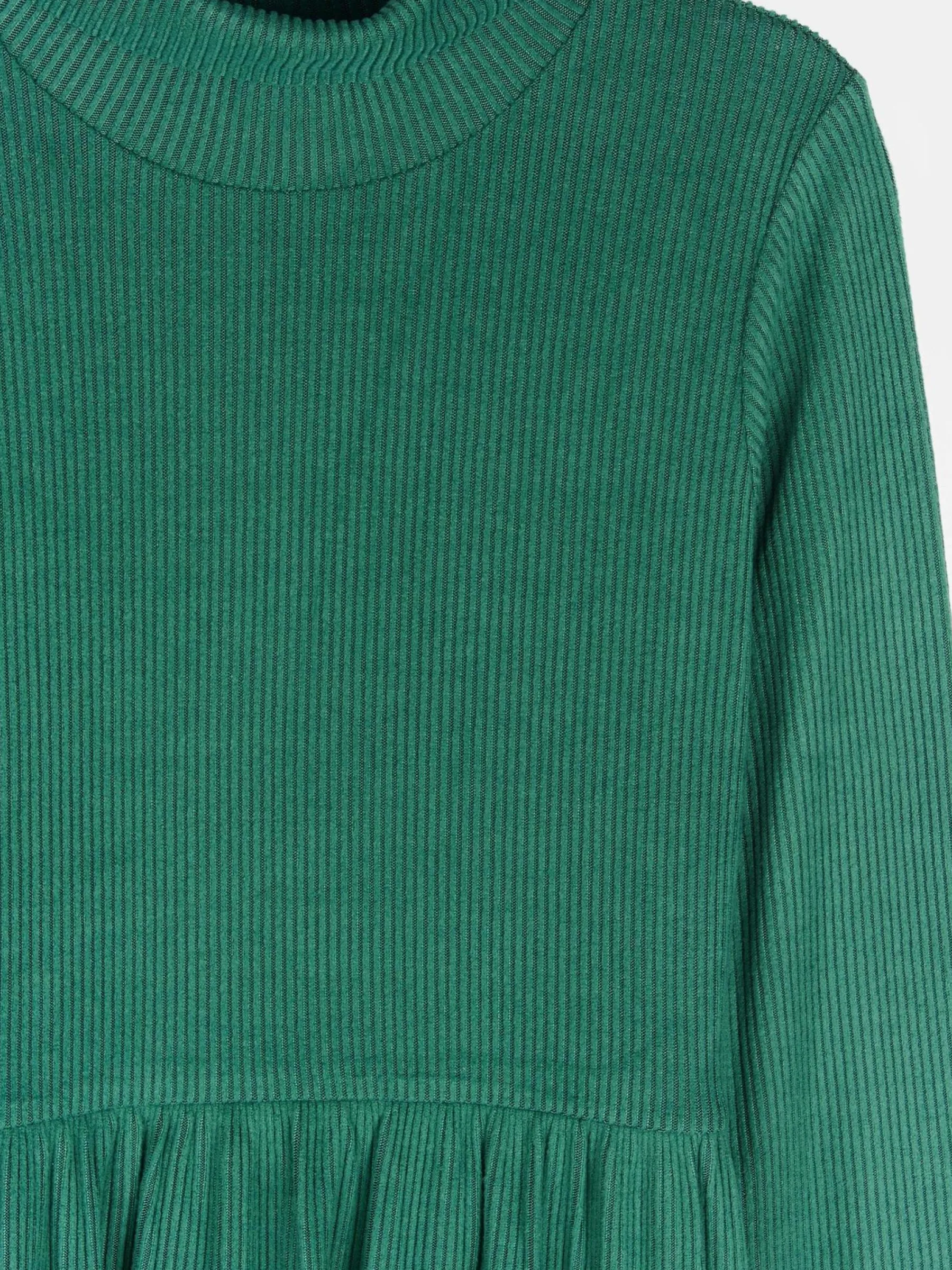 Kolor: zielonyKrój: asyTyp: sukienkaRekaw: długi rękawDługość: miniPattern style: żebrowanyDetal: nad głowąMate…