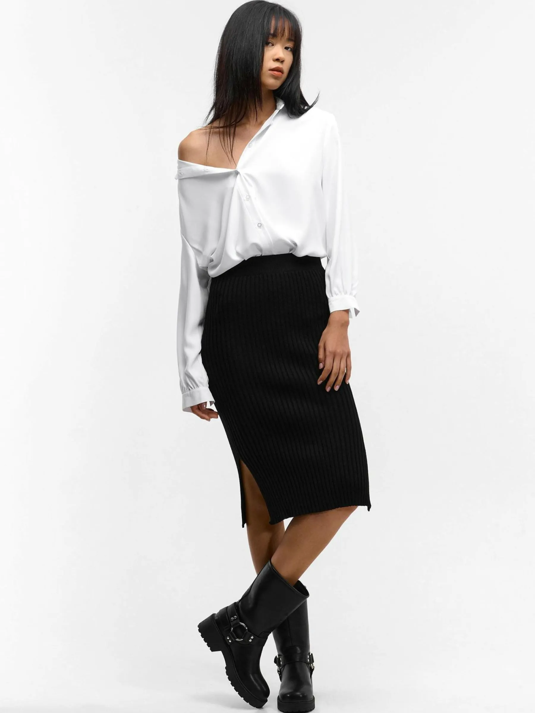 Kolor: czarnyKrój: regularTyp: spódnicaDługość: midiPattern style: pojedynczy kolor, żebrowanyDetal: z elastyczną…