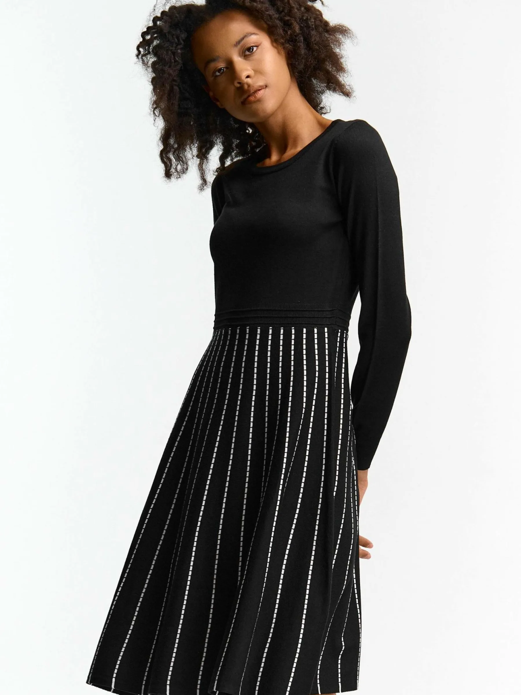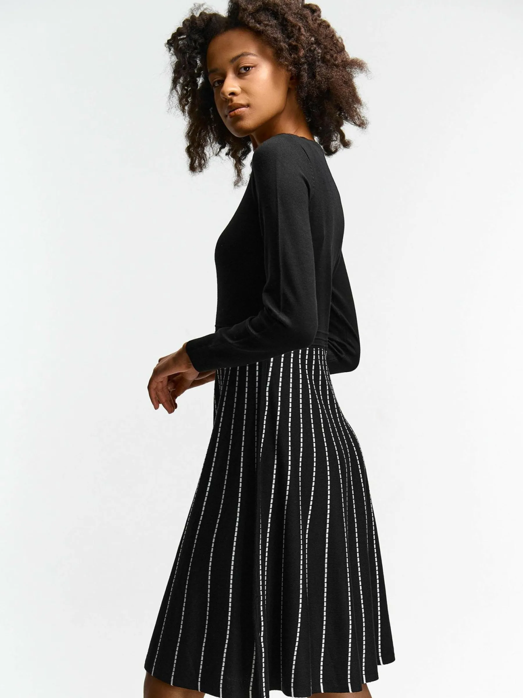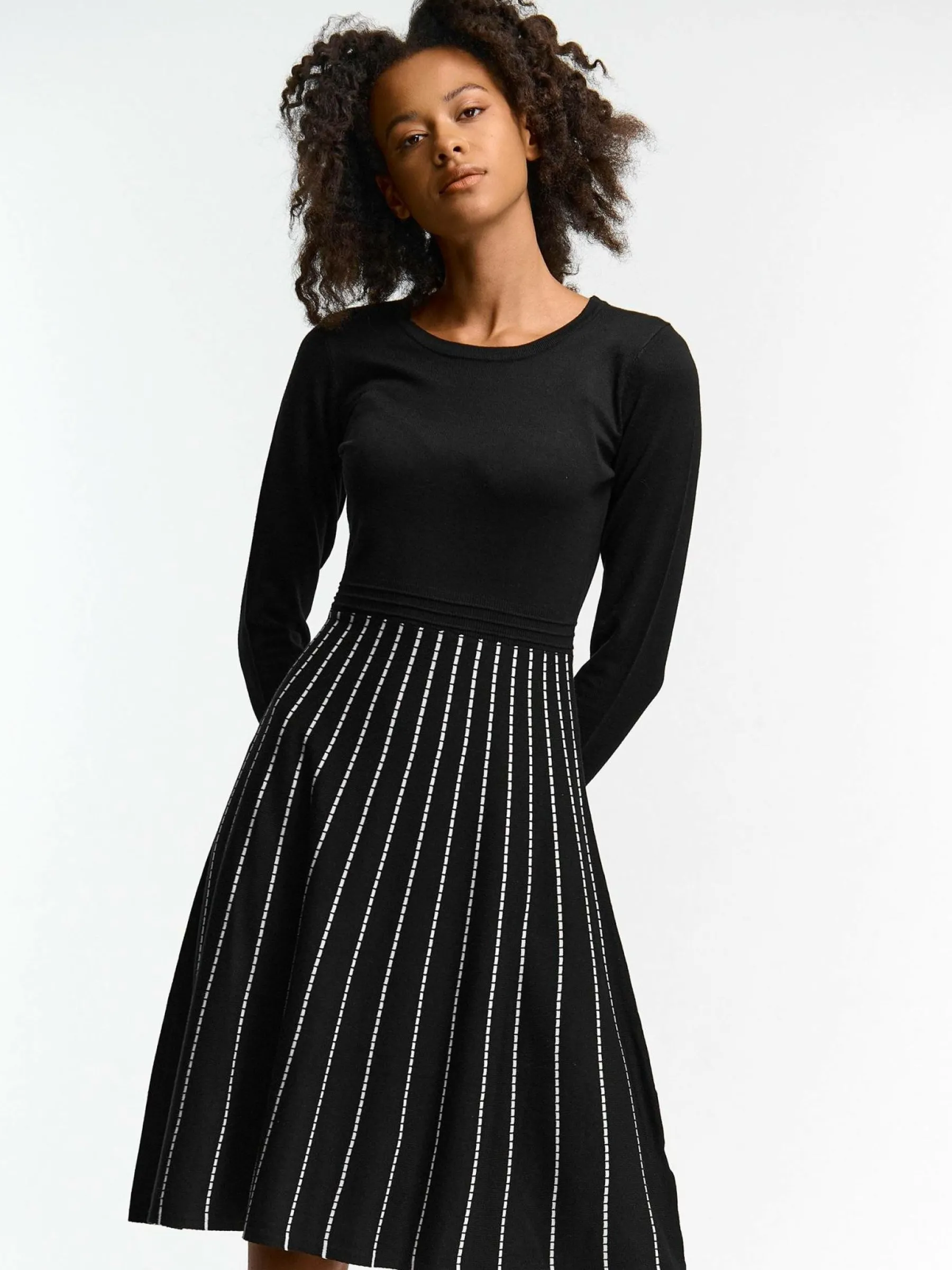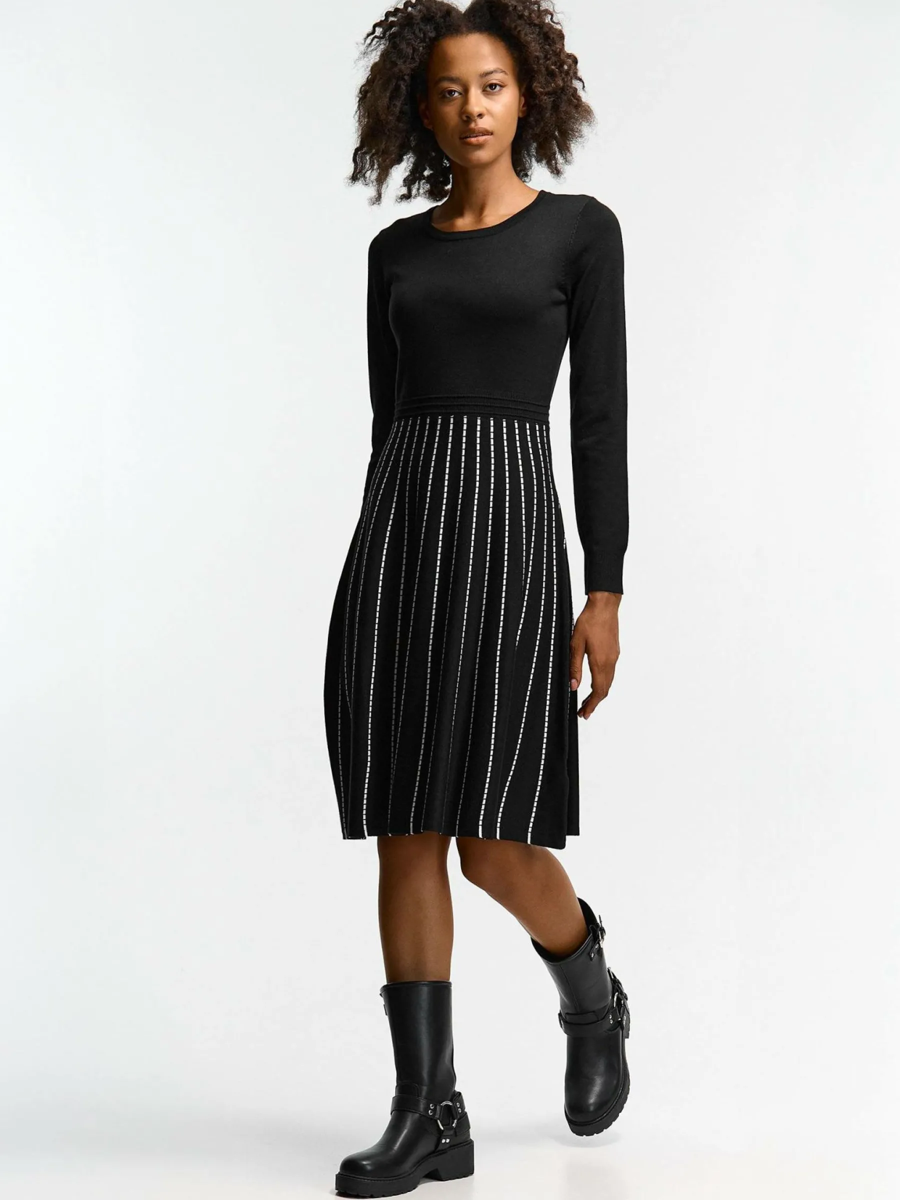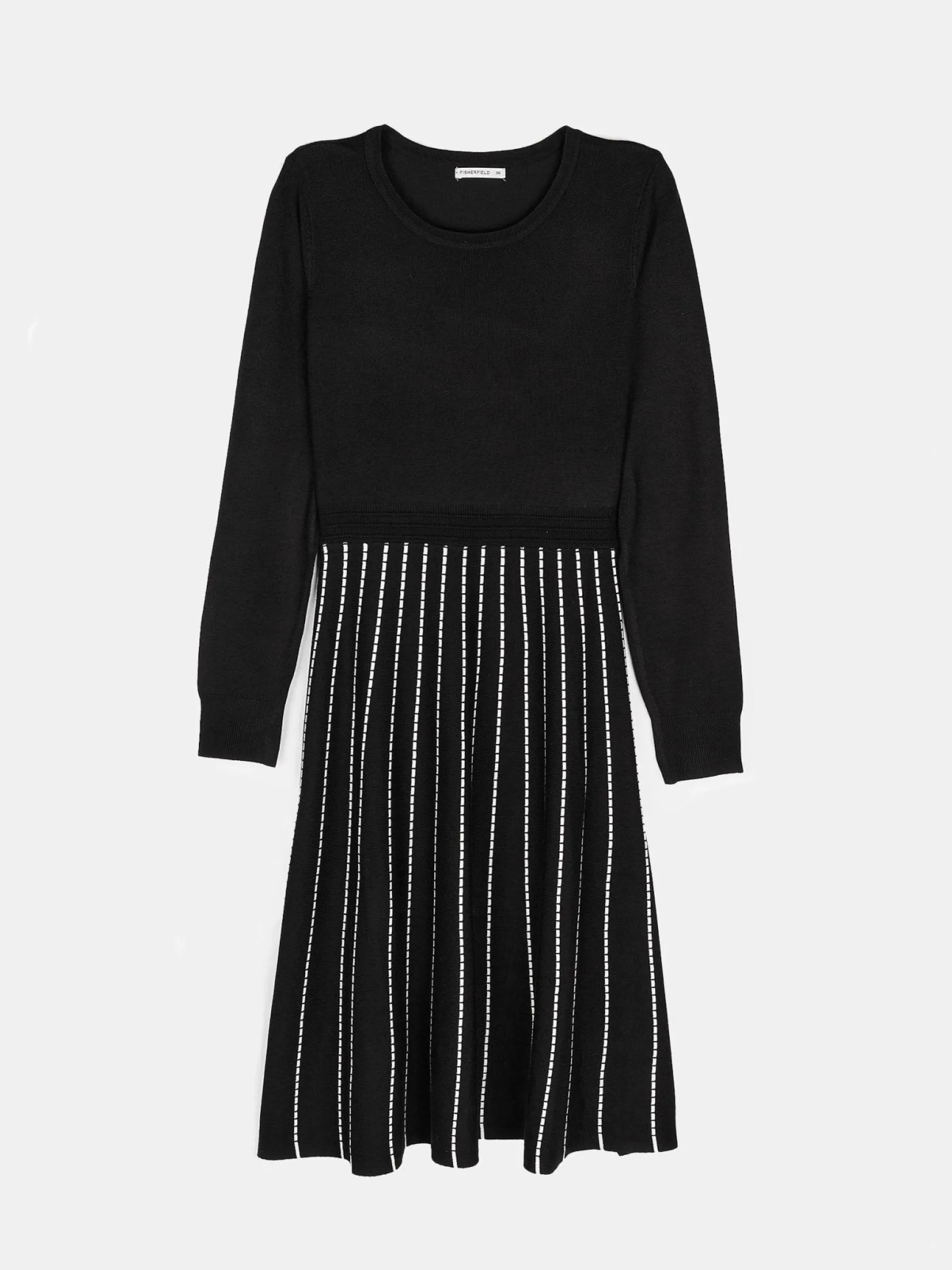 Kolor: czarnyKrój: asyTyp: sukienkaRekaw: długi rękawDługość: miniPattern style: w prążkiDetal: nad głowąMater…