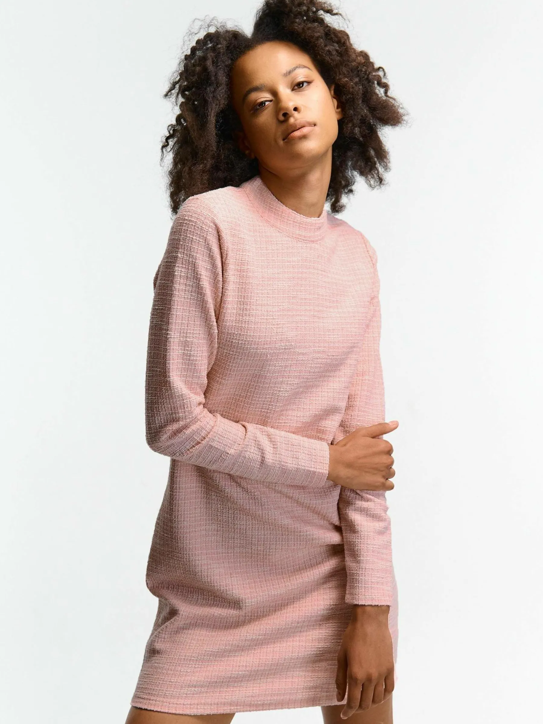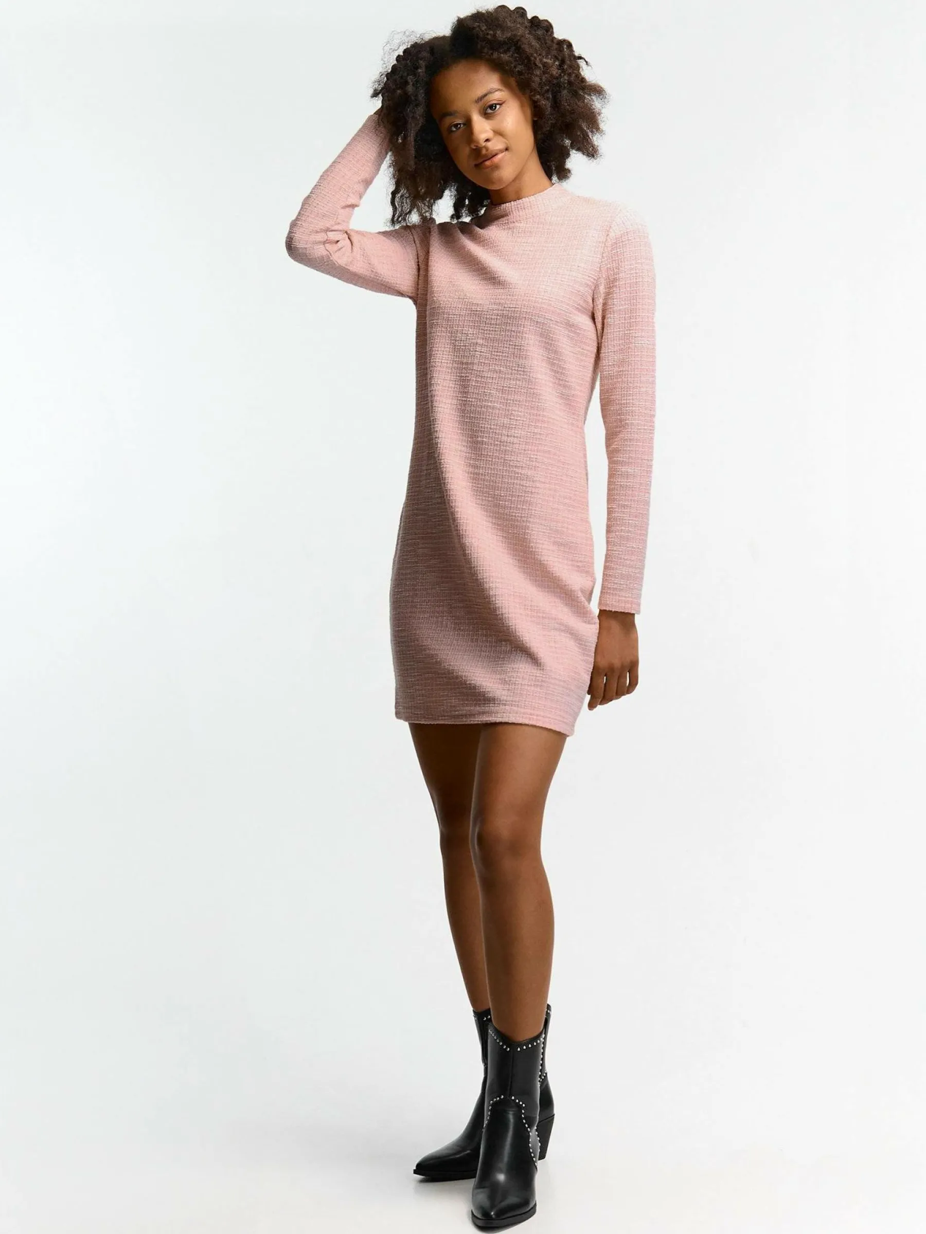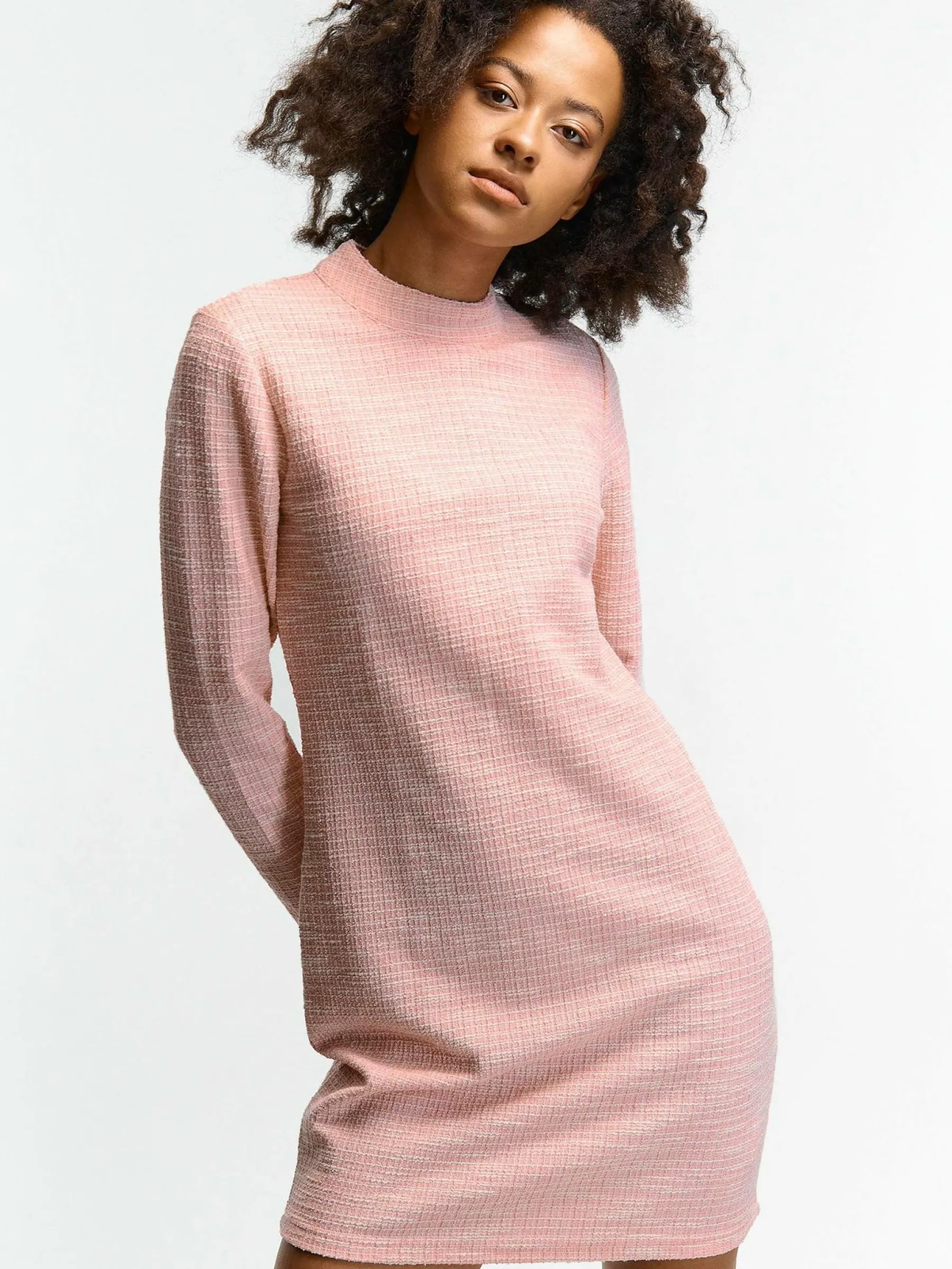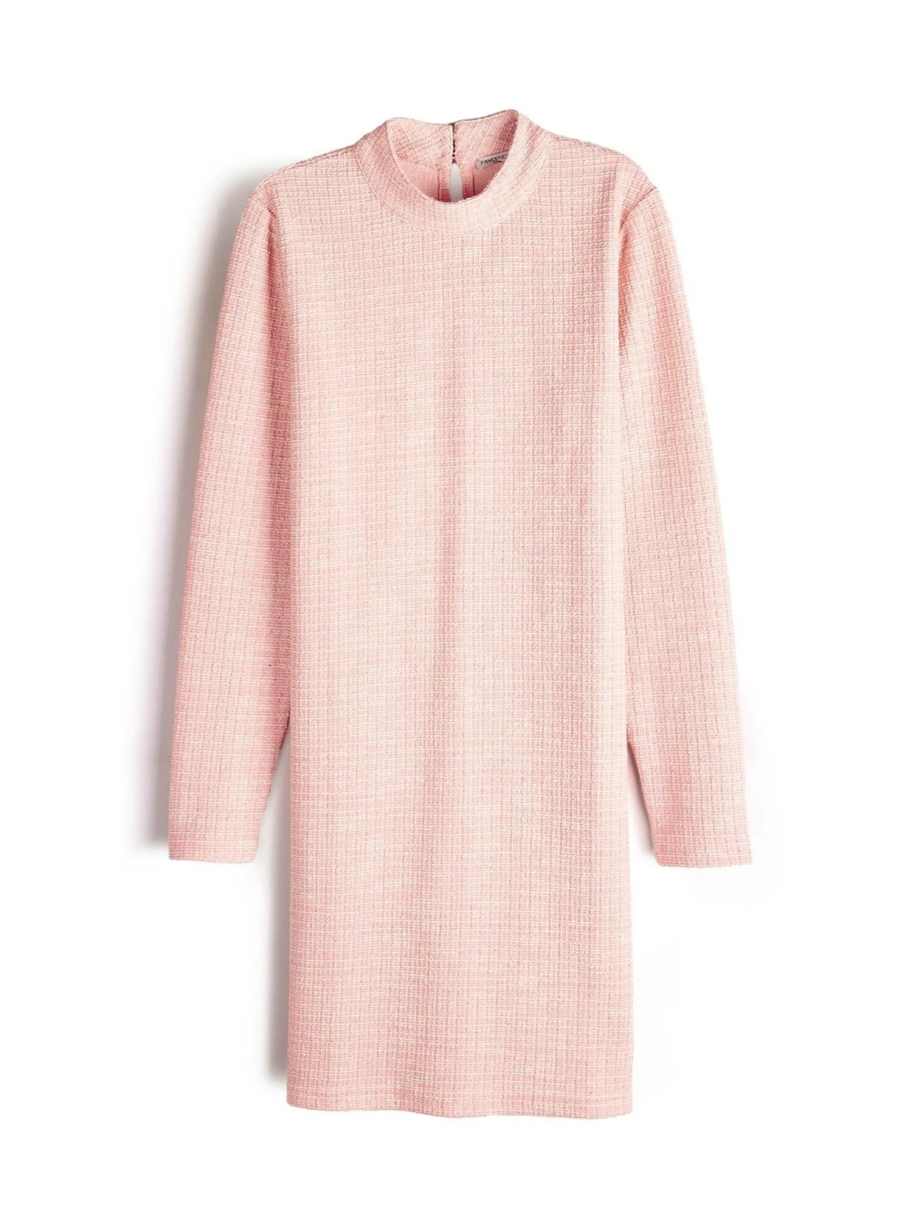 Kolor: różowyKrój: regularTyp: sukienkaRekaw: długi rękawDługość: miniPattern style: pojedynczy kolorDetal: nad …