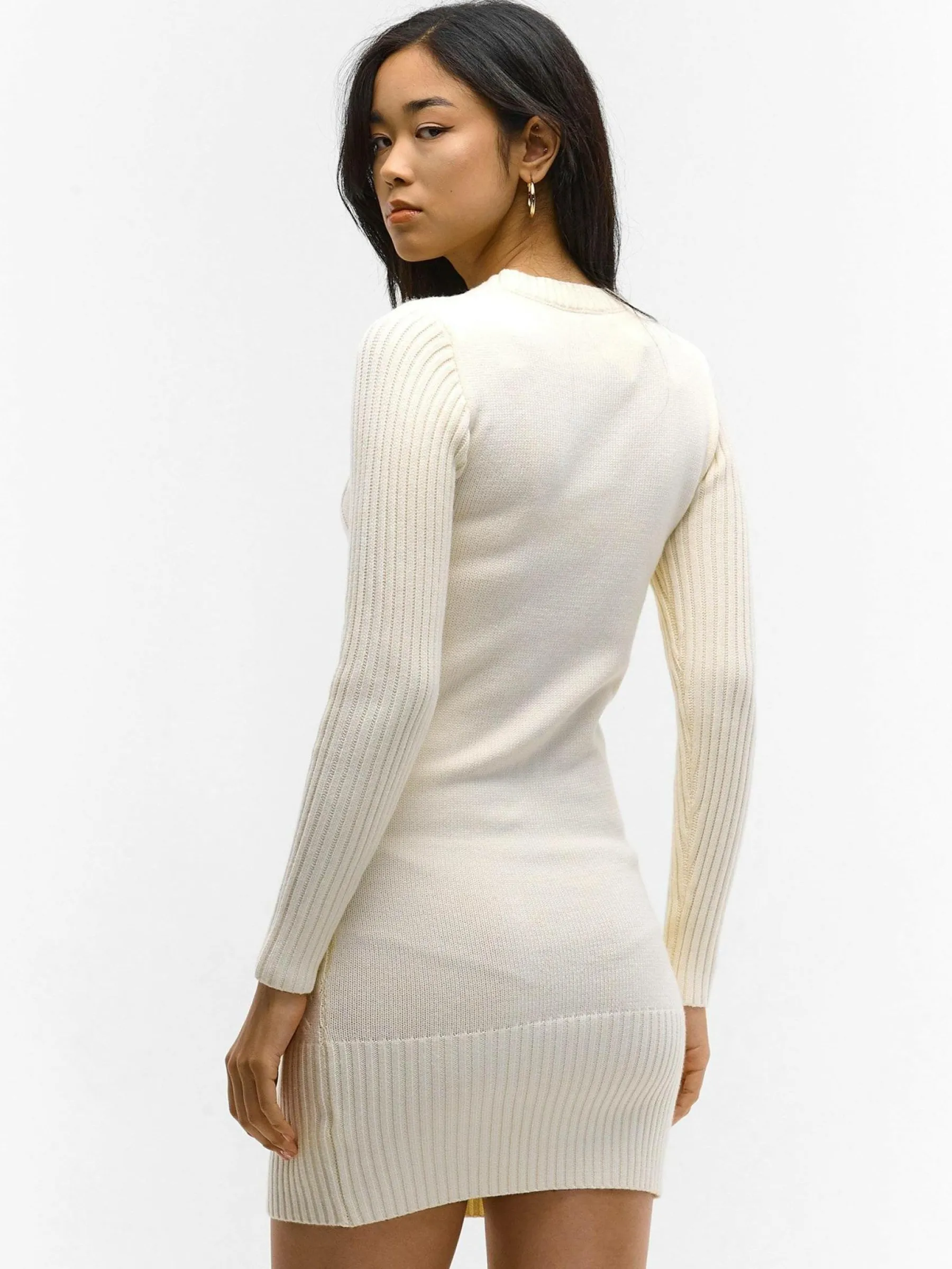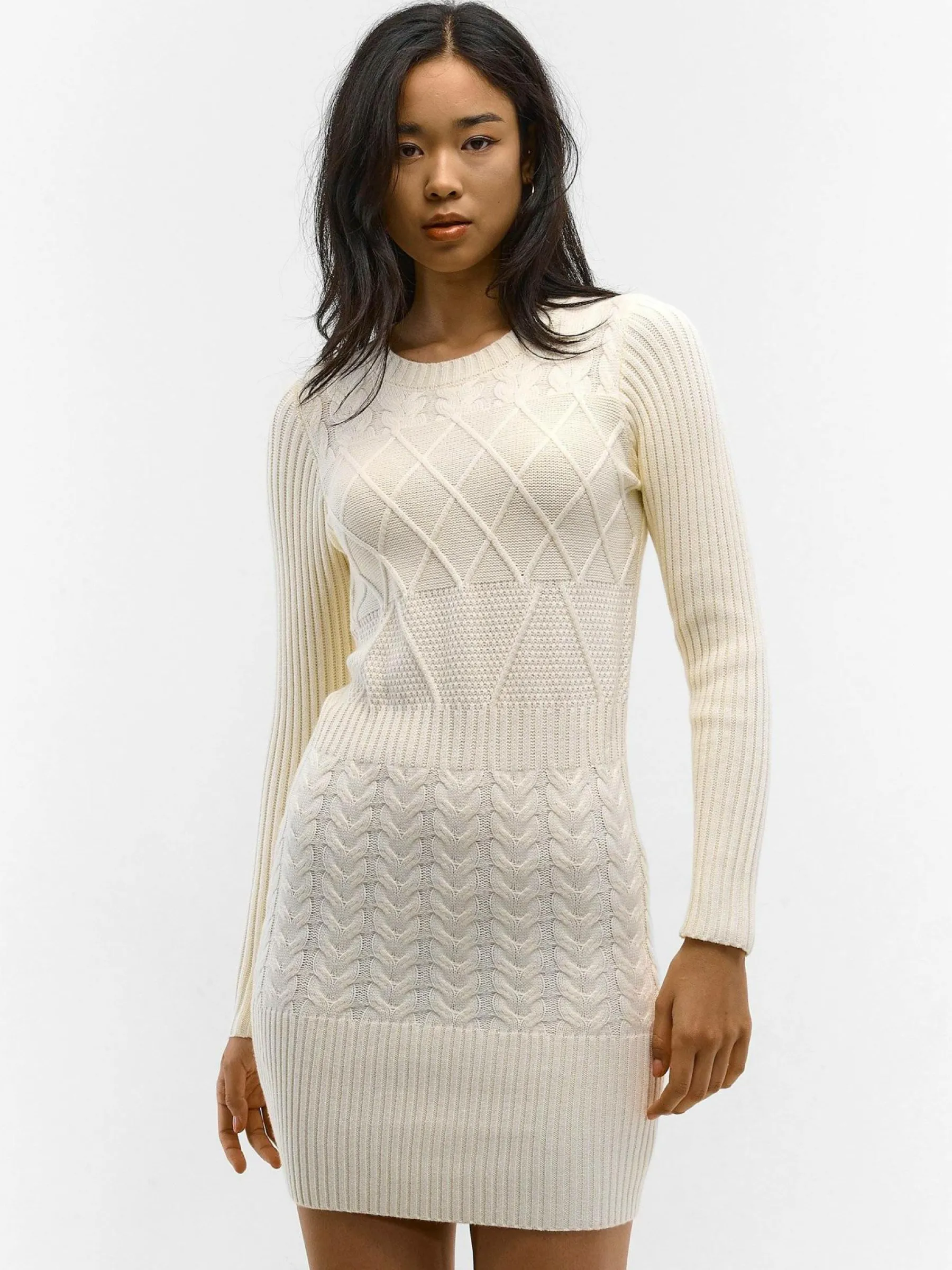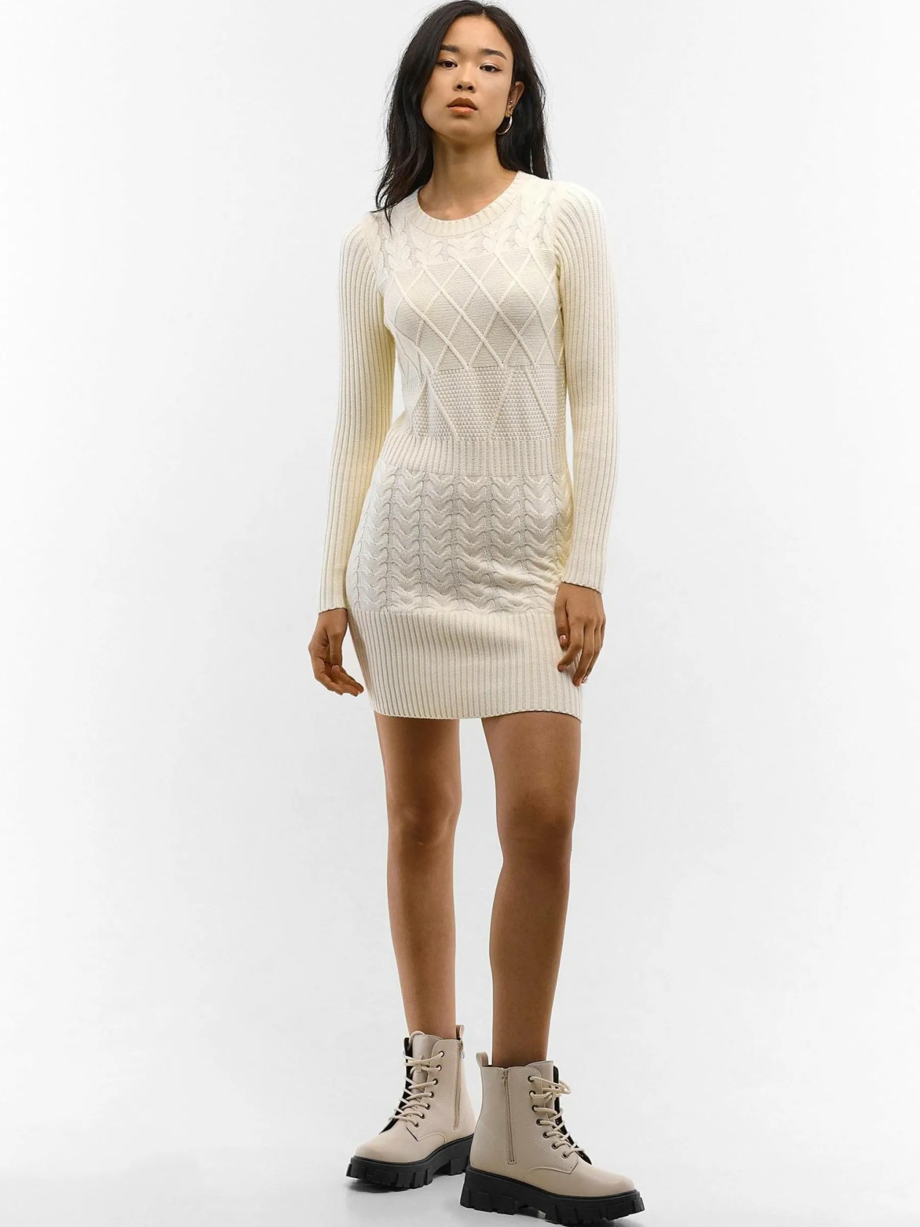 Kolor: białyKrój: podstawowyTyp: sukienkaRekaw: długi rękawDługość: miniPattern style: pojedynczy kolor, struktur…