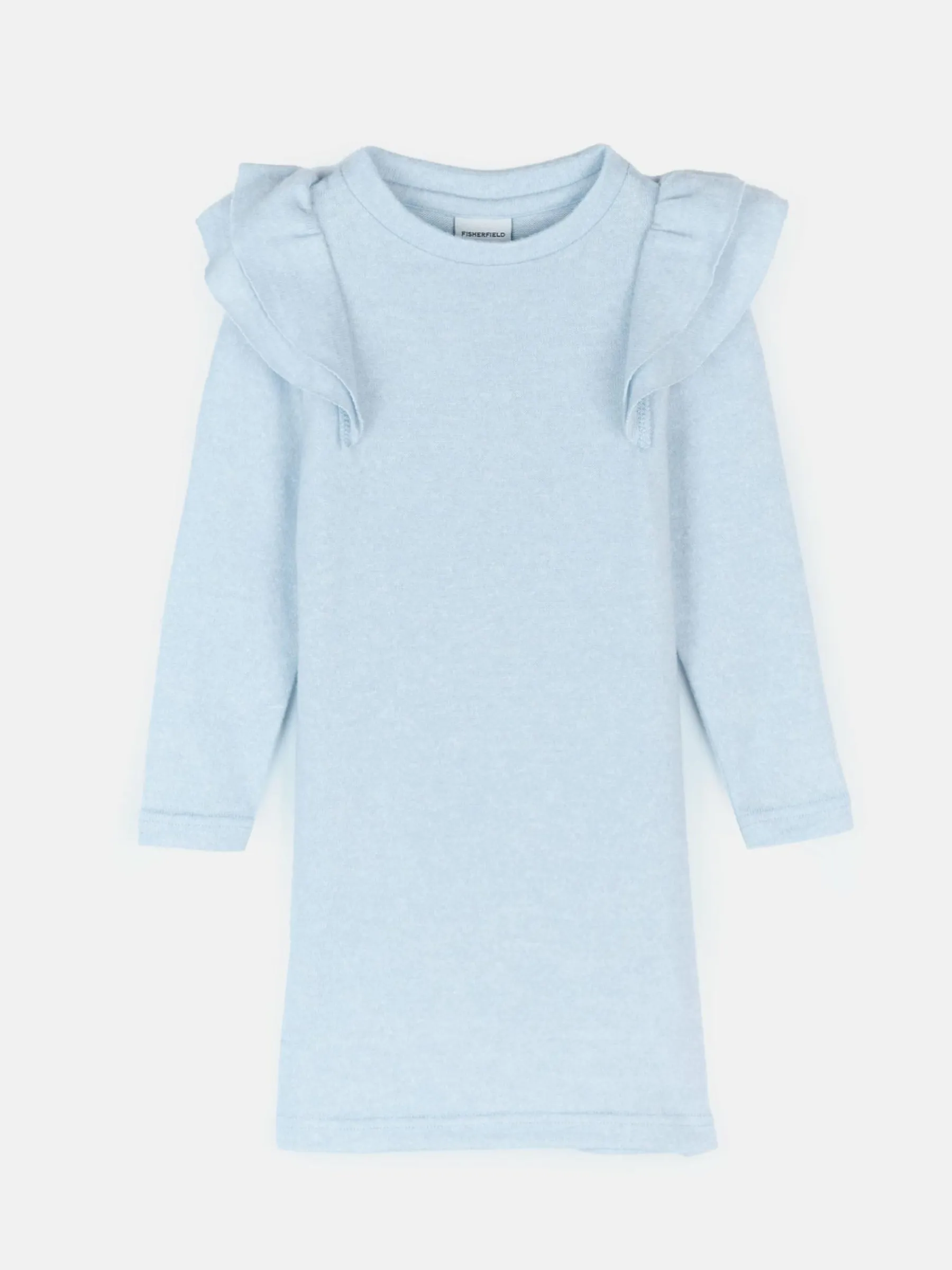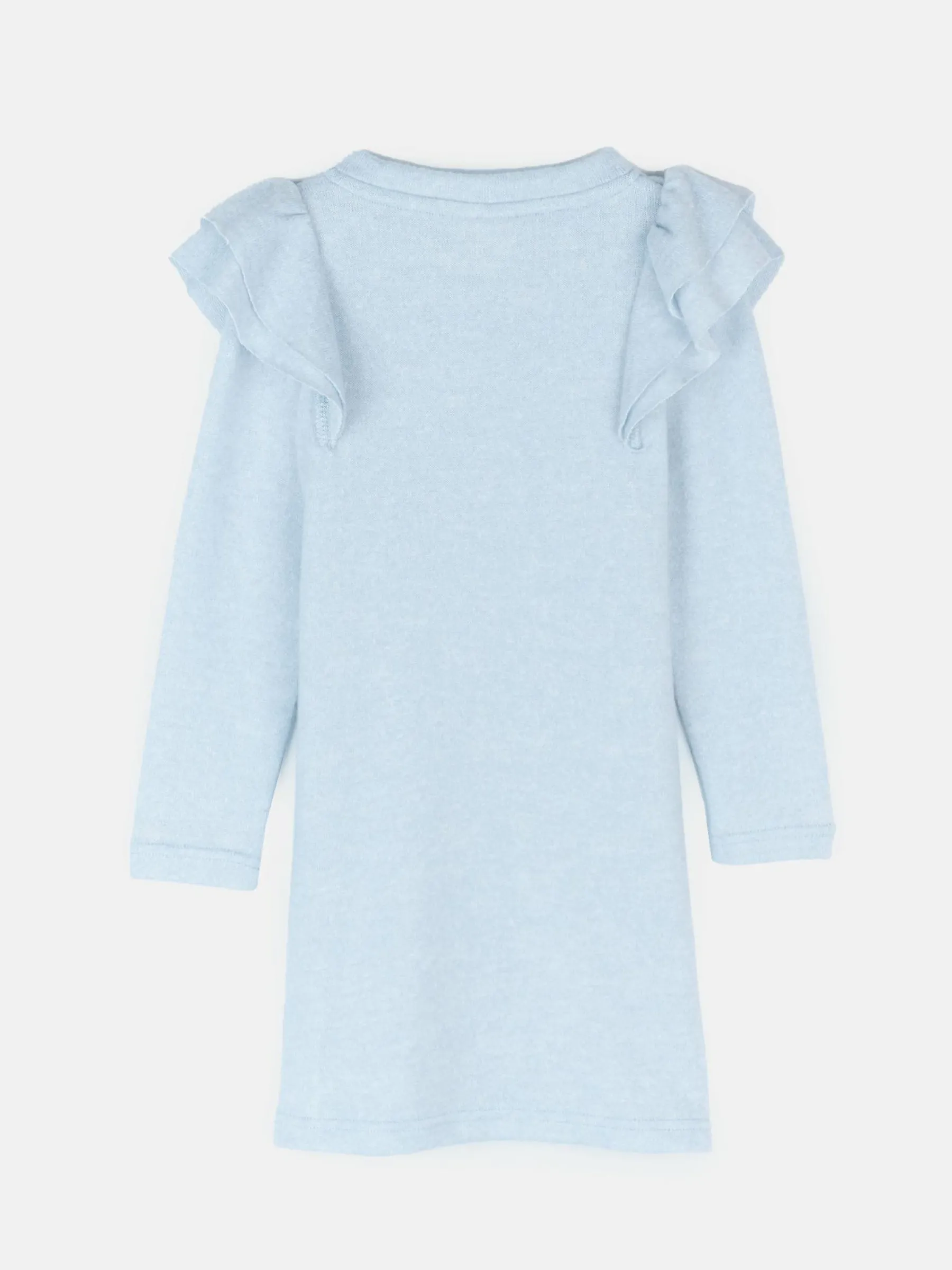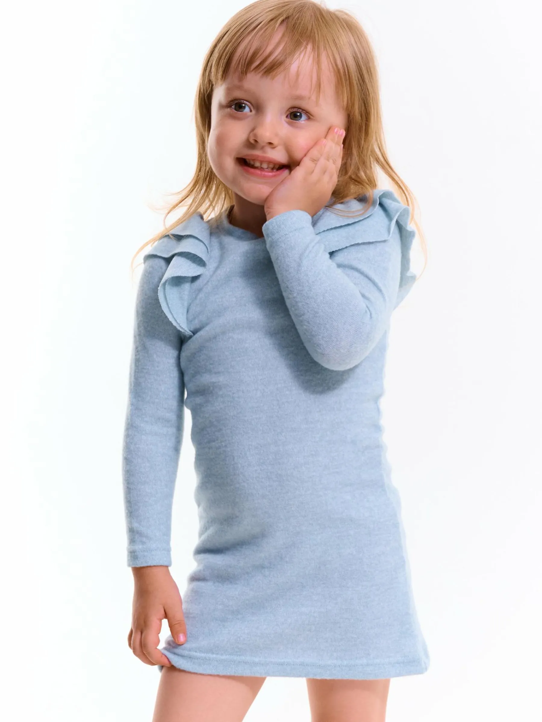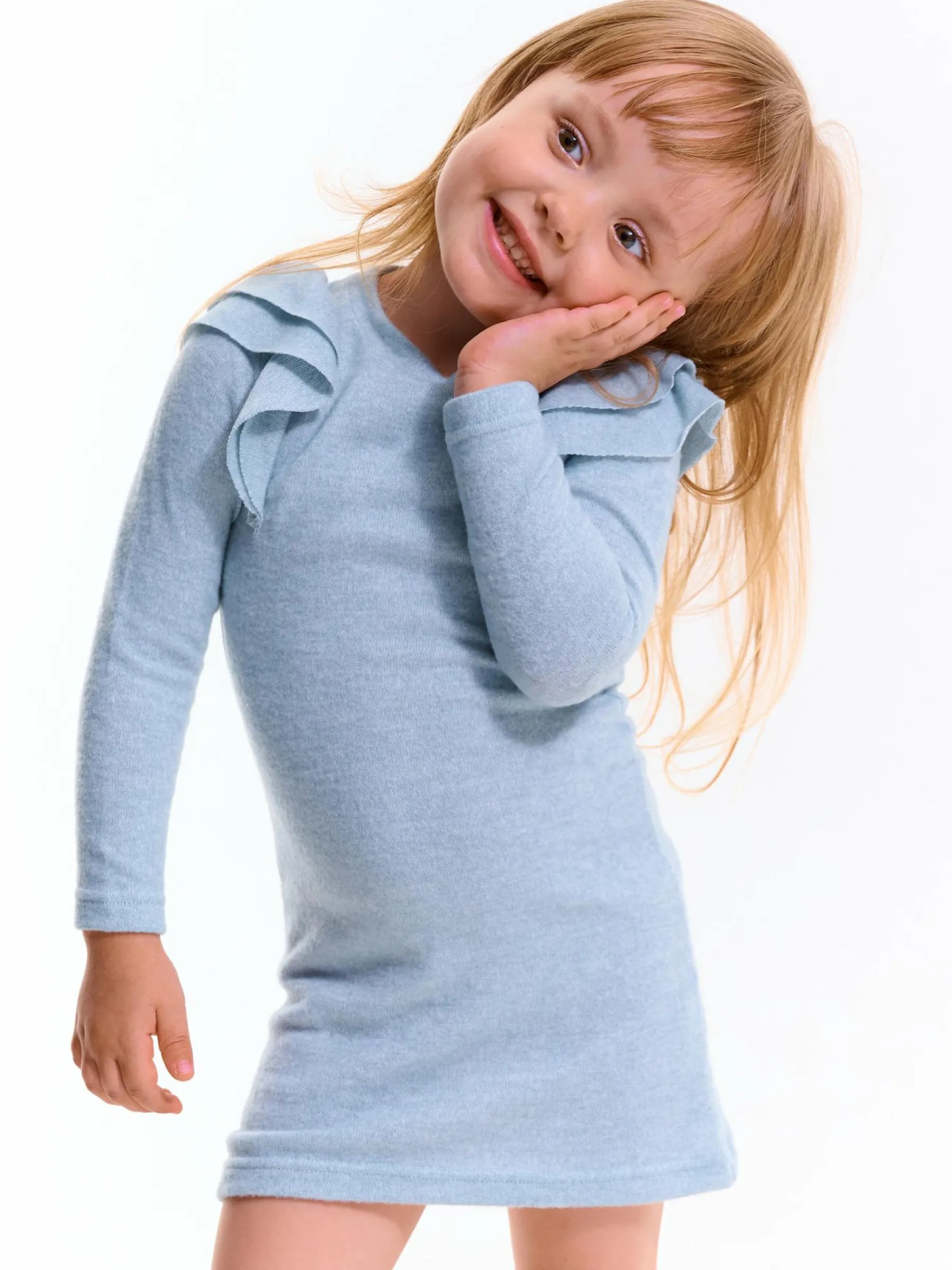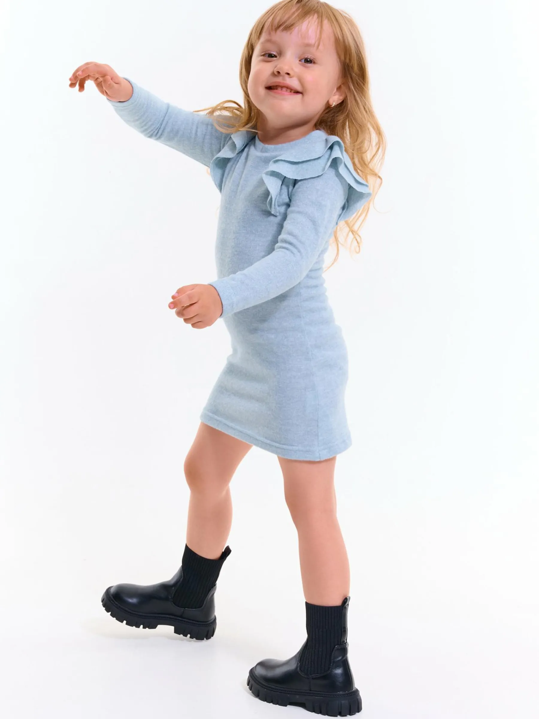 Kolor: szary, niebieskiKrój: z falbanąTyp: sukienkaRekaw: długi rękawDługość: miniPattern style: pojedynczy kolor…