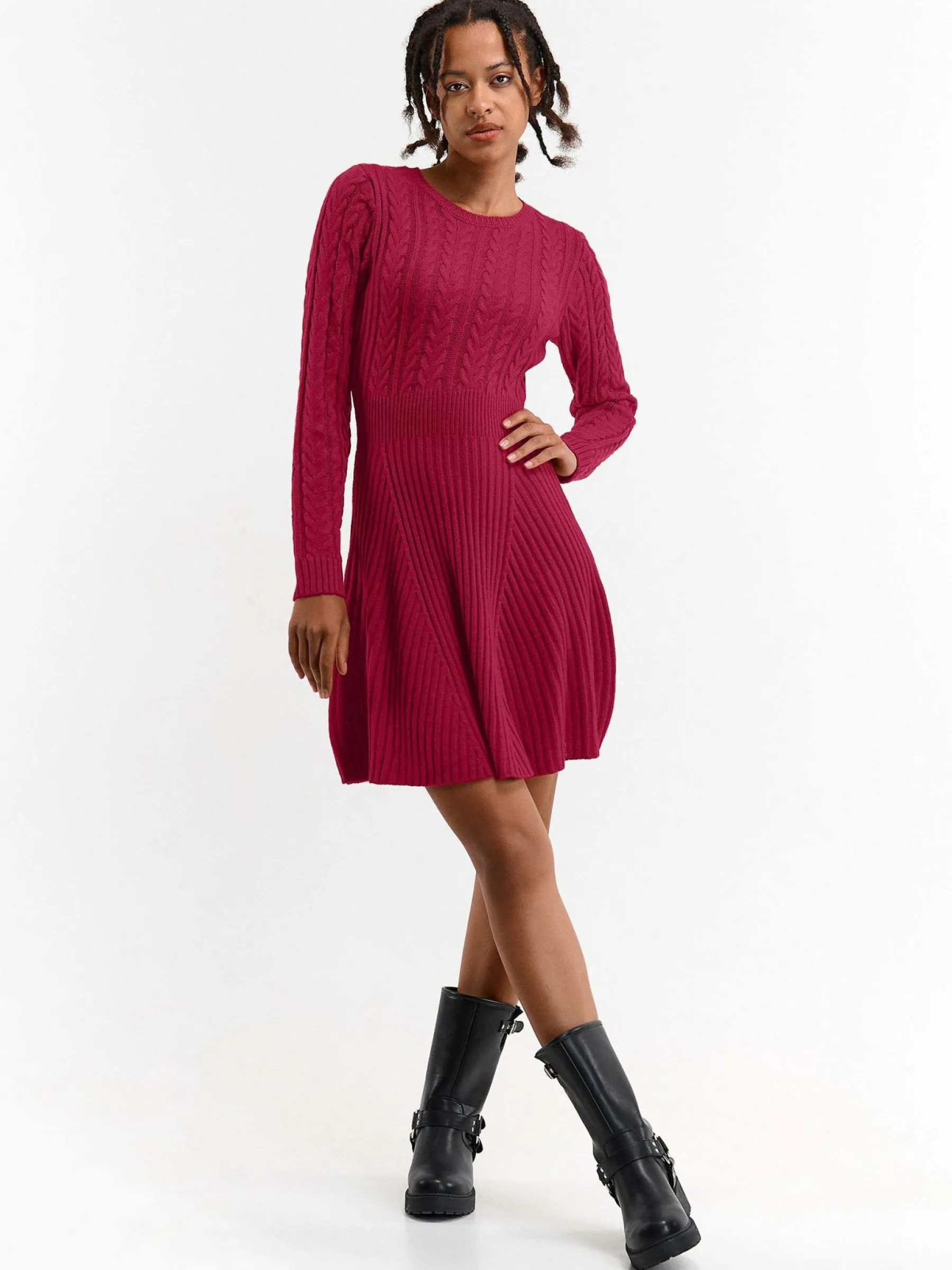 Zdjęcia z modelką mogą nie odpowiadać rzeczywistemu kolorowi produktu.Kolor: różowyKrój: asyTyp: sukienkaRekaw: d…